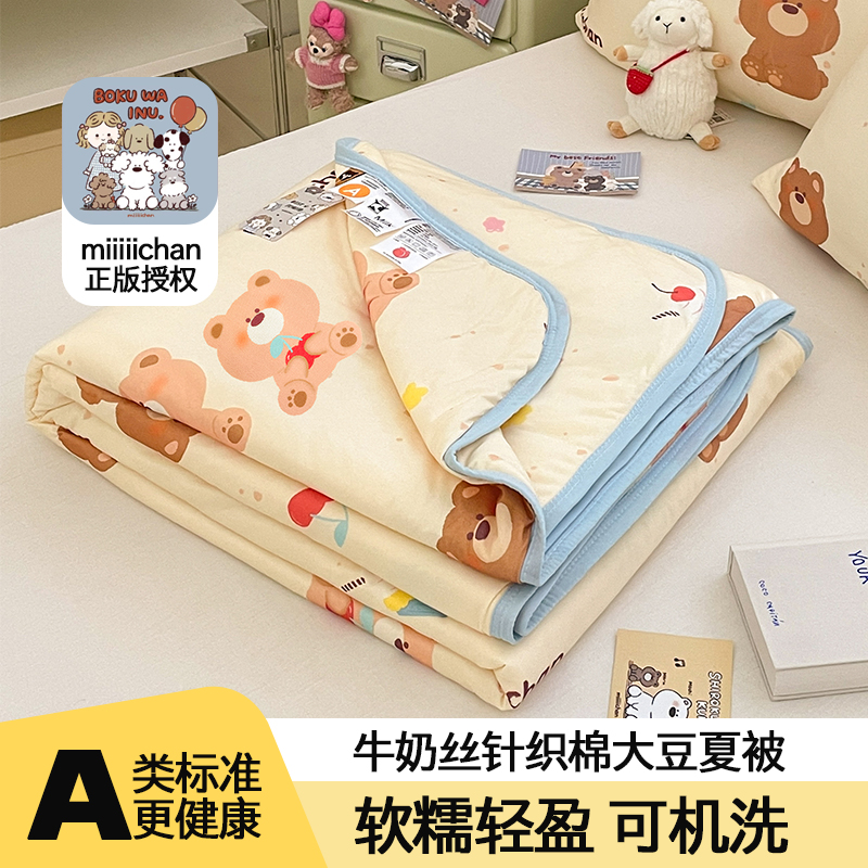 金爱家2025新款A类高品质正版授权miiiiichan可爱卡通狗狗白熊女孩牛奶丝针织棉夏被 针织棉miiiiichan-A甜甜棕
