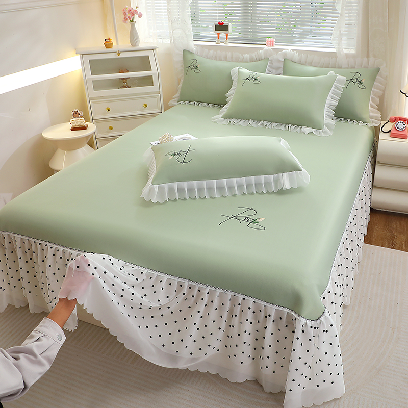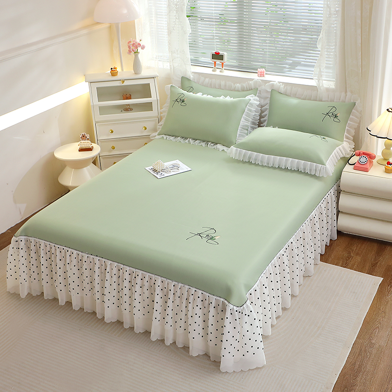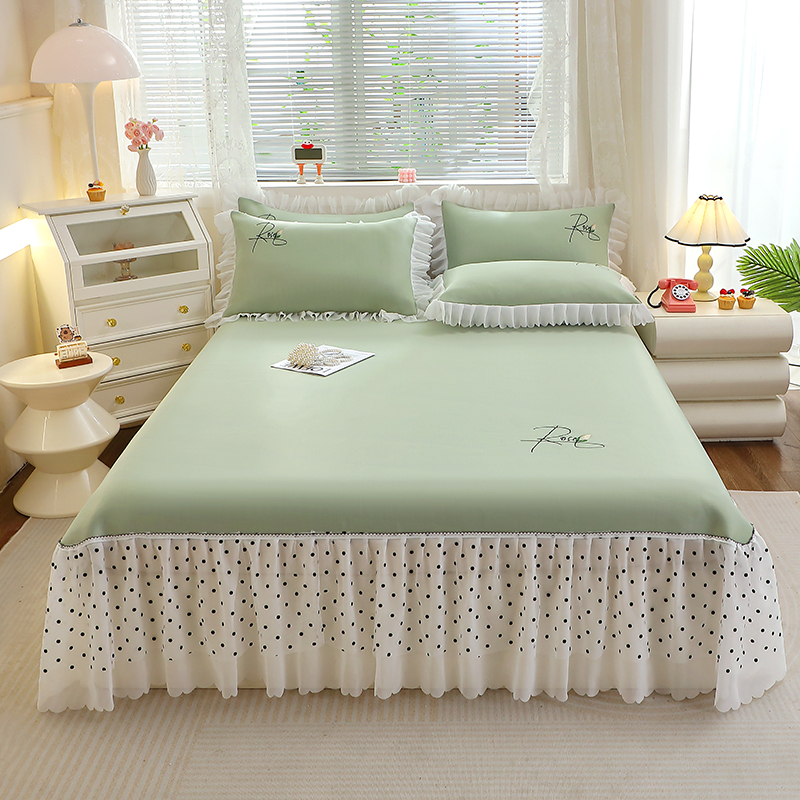 商品名称:雪夫人2025新款A类凉感冰丝席床裙款席子凉席 绿色