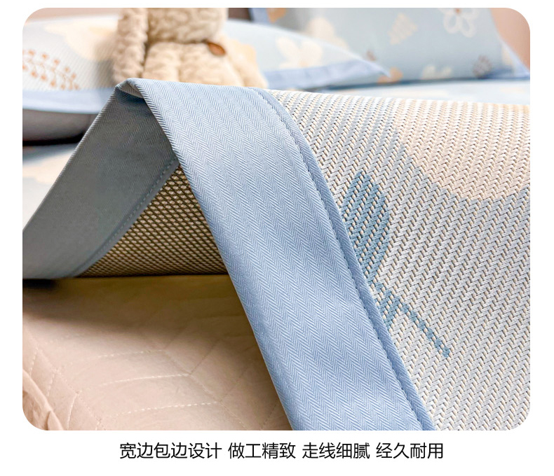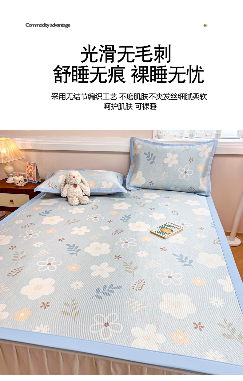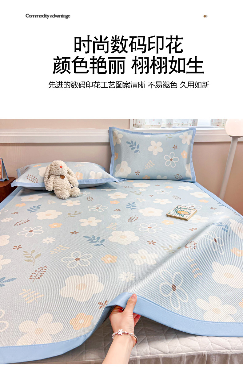商品名称:慕尚家纺 2025新款数码印花床席床笠款冰藤席 床席款-花朵蓝