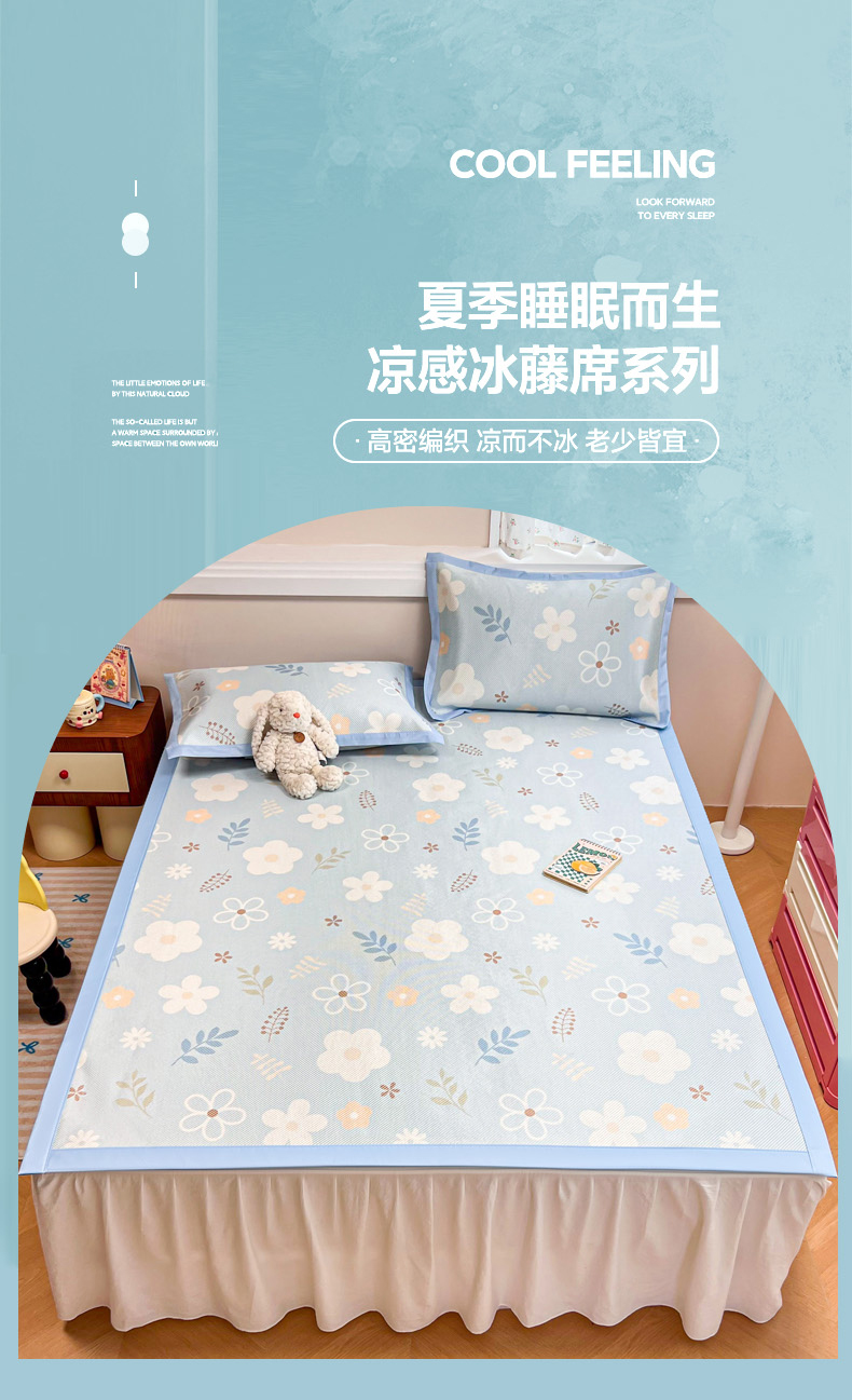 慕尚家纺 2025新款数码印花床席床笠款冰藤席 床席款-花朵蓝