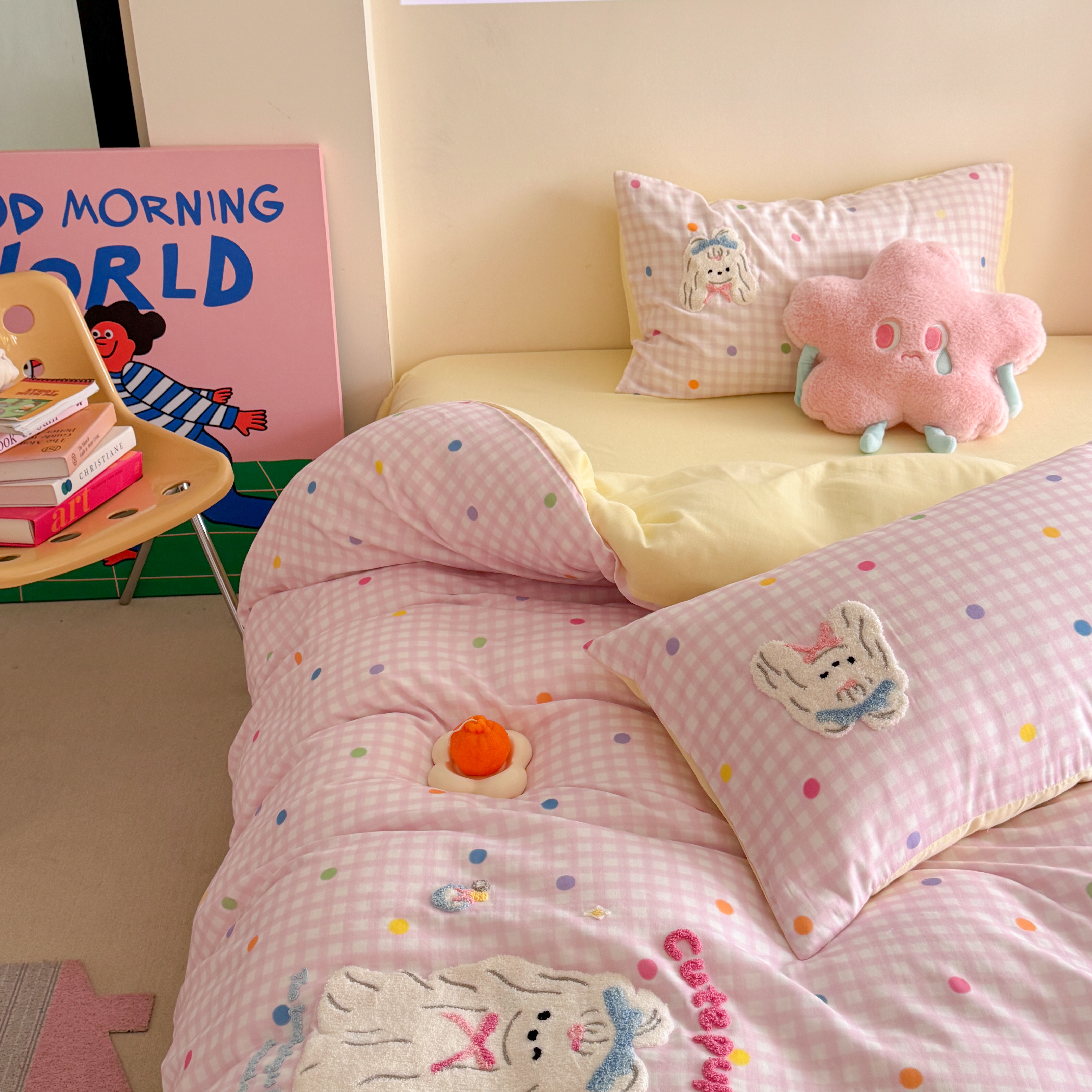 (总)柚子YOUTH 2026新款全棉纯棉水洗棉贴布绣四件套,蛋糕,树精灵,躺平猫,甜甜屋