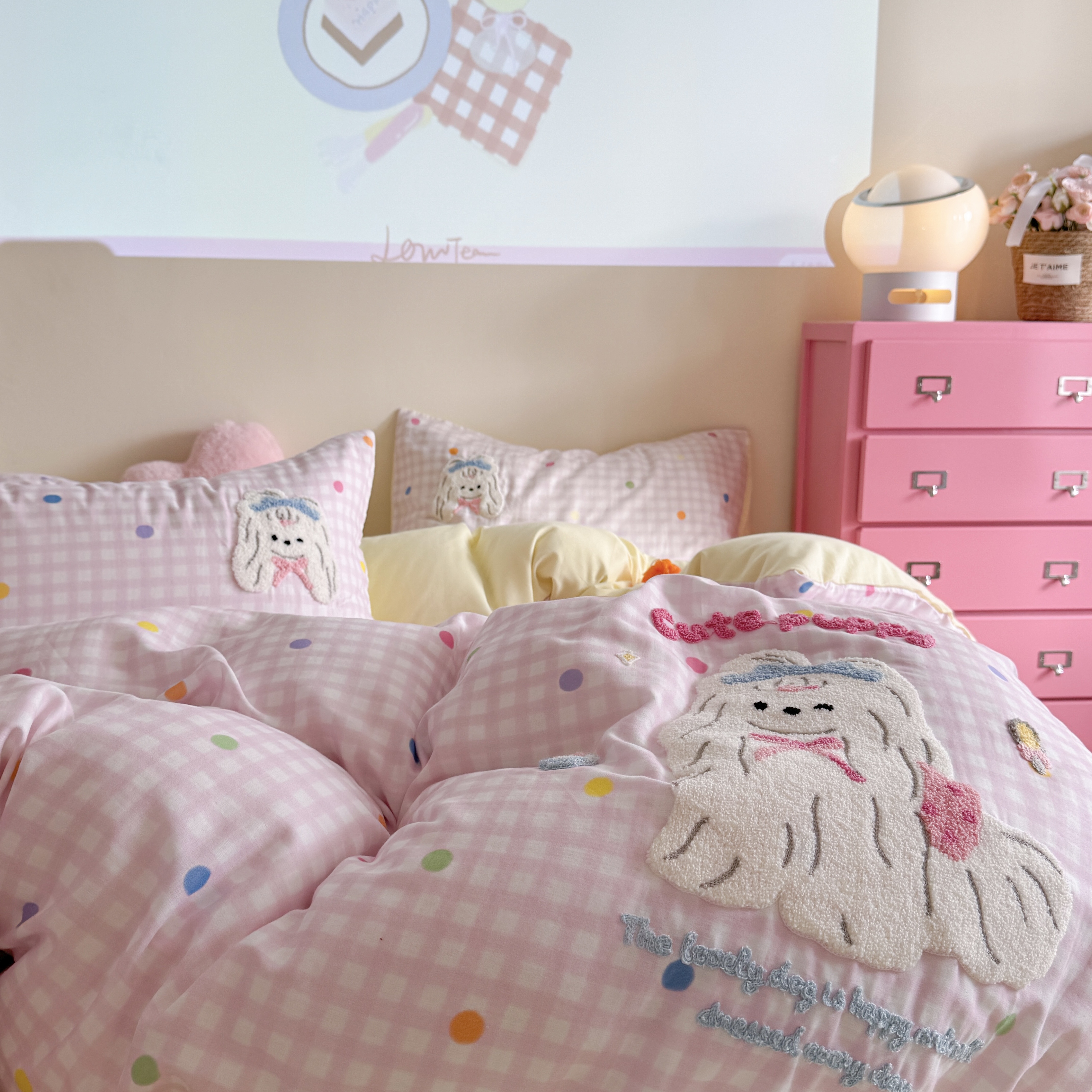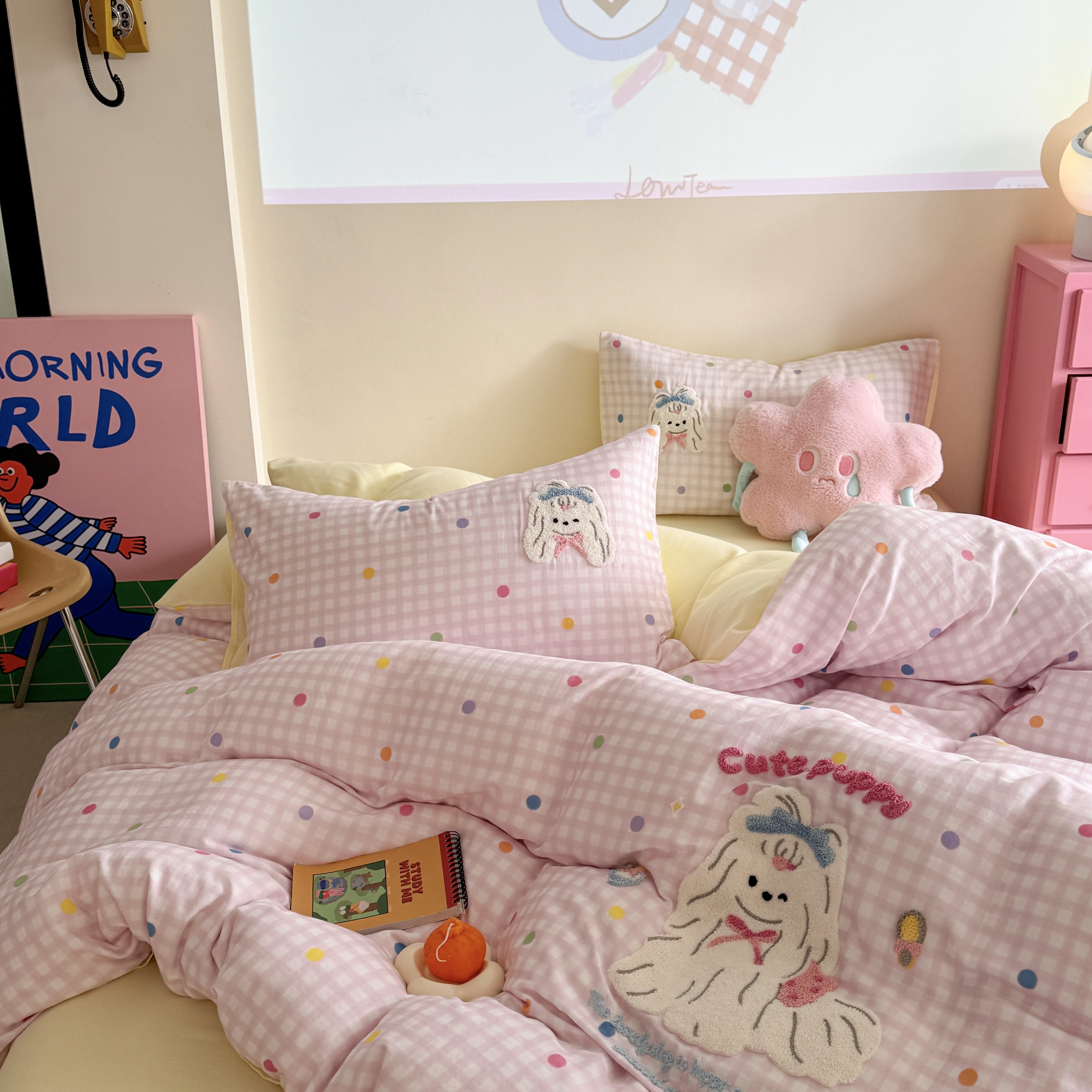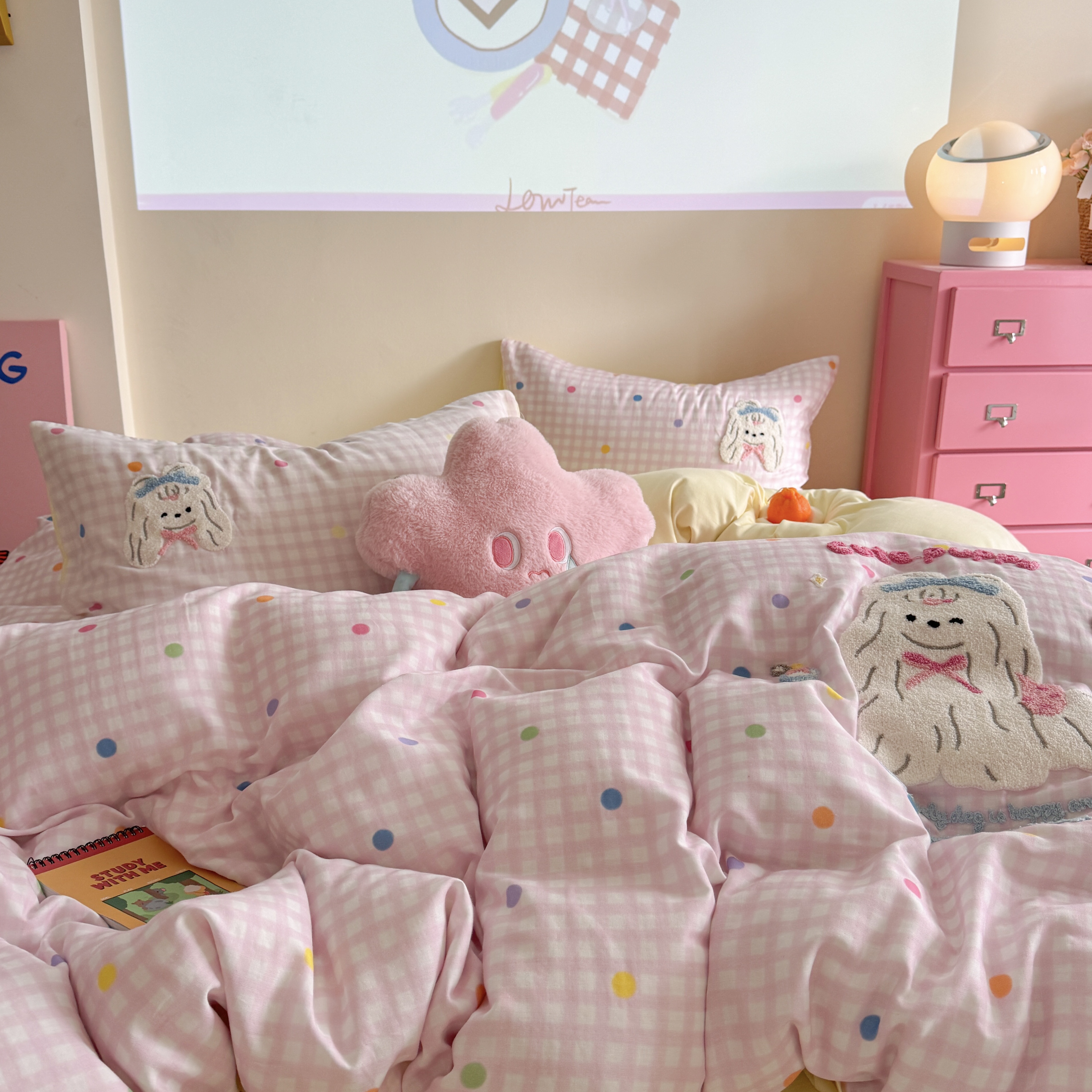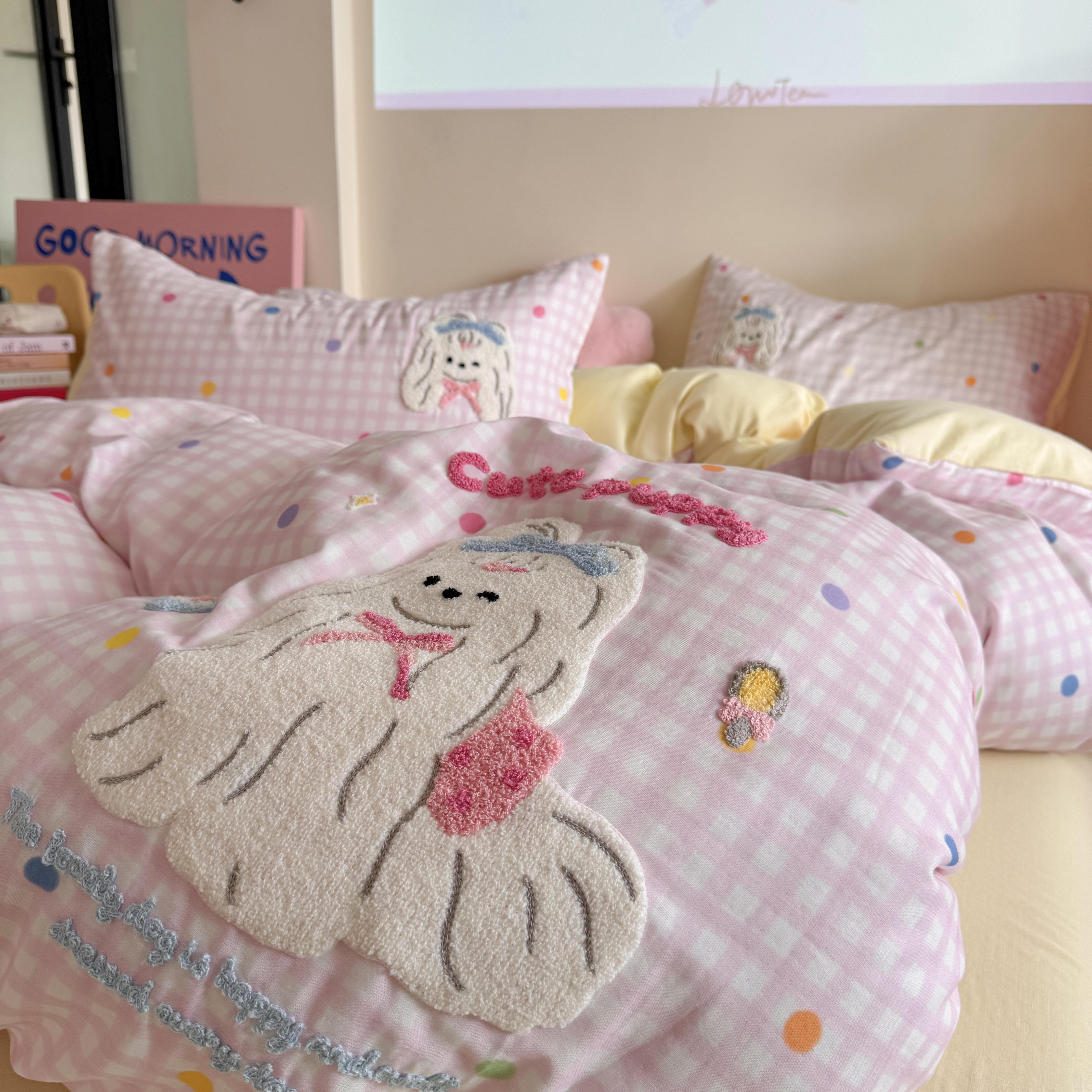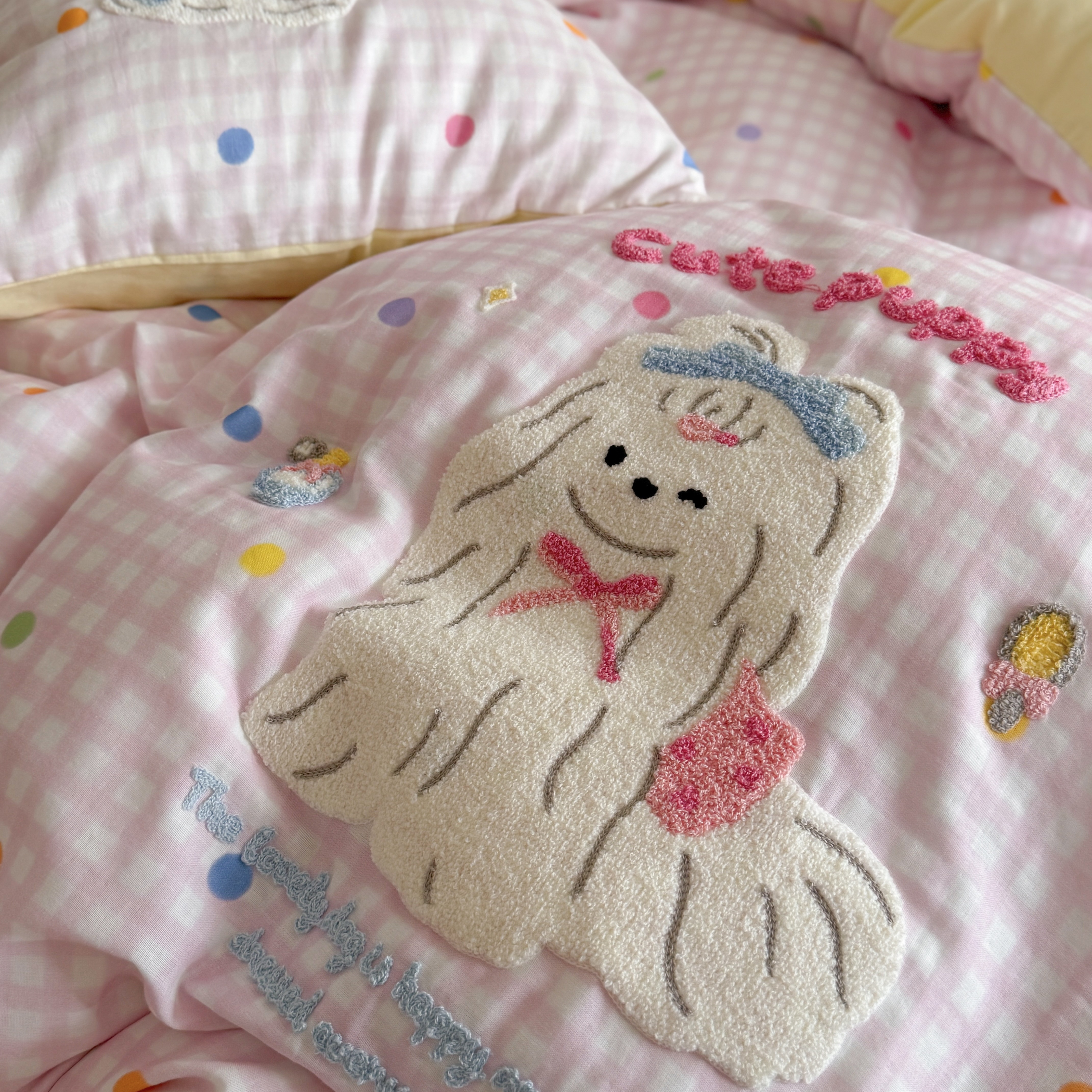 (总)柚子YOUTH 2025新款全棉纯棉工艺款13070贴布绣四件套,爱心小象,毛绒小狗,蘑菇女孩,星星法师