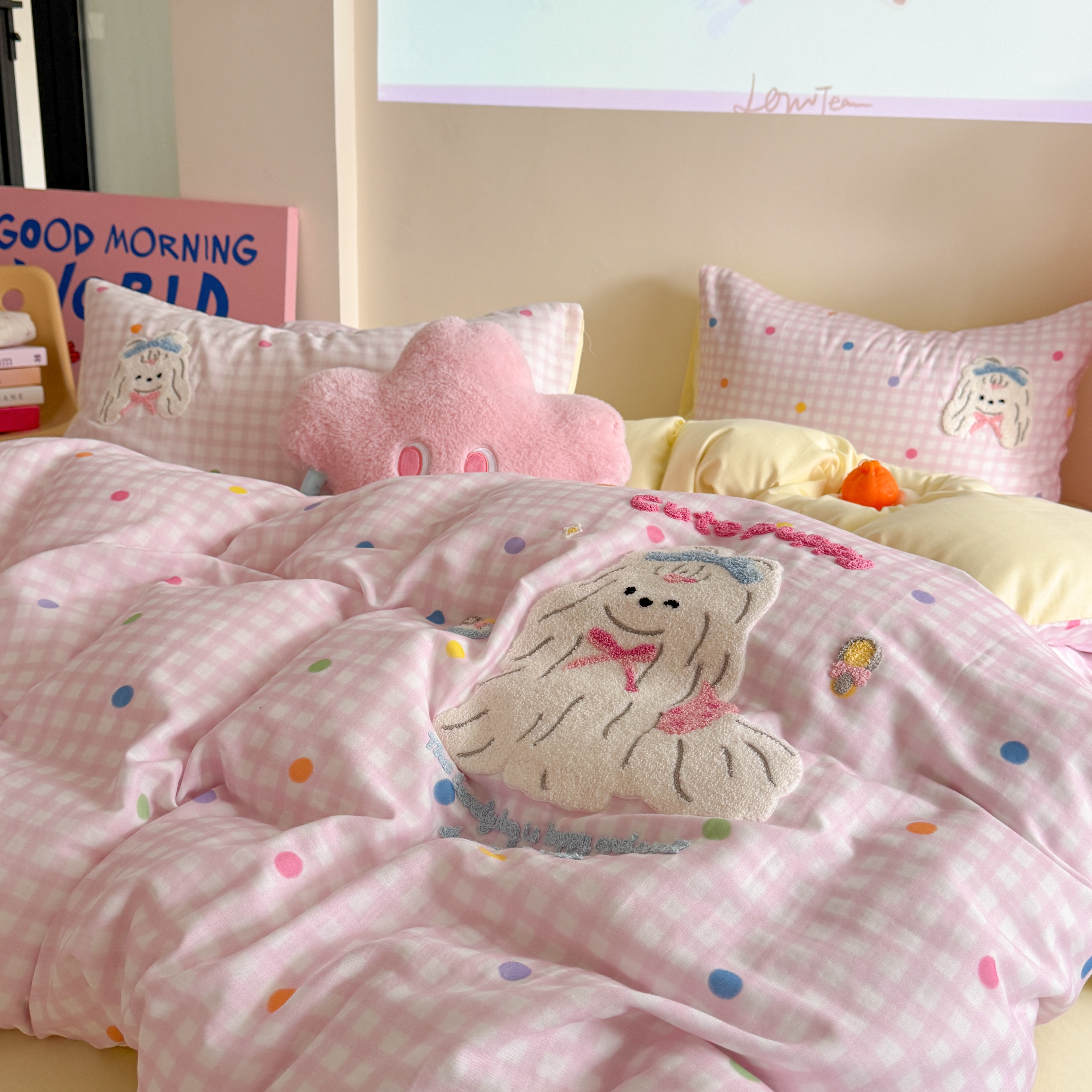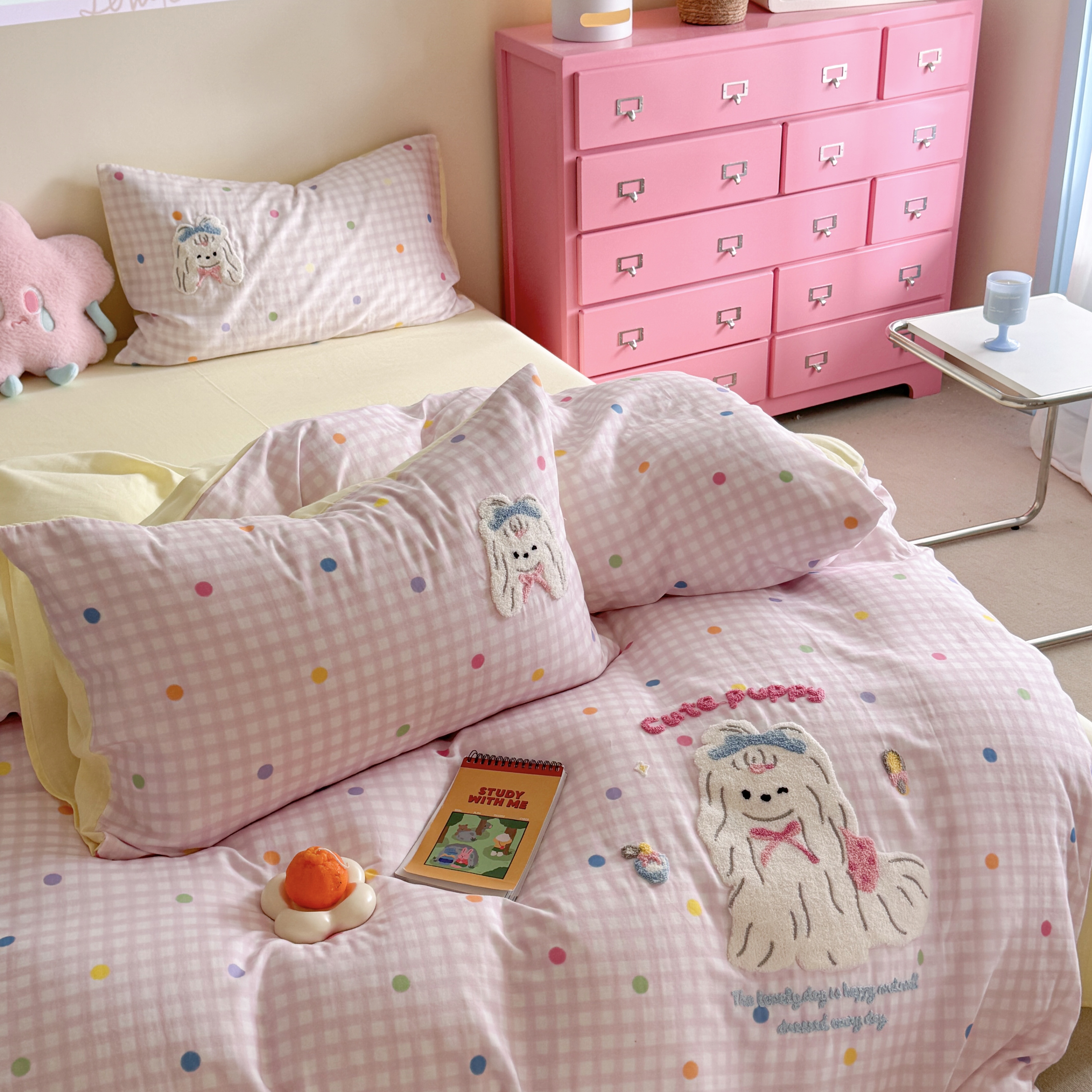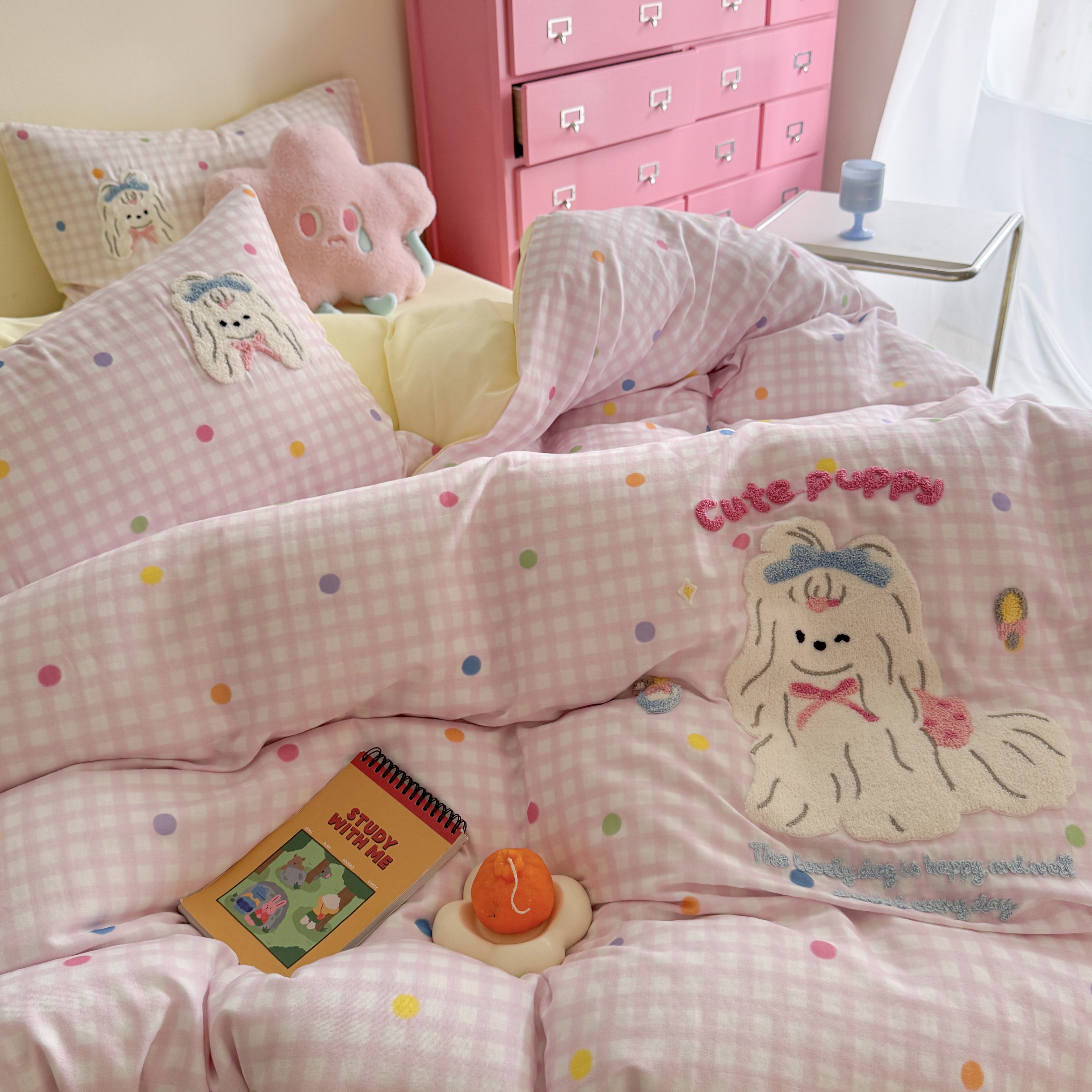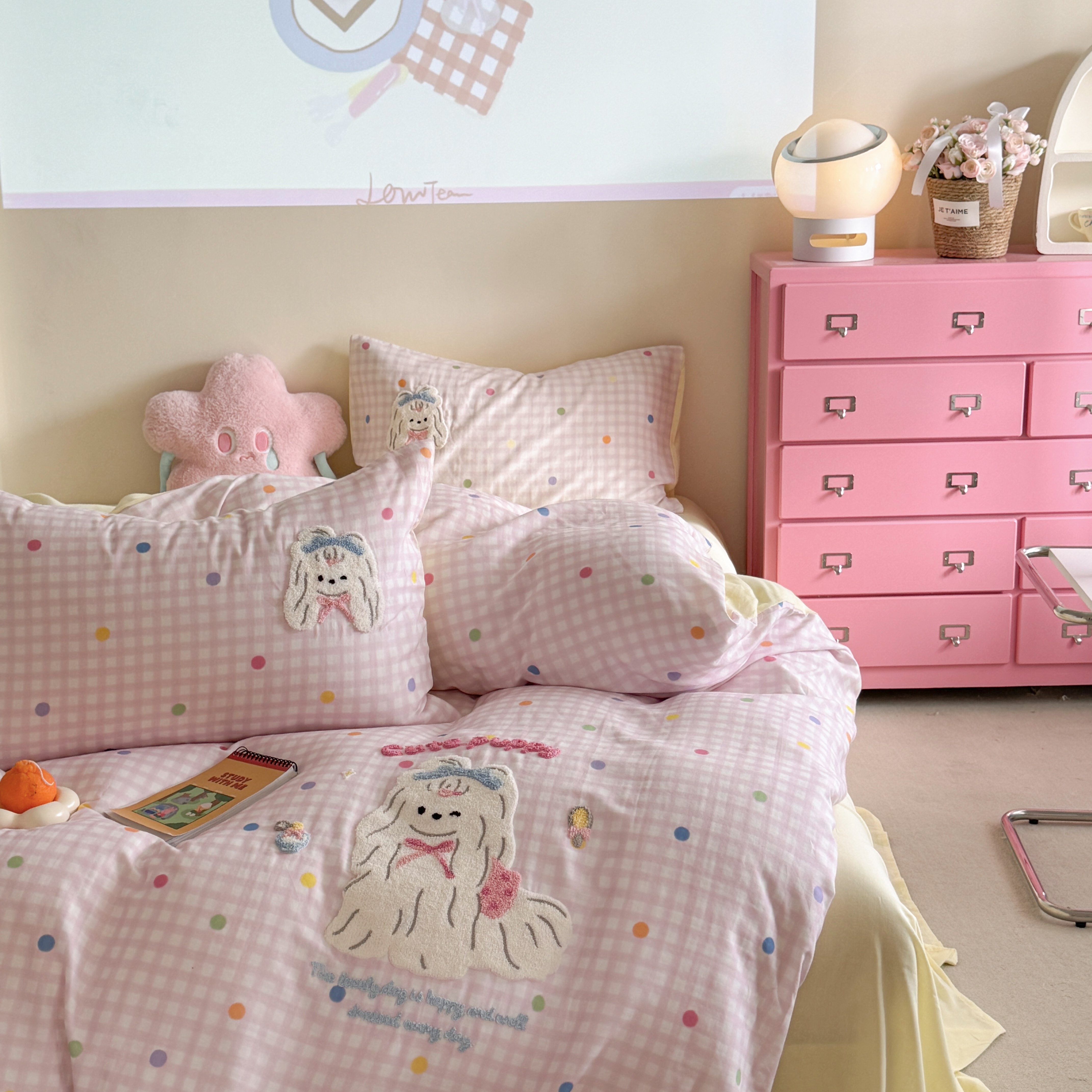 (总)柚子YOUTH 2025新款全棉纯棉工艺款13070贴布绣四件套,爱心小象,毛绒小狗,蘑菇女孩,星星法师