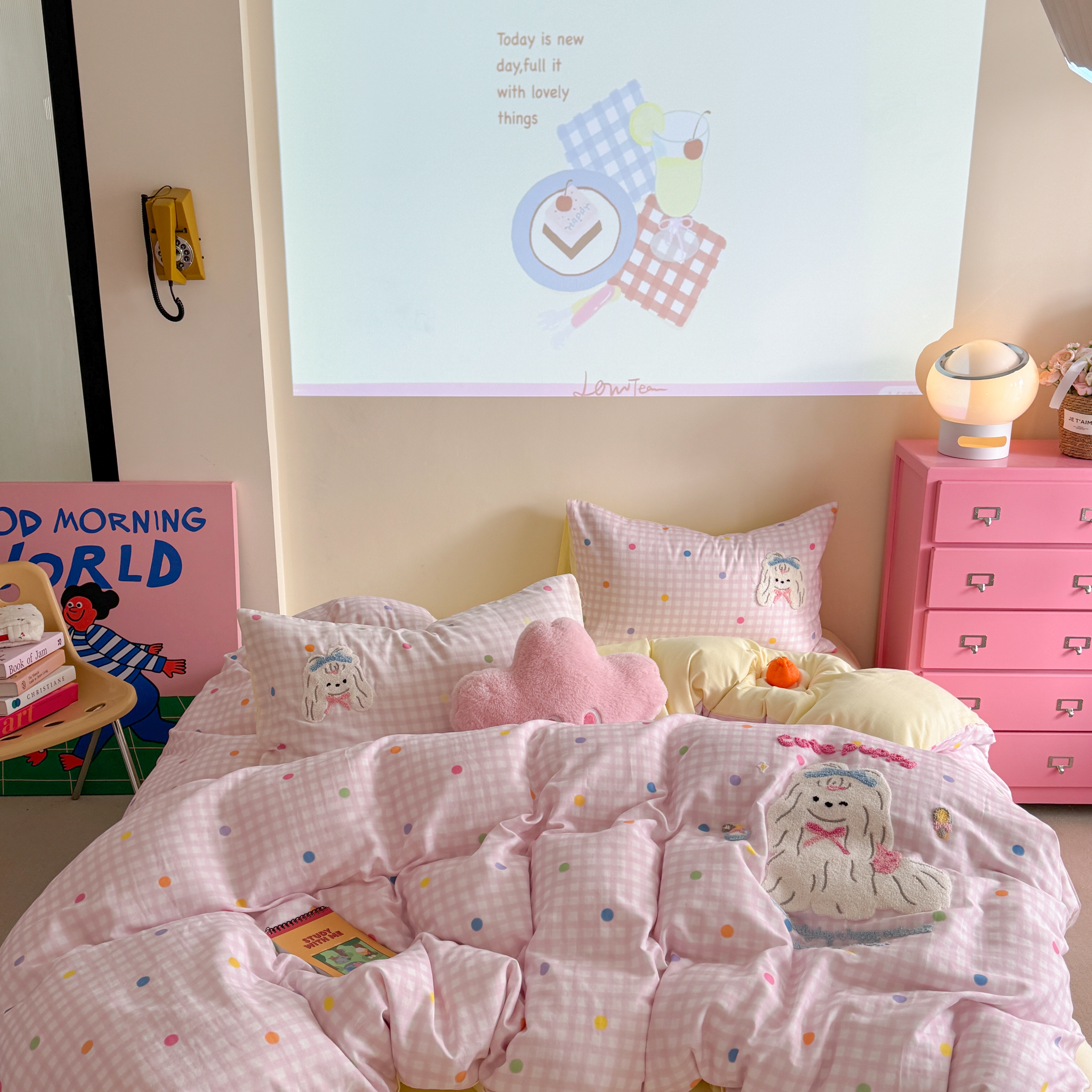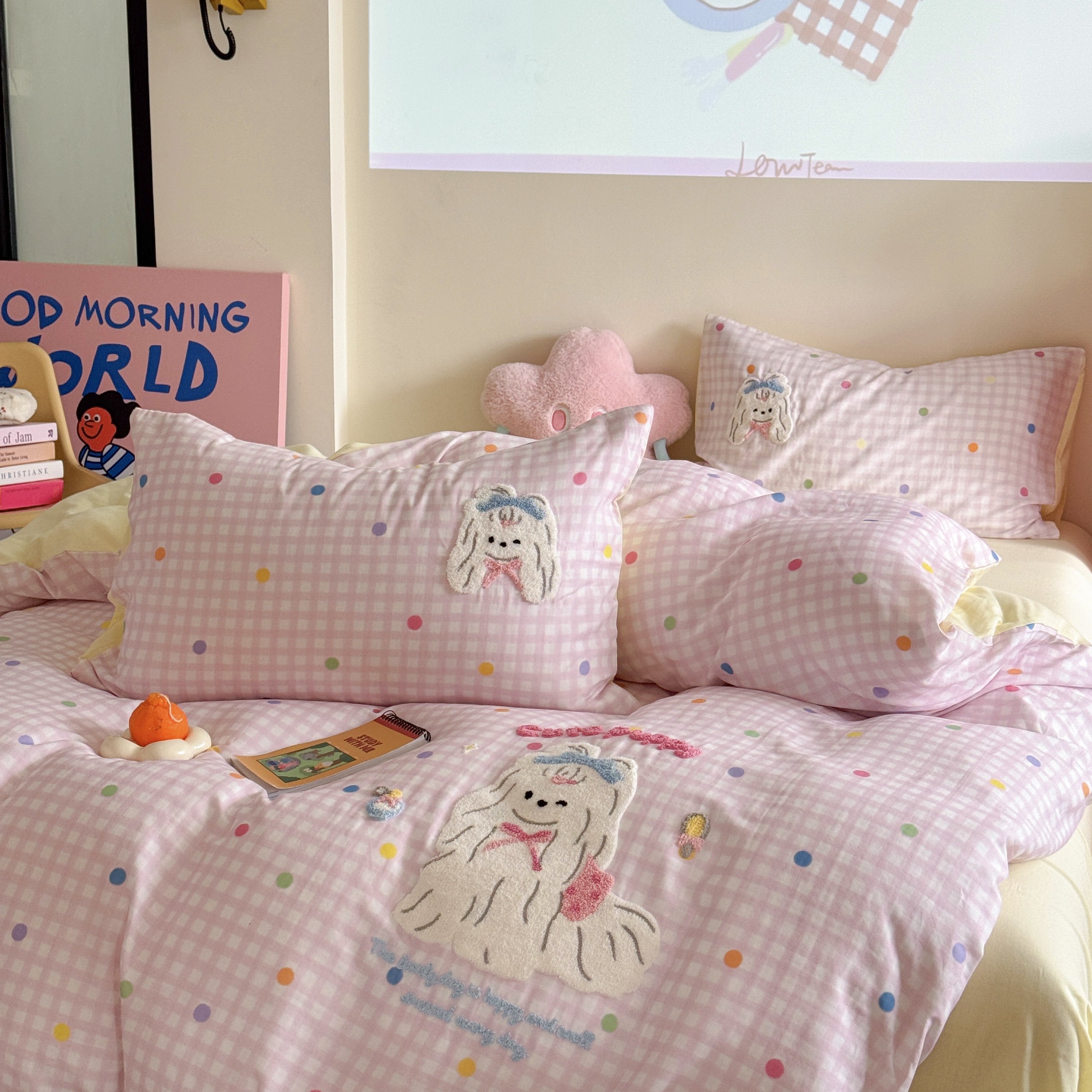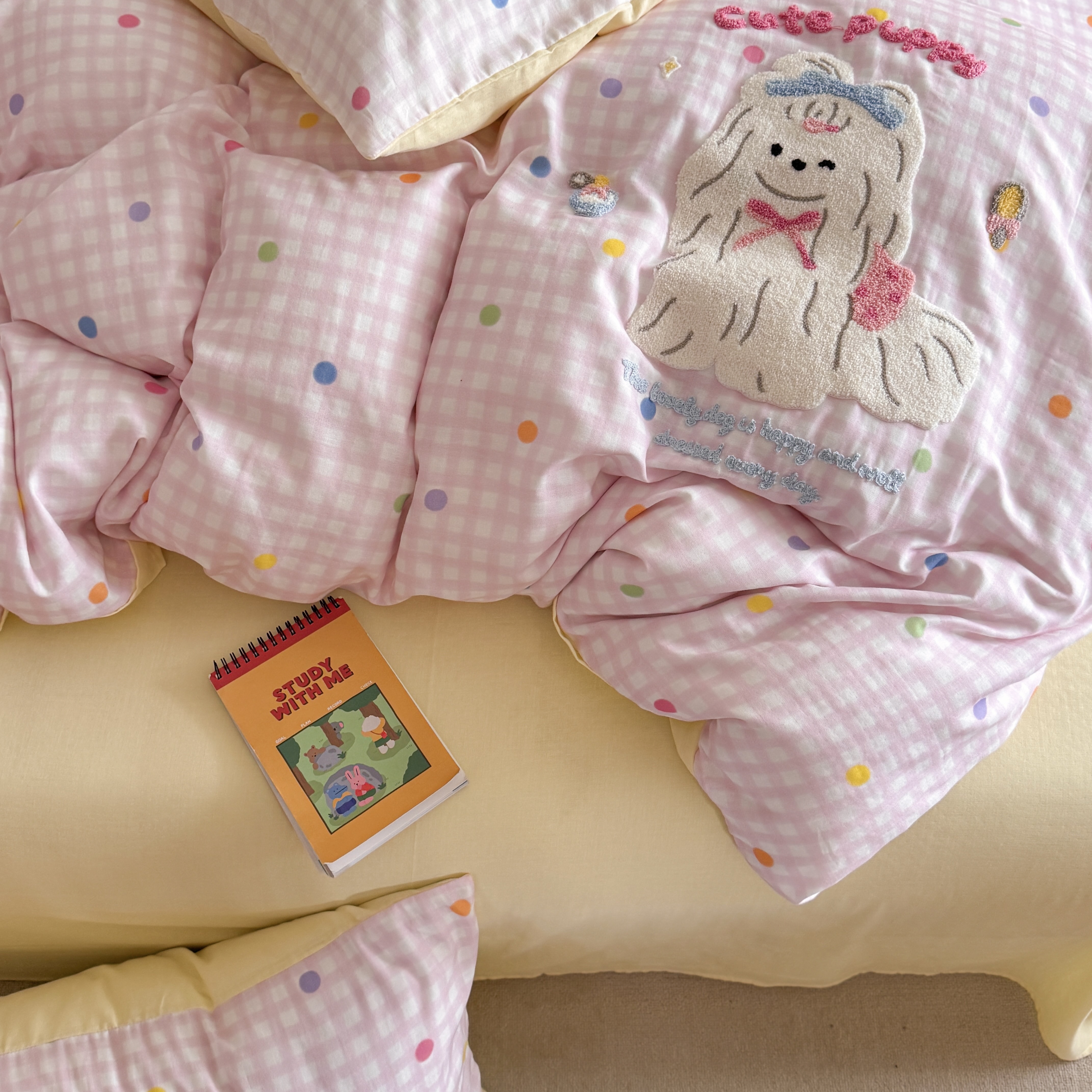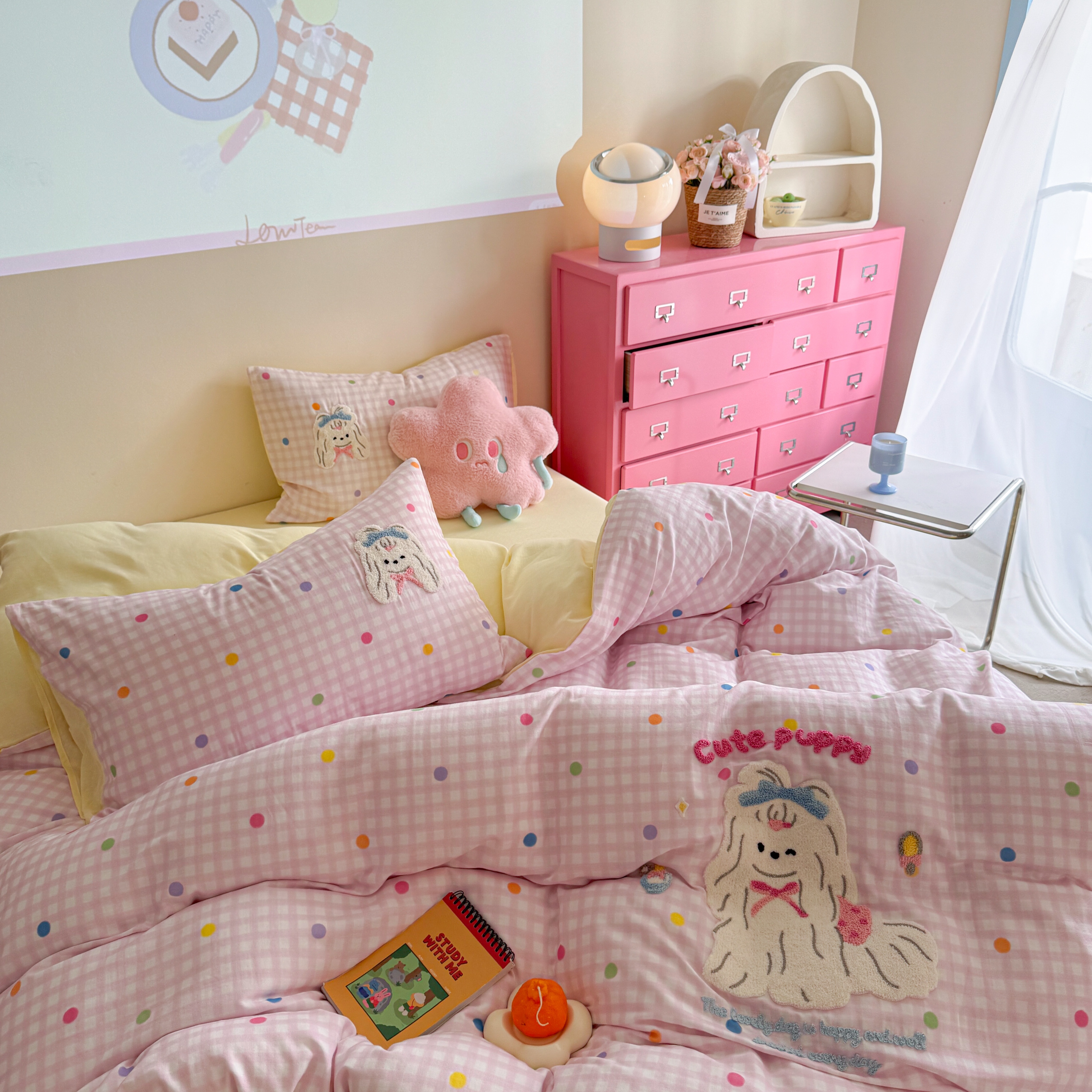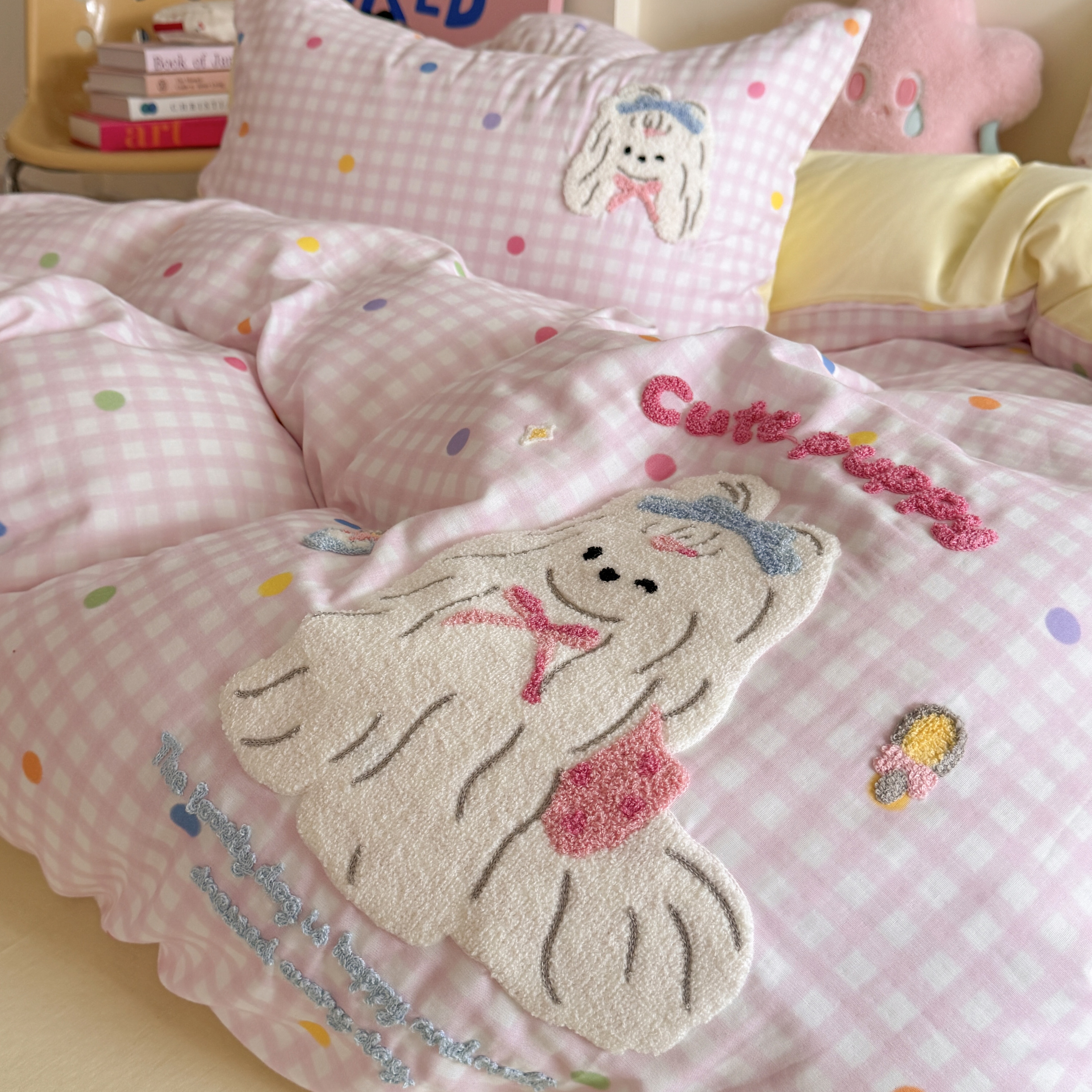 (总)柚子YOUTH 2025新款全棉纯棉工艺款13070贴布绣四件套,爱心小象,毛绒小狗,蘑菇女孩,星星法师