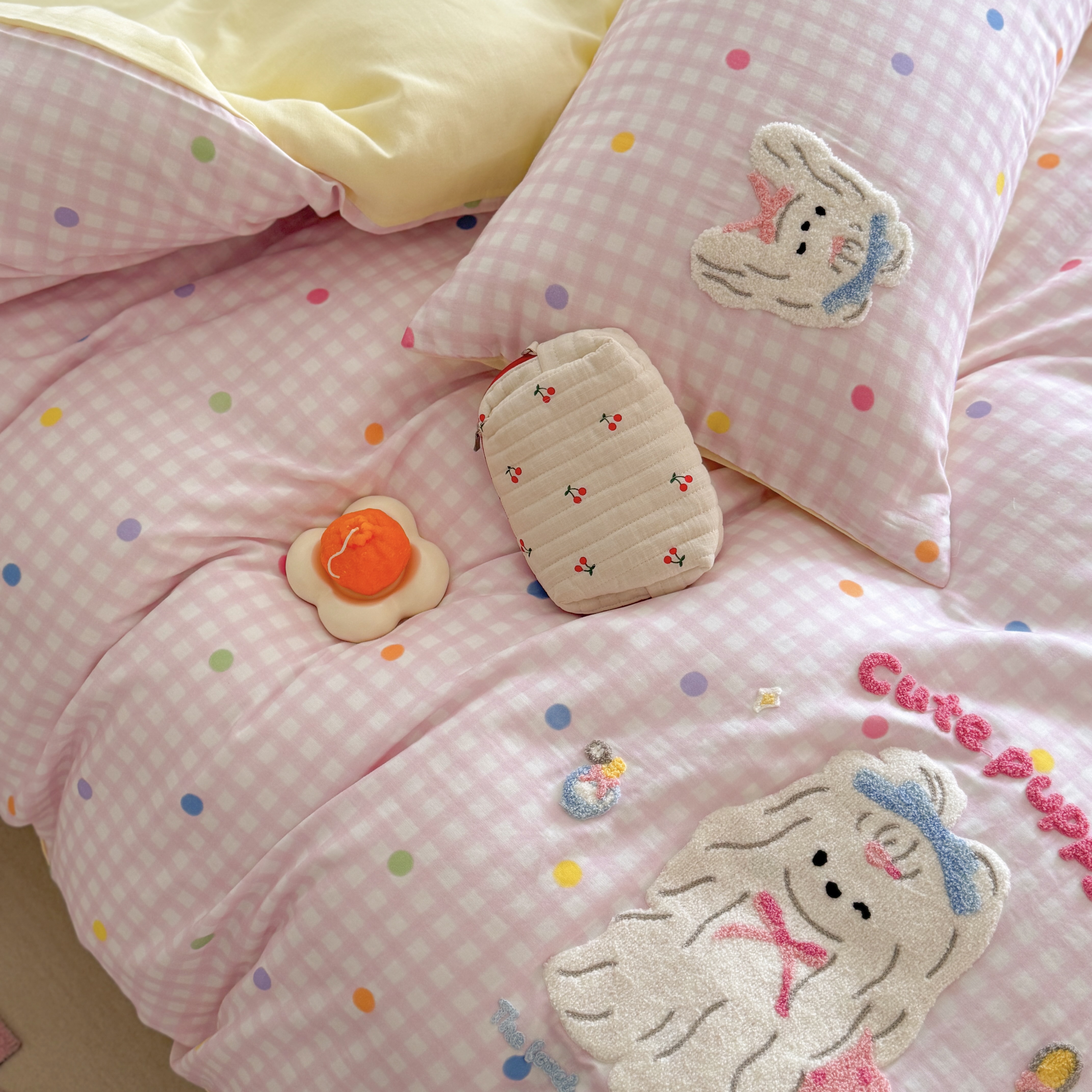 (总)柚子YOUTH 2025新款全棉双层纱贴布绣四件套,棒球熊猫,贝雷帽,冰淇淋小熊,格子玩偶,碎花小兔,小黑猫