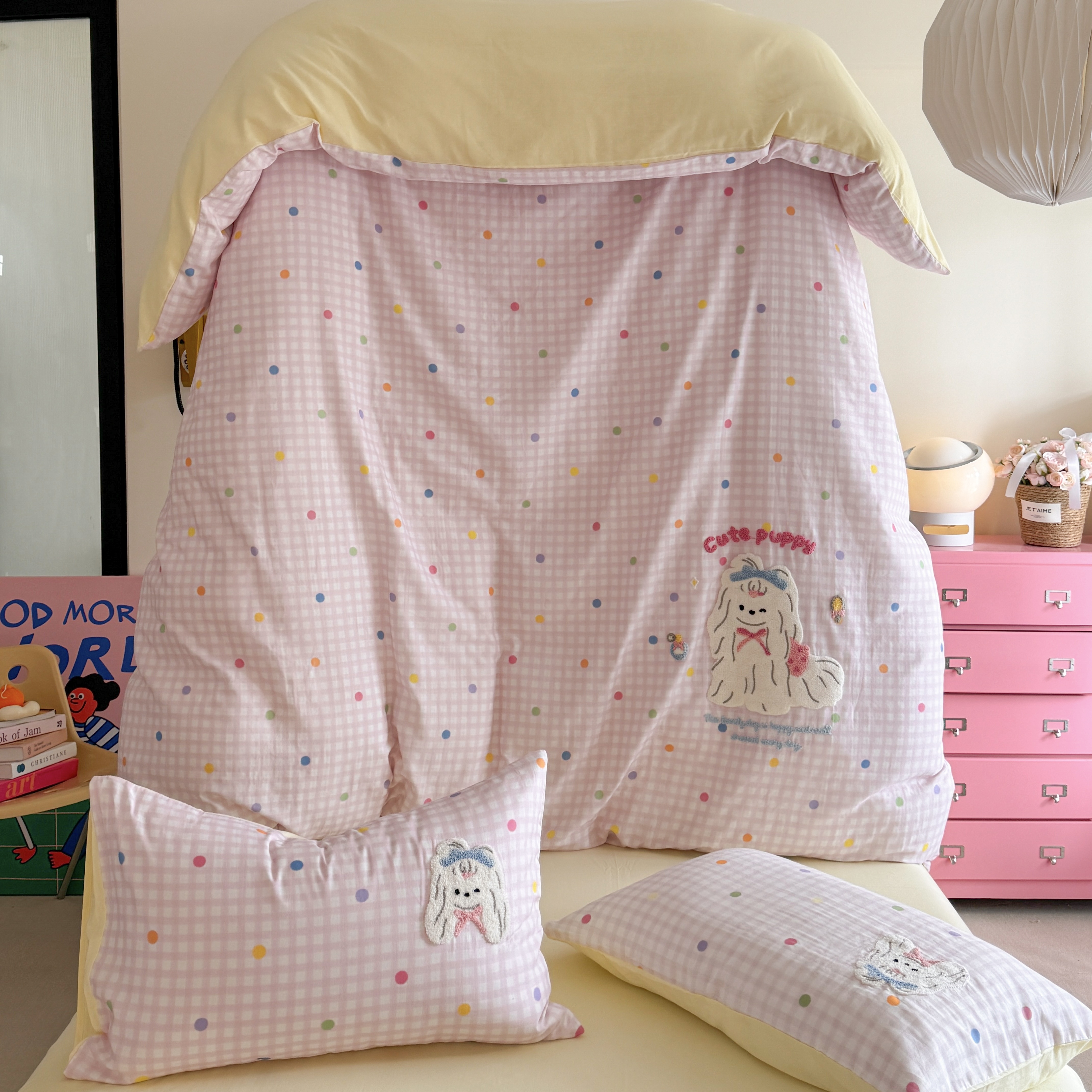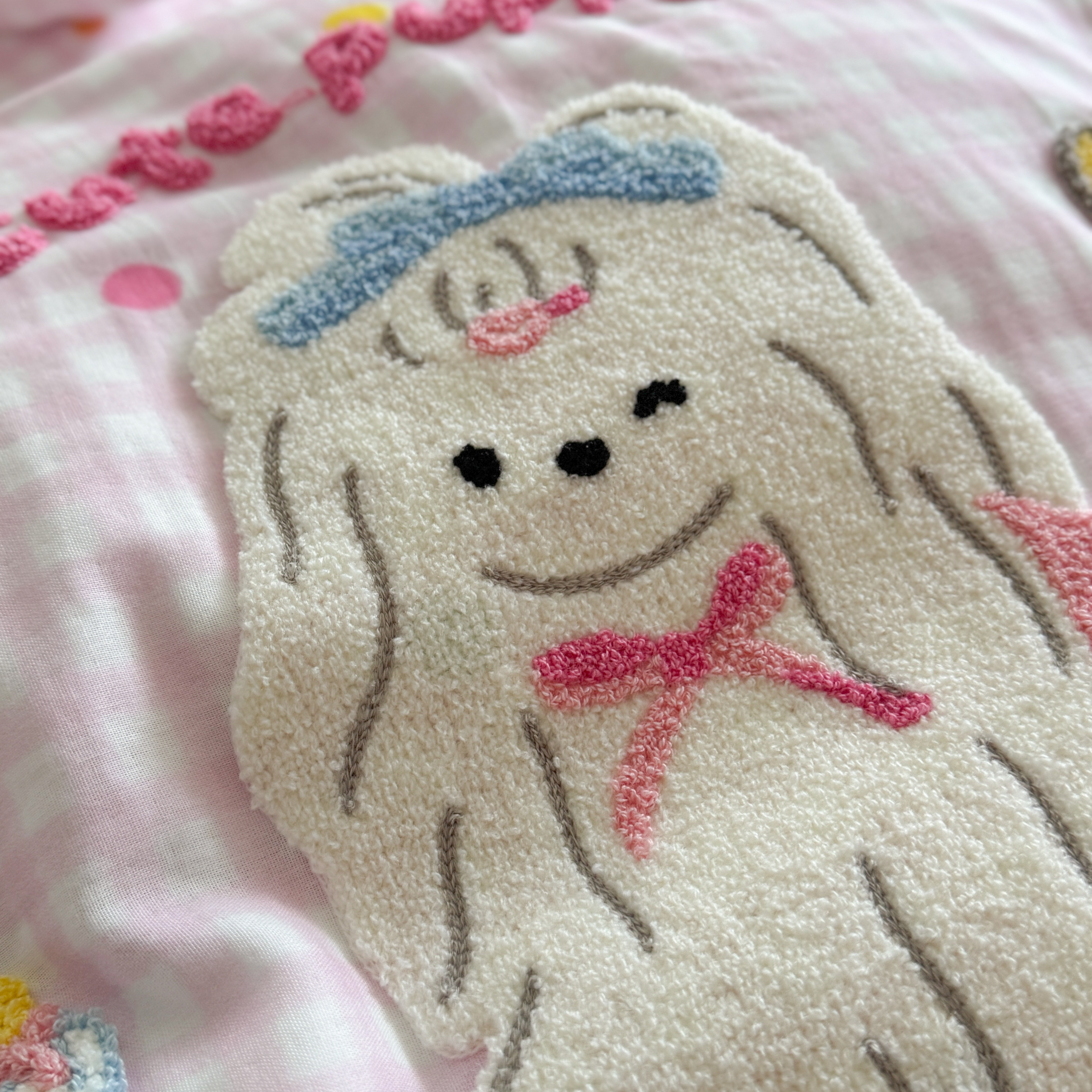 柚子 2025春夏新款全棉纯棉双层纱毛巾绣四件套 美蒂狗