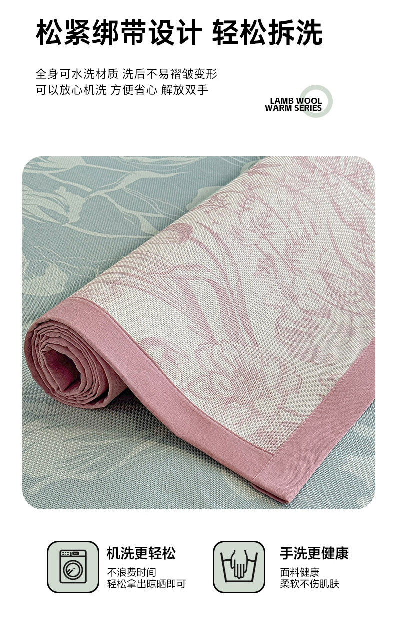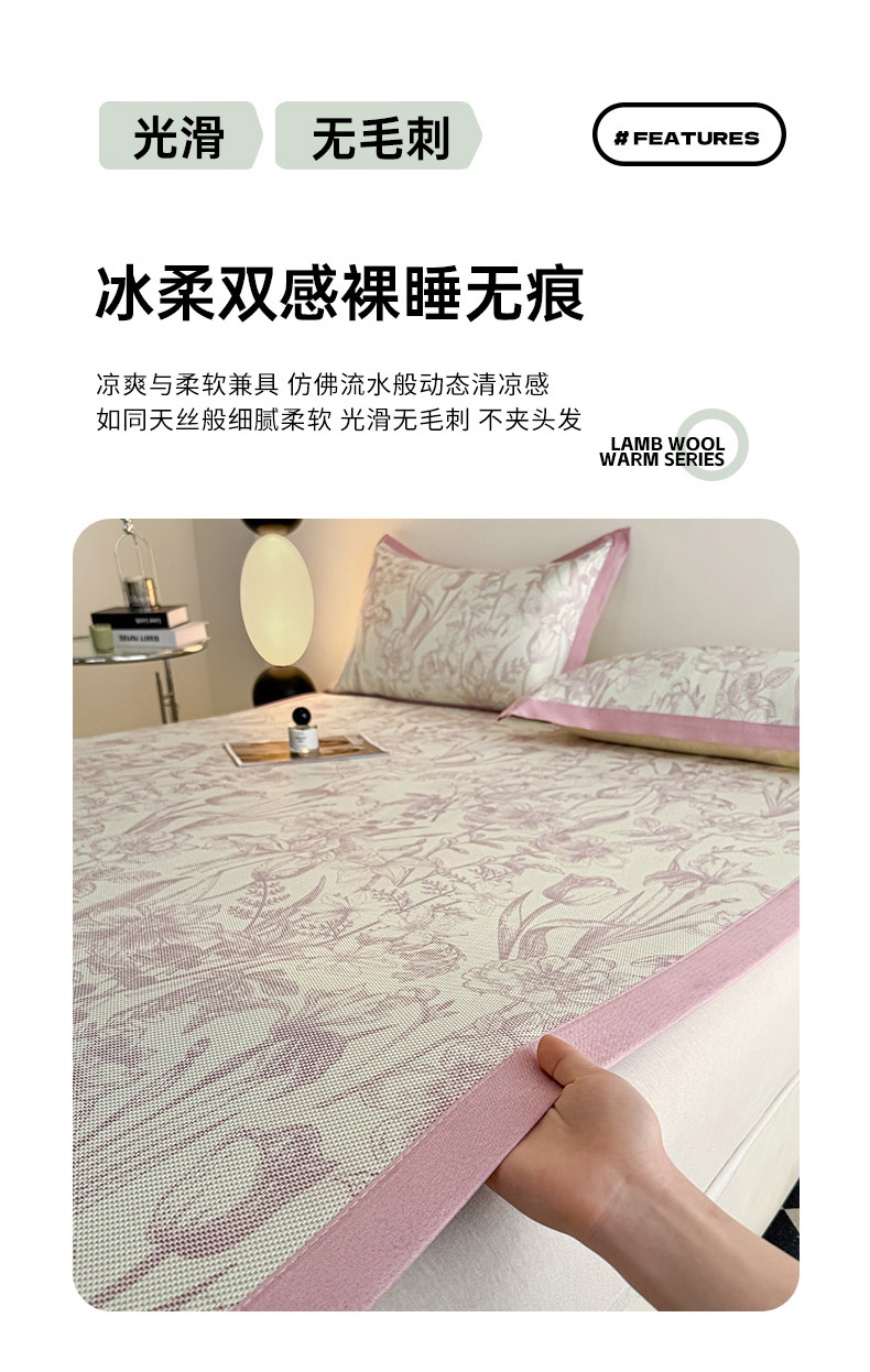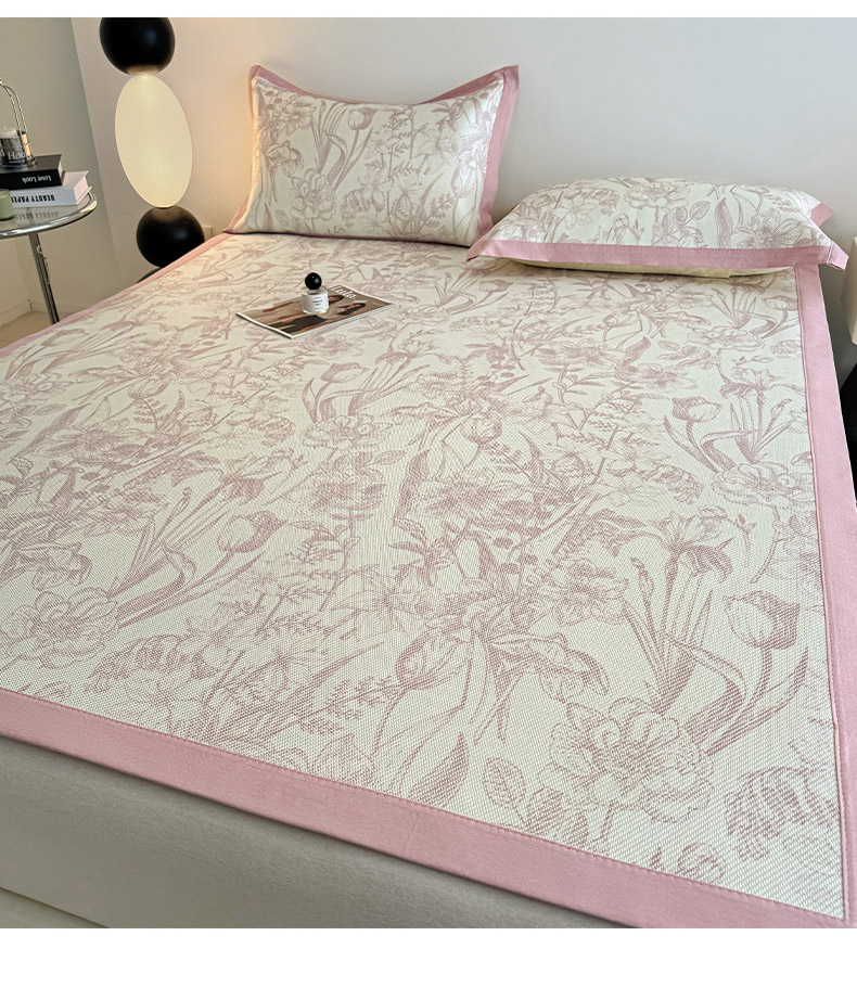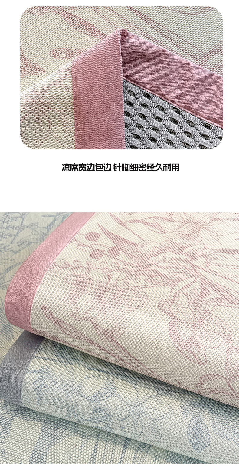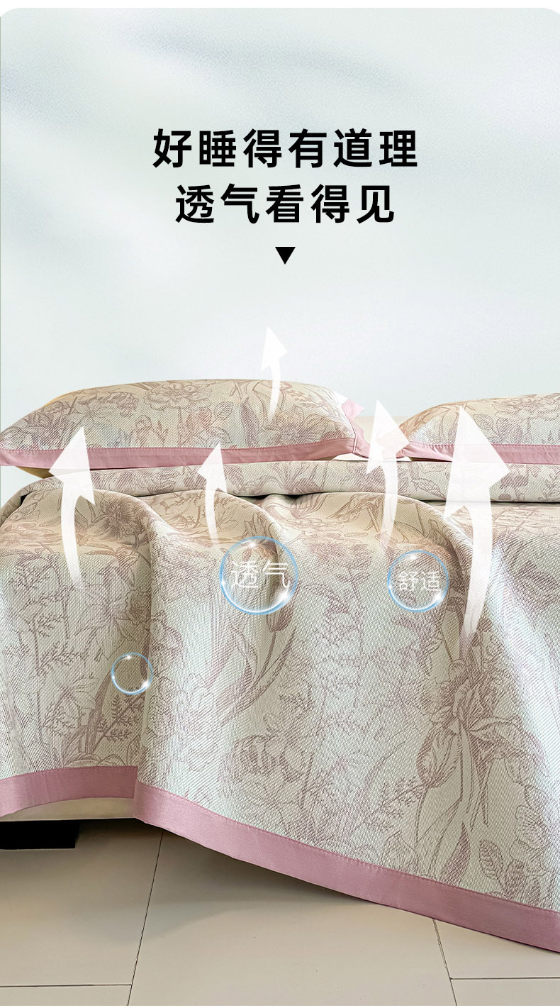 商品名称:格真2025新款简约印花冰藤席席子凉席 莫奈花园-粉