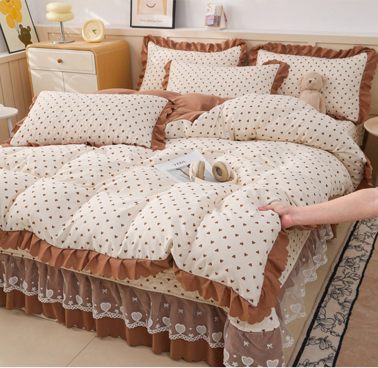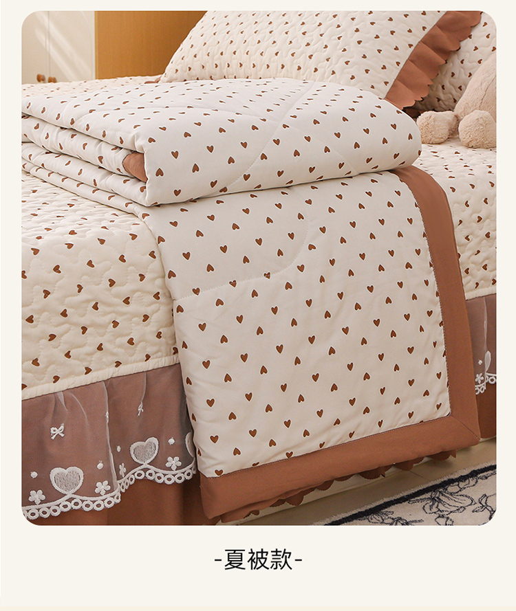 • 91家纺网 家纺一手货源 找家纺 2025新款针织棉双层纱床盖四件套蕾丝床盖三件套夏被床盖四件套 云山沐晚