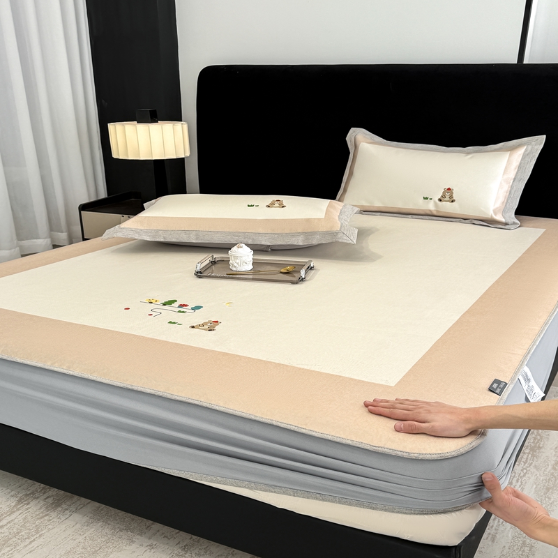 (总)木希2025春夏新款可水洗冰丝席幻彩刺绣床笠系列-场景一,爱心刺绣,格调爱心,脚丫刺绣,森林小熊,小怪兽,小秋秋乐园,熊猫乐园