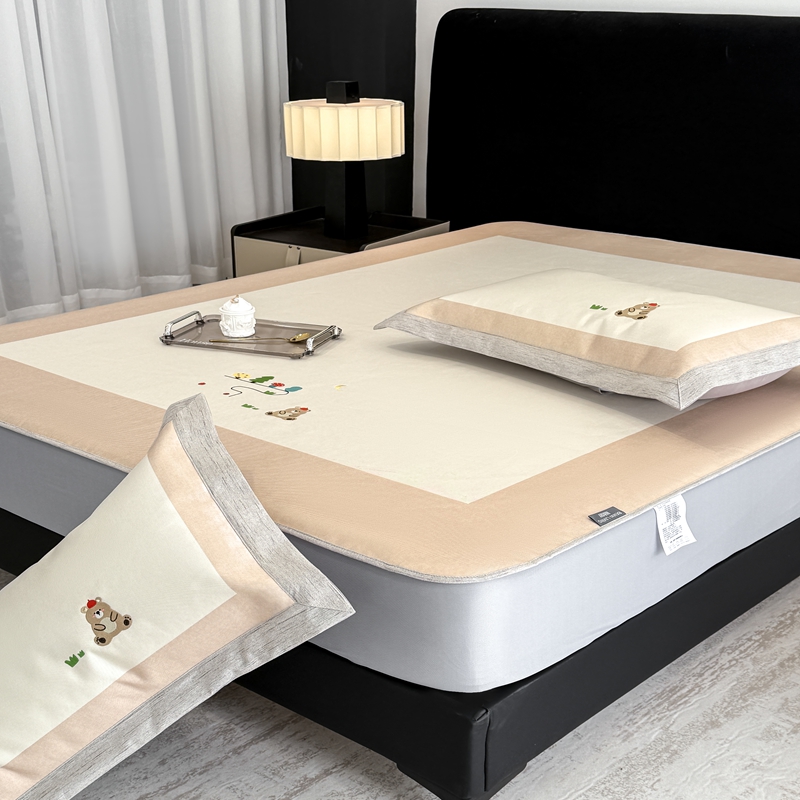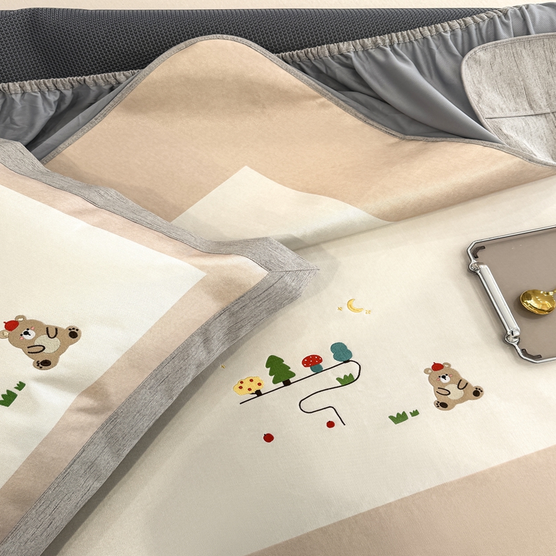 木希2025春夏新款可水洗冰丝席幻彩刺绣床笠系列-场景二 森林小熊