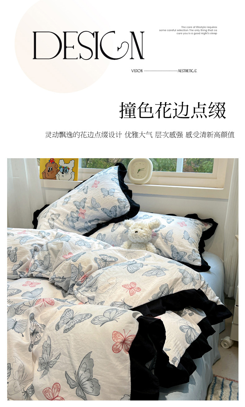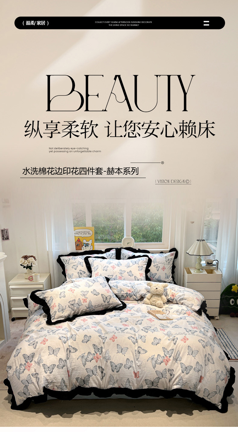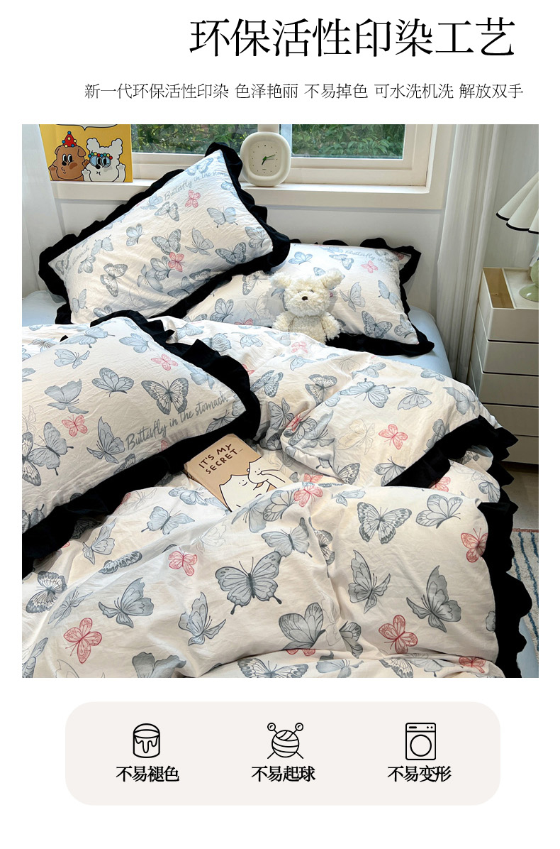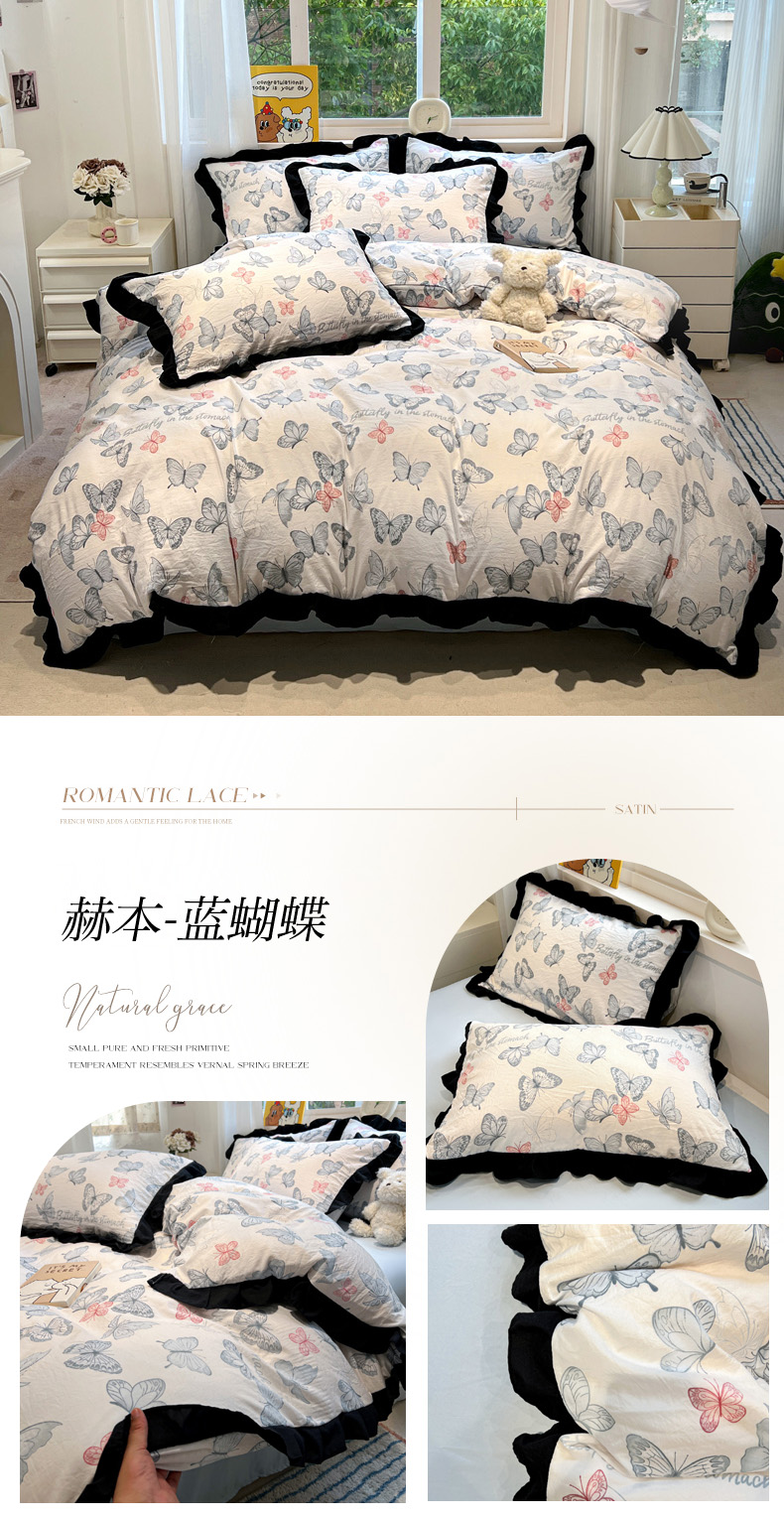 当前位置: 91家纺网 > 商品网购 > 床品套件 > 四件套 > 水洗棉四件套 > 花伞家居 2025新款赫本黑色大花边水洗棉印花四件套(提供买家秀) 赫本-蓝蝴蝶