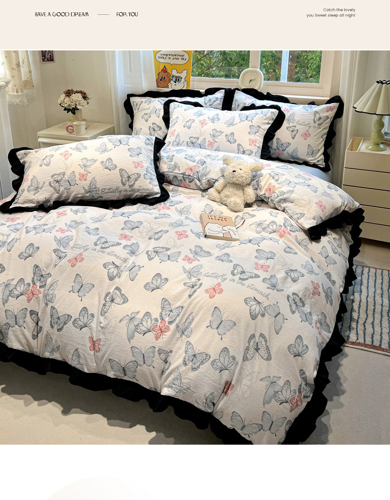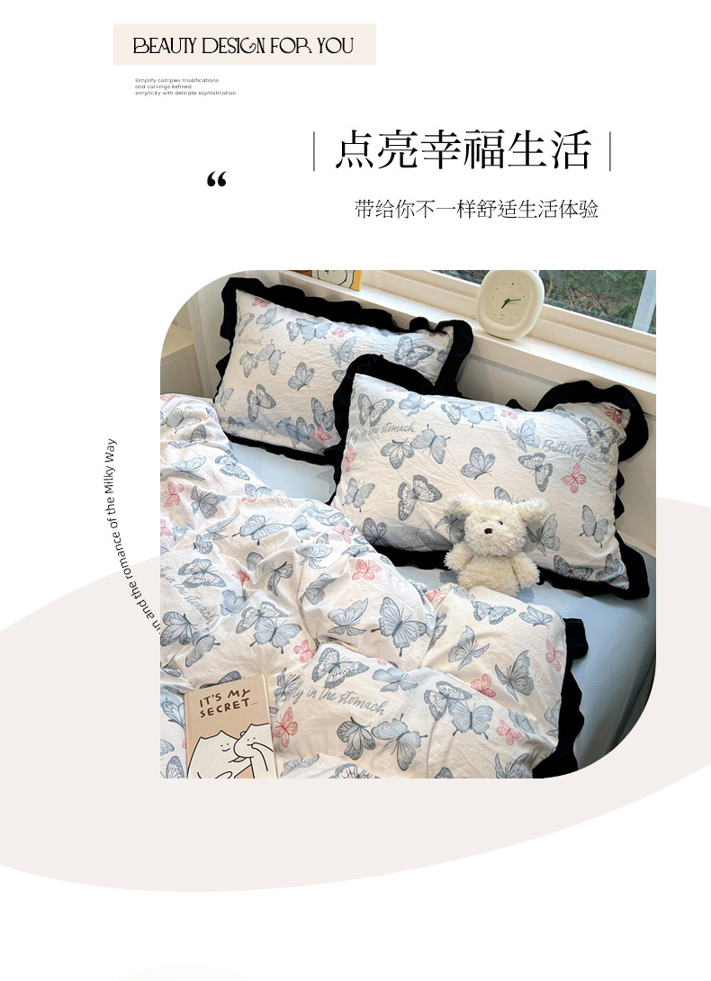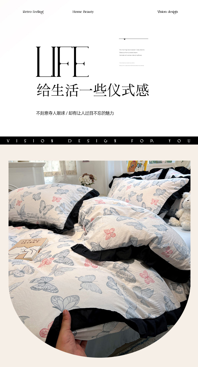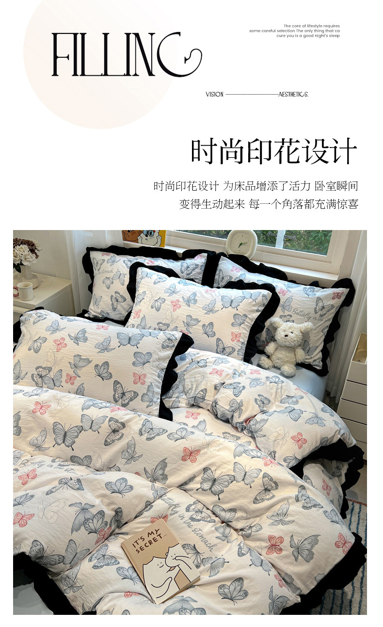 当前位置: 91家纺网 > 商品网购 > 床品套件 > 四件套 > 水洗棉四件套 > 花伞家居 2025新款赫本黑色大花边水洗棉印花四件套(提供买家秀) 赫本-蓝蝴蝶