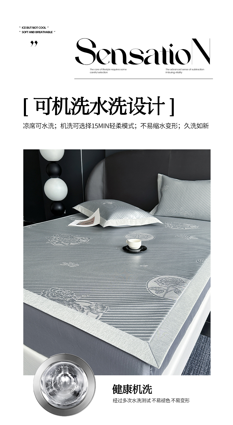 网客家纺2025新款高精密1200D提花养生席 玫瑰迷茵