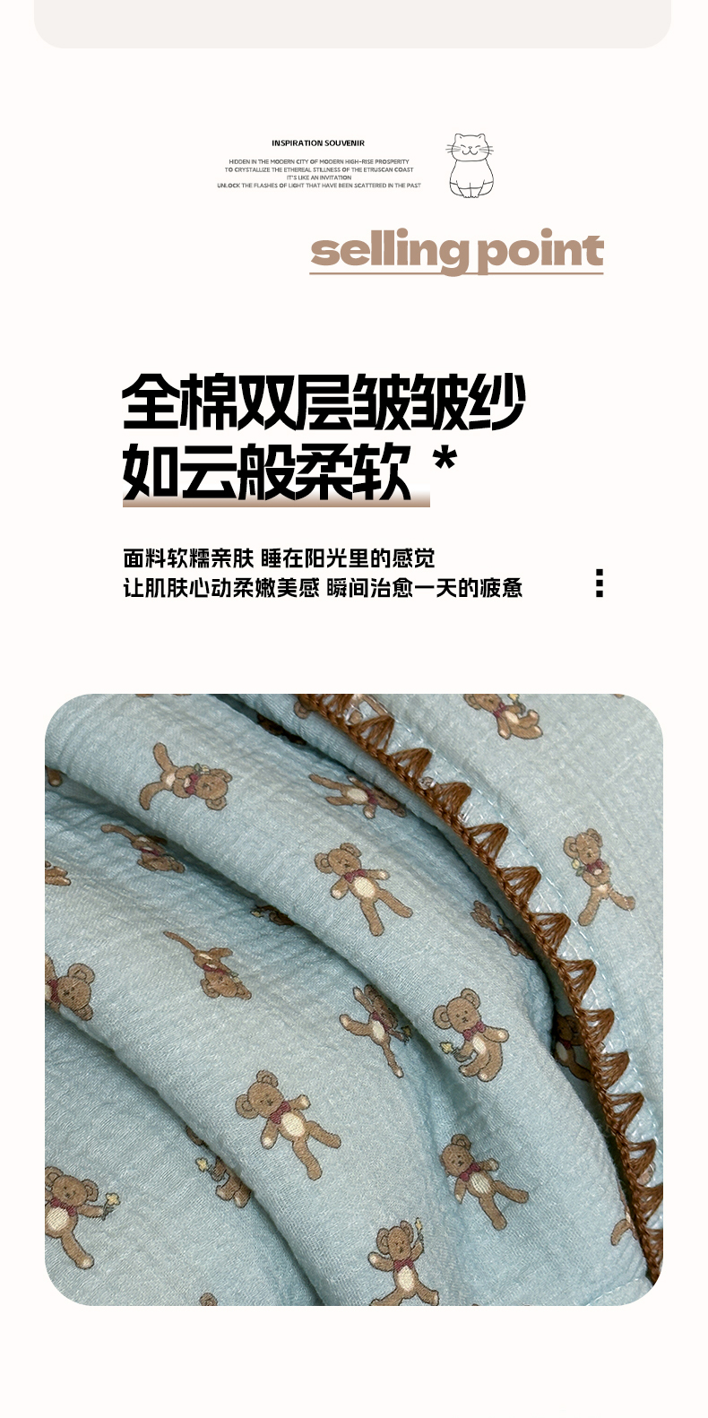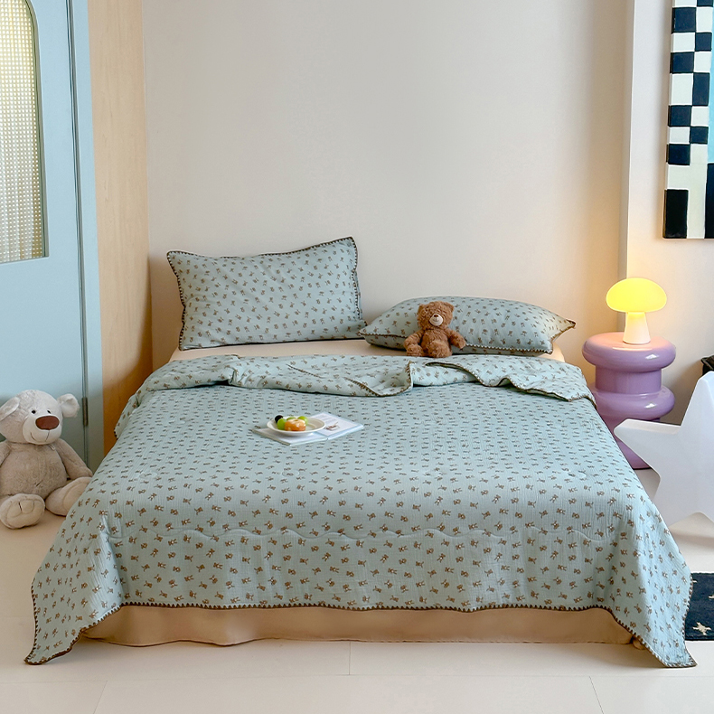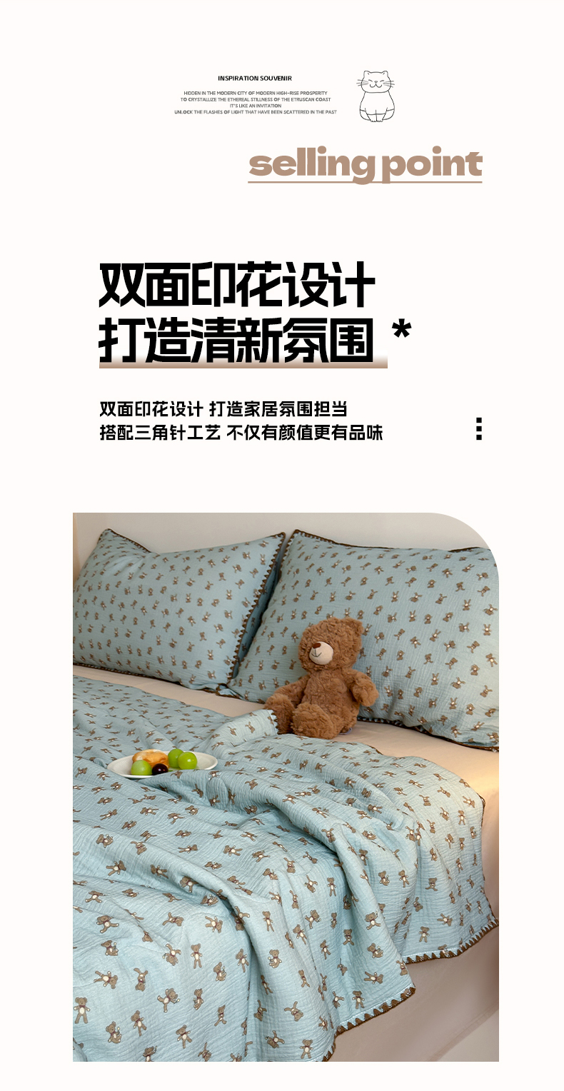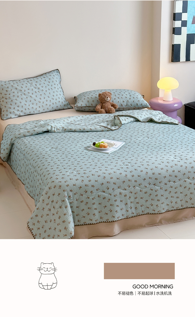 • 91家纺网 家纺一手货源 找家纺 三朵家纺 2025春夏新款全棉纯棉双层绉绉纱三角针夏被夏凉被空调被 蓝色熊仔