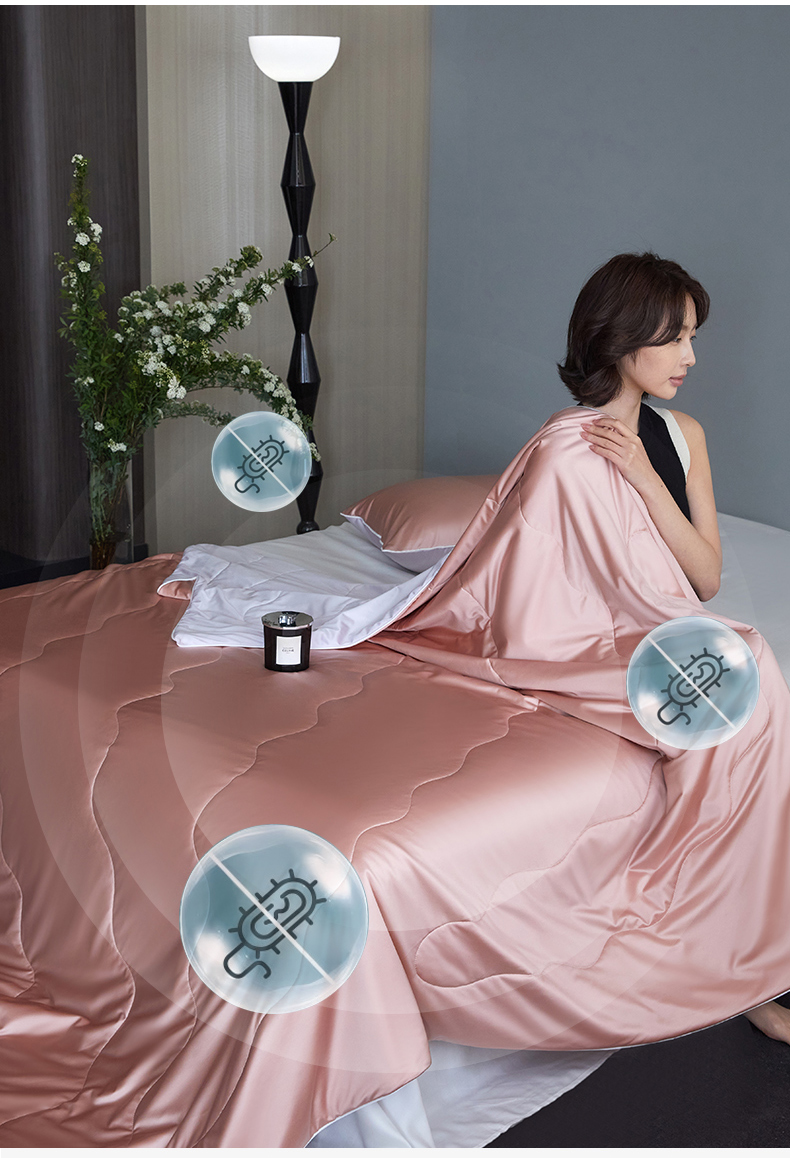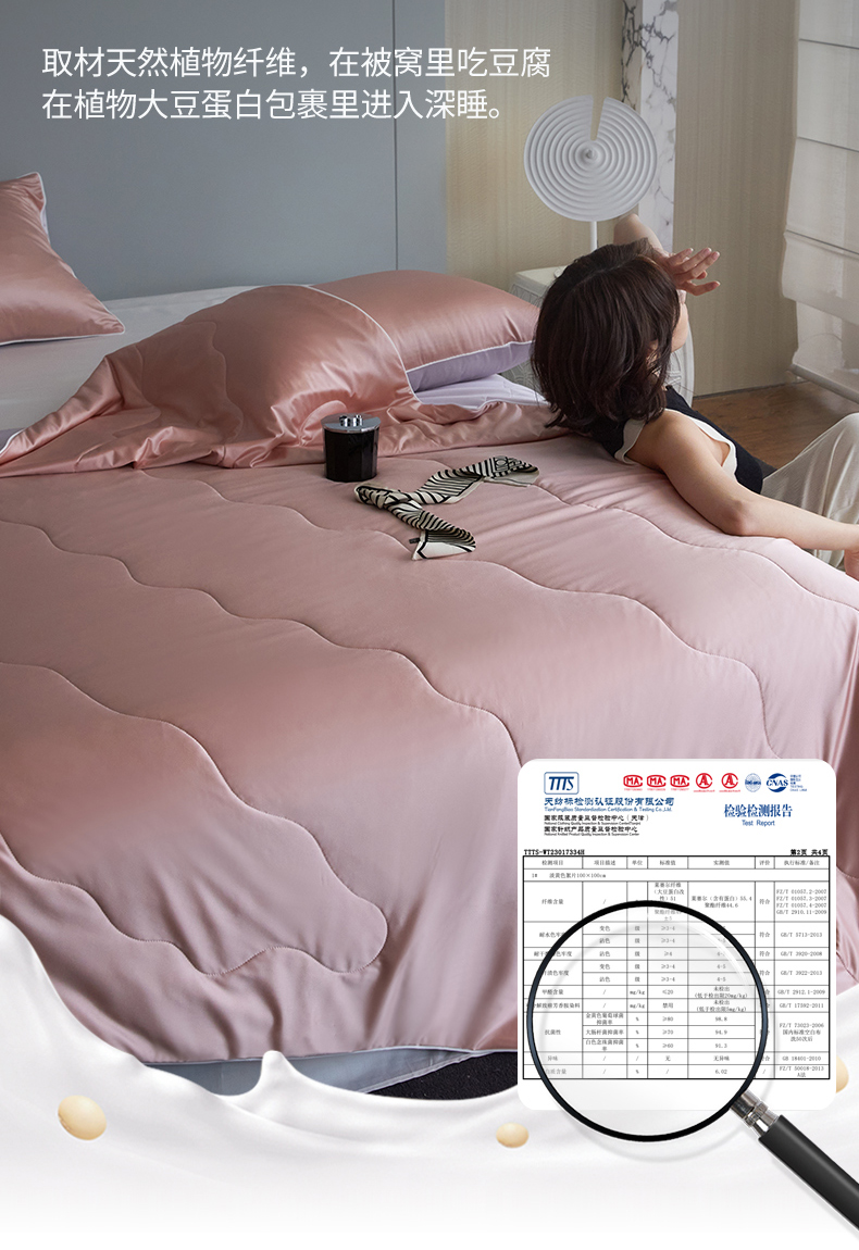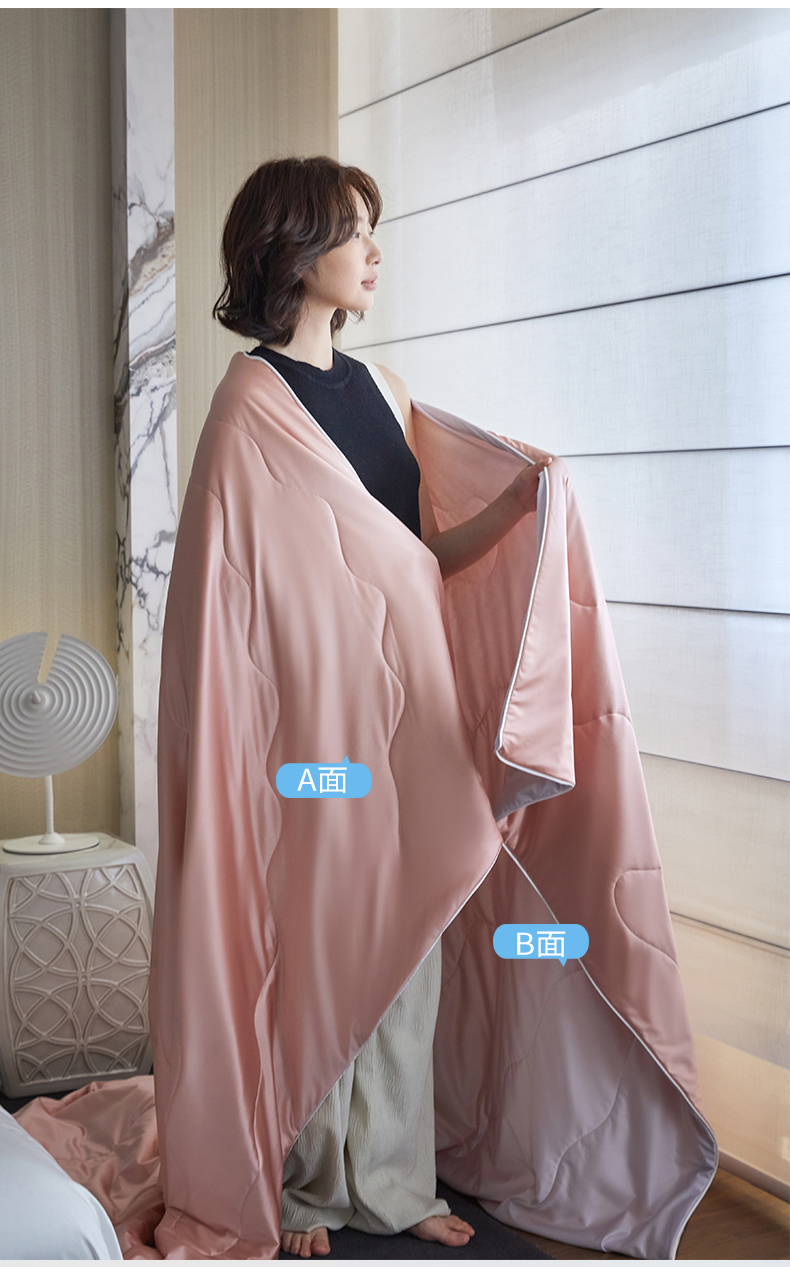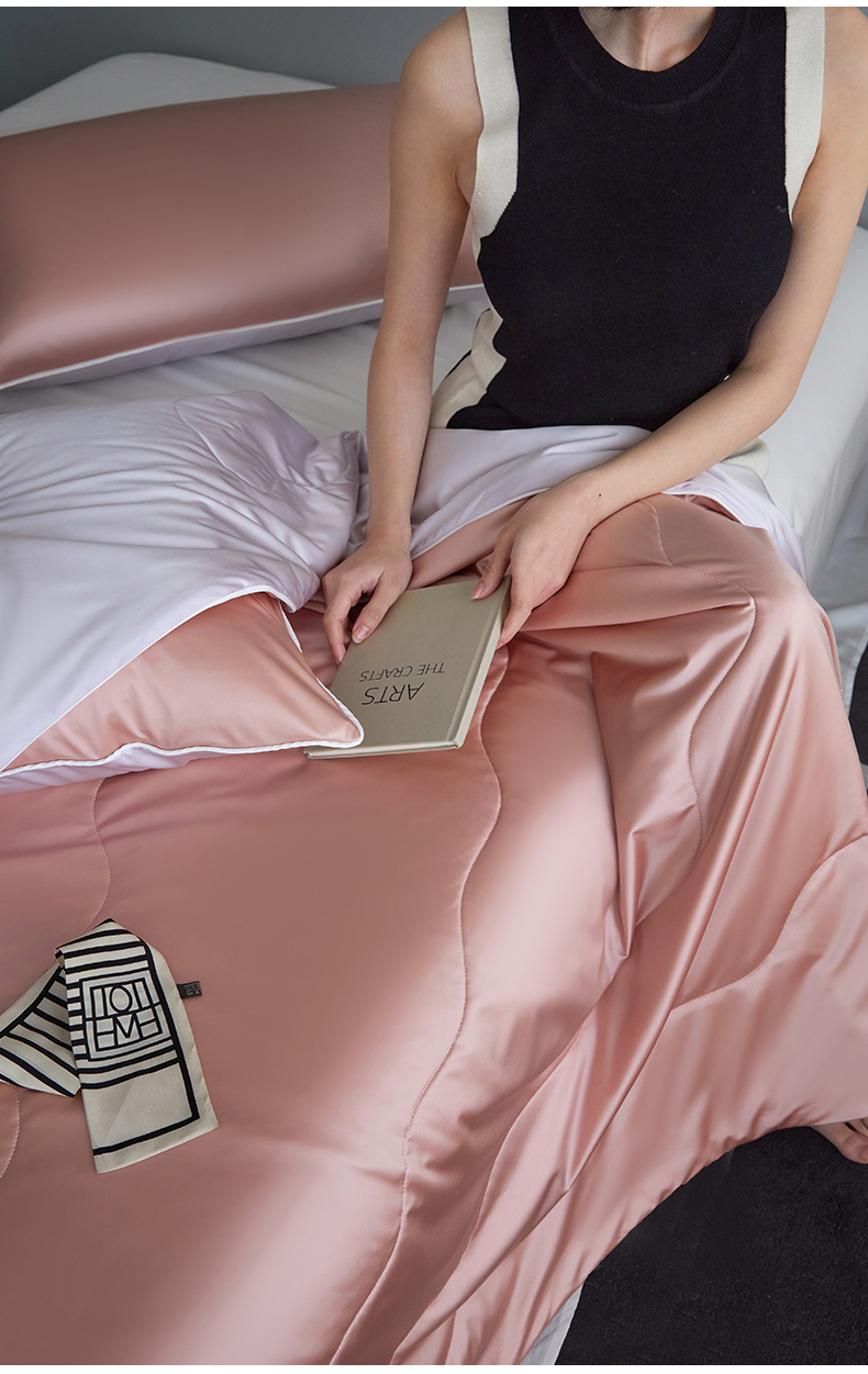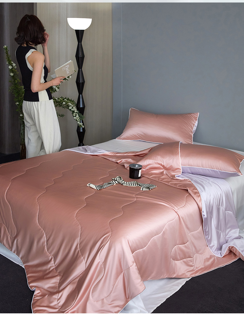 头等舱 2025新款水光缎冰肌锦氨A类55植物大豆7A抗菌夏被配包装模特图 水光粉配水光紫