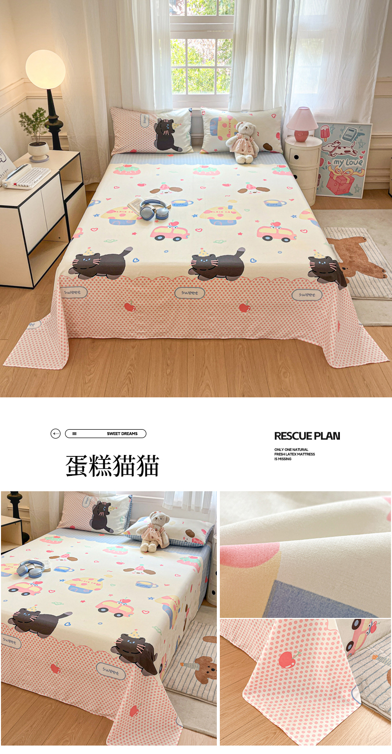 商品名称:Sweet dreams甜梦 2025新款全棉纯棉小清新印花床单单品单床单床单单件 草莓小猫