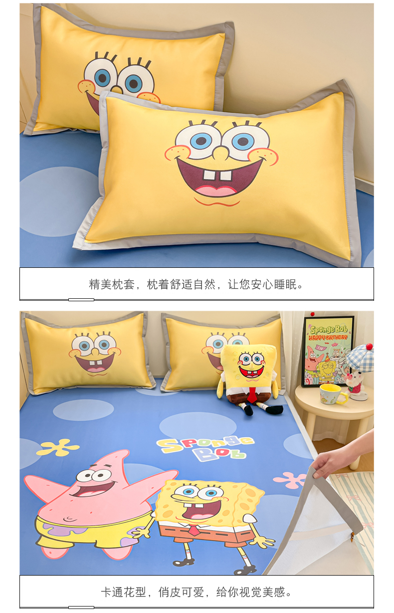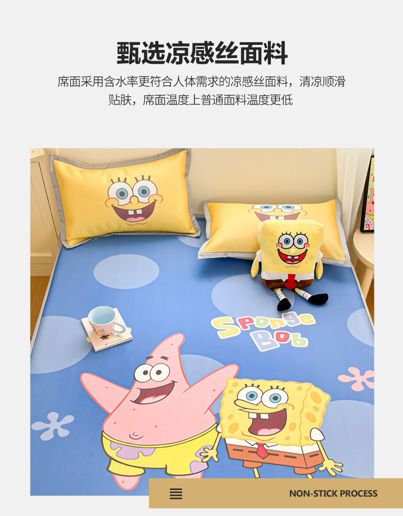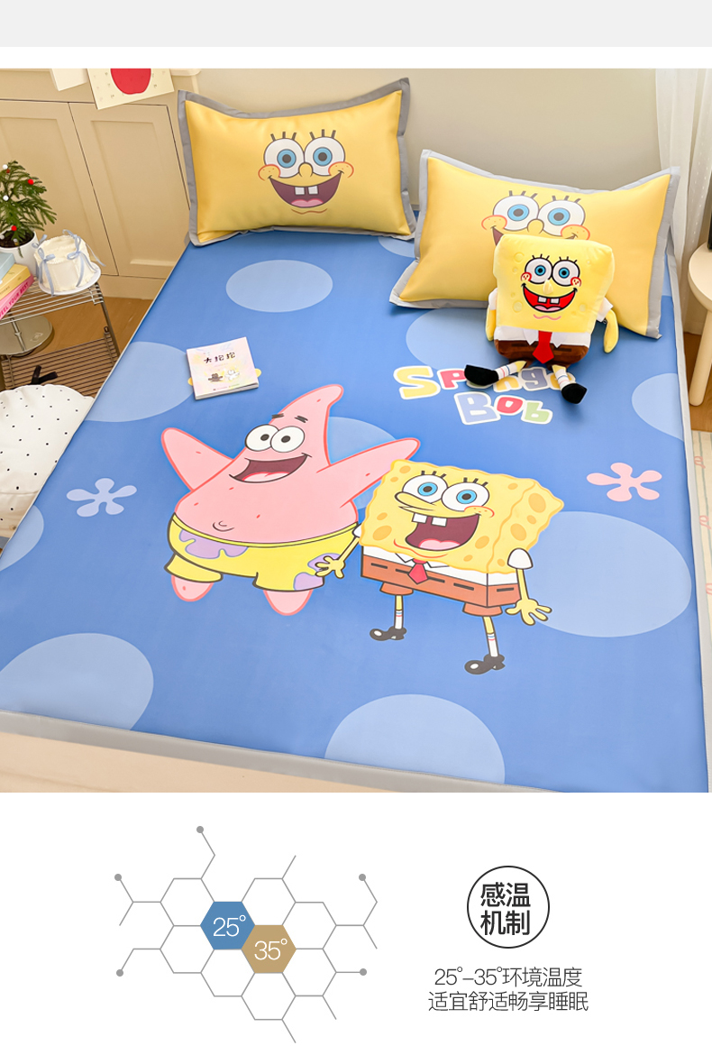 金爱家 2025新款冰丝凉席海绵宝宝 冰丝-蓝蓝海绵宝宝