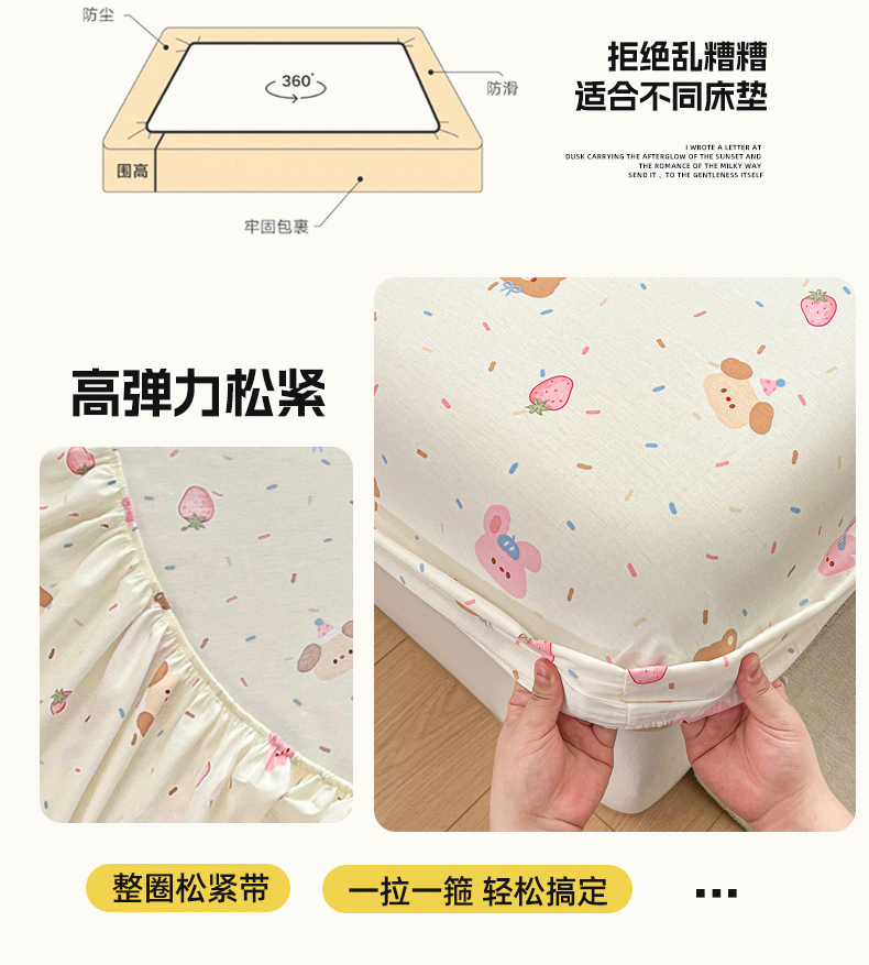 商品名称:Sweet dreams甜梦 2025新款全棉纯棉小清新印花床笠单品单床笠床笠单件 草莓小猫