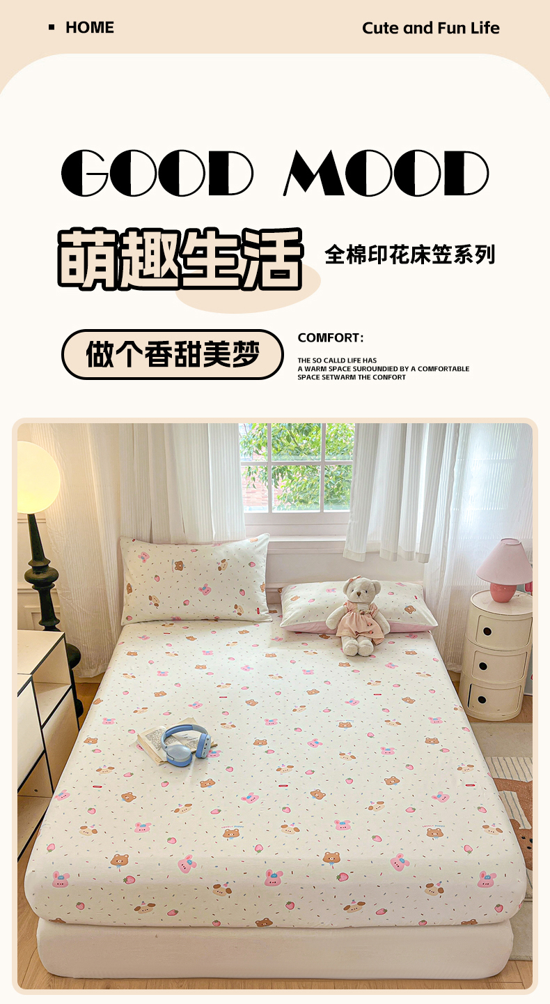 商品名称:Sweet dreams甜梦 2025新款全棉纯棉小清新印花床笠单品单床笠床笠单件 萌趣乐园