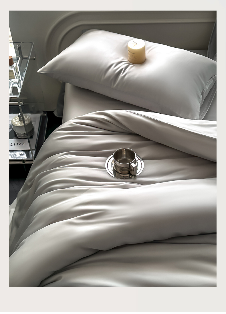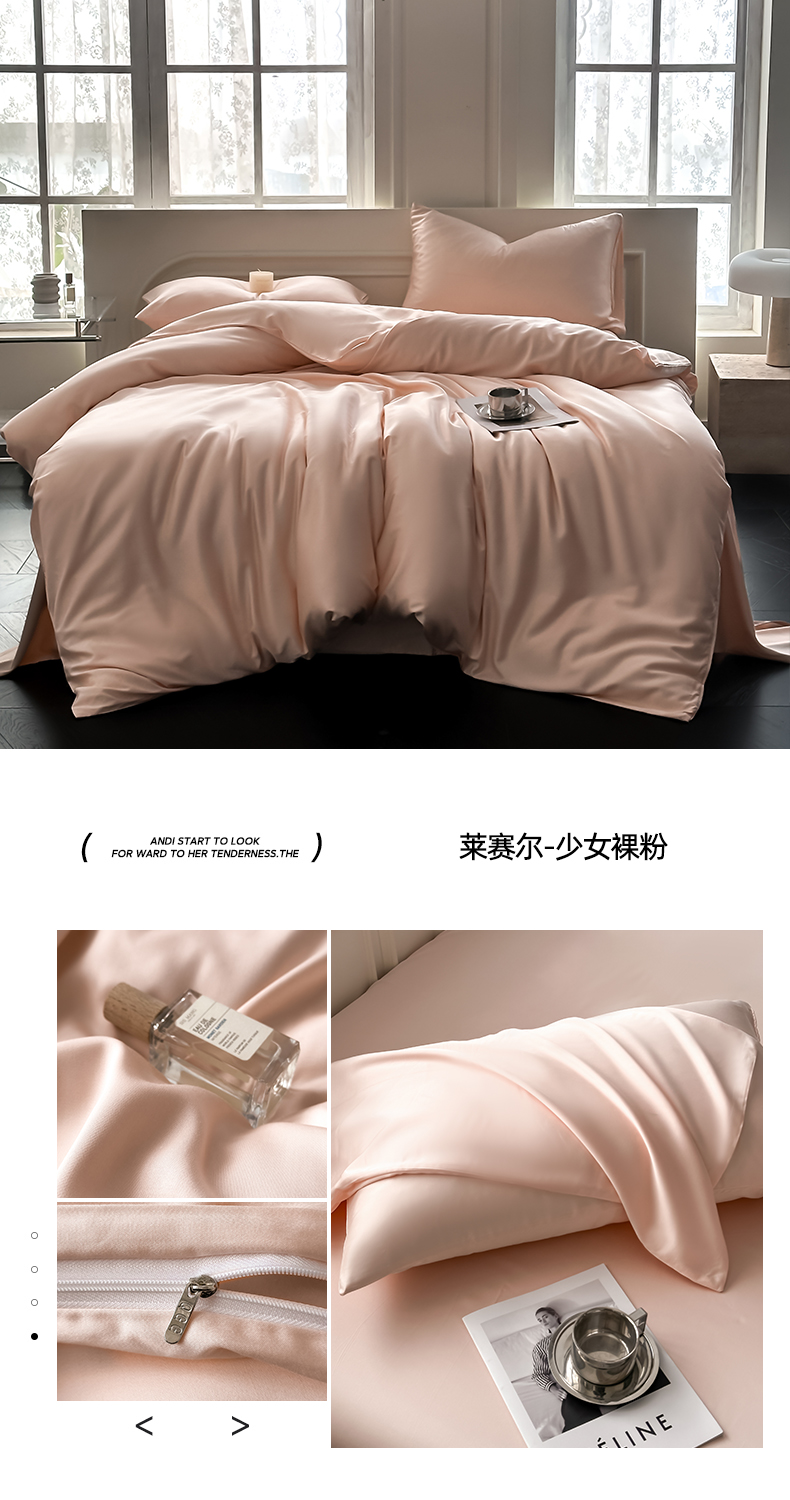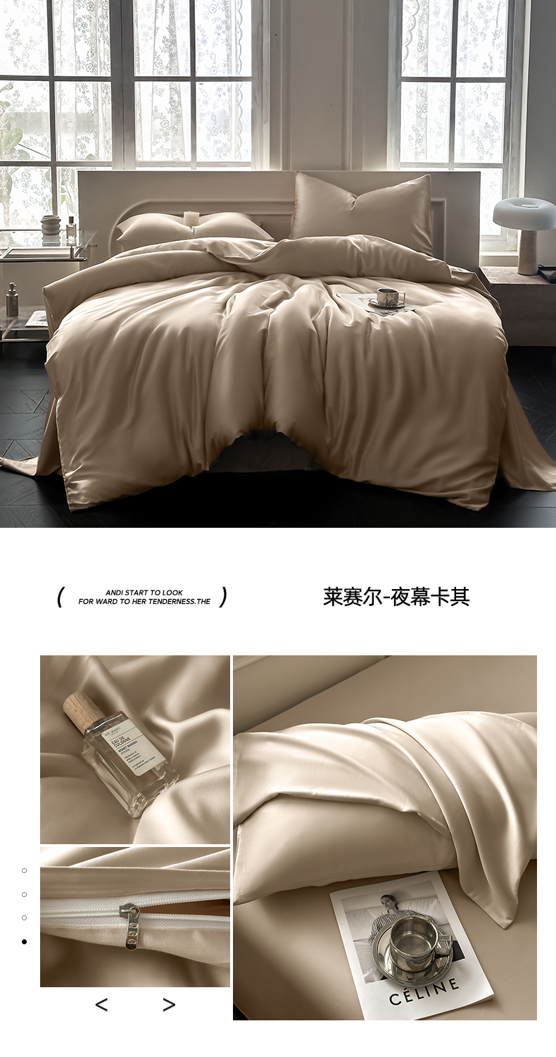 商品名称:琪格格纺织 2025春夏新款纯色莱赛尔天丝四件套 莱赛尔-夜幕卡其