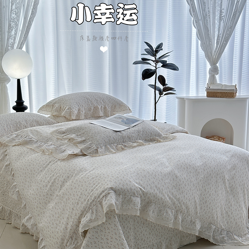 (总)佰织鑫家居 2025新款木耳边棉加绒床盖款四件套,梨花落,落了白