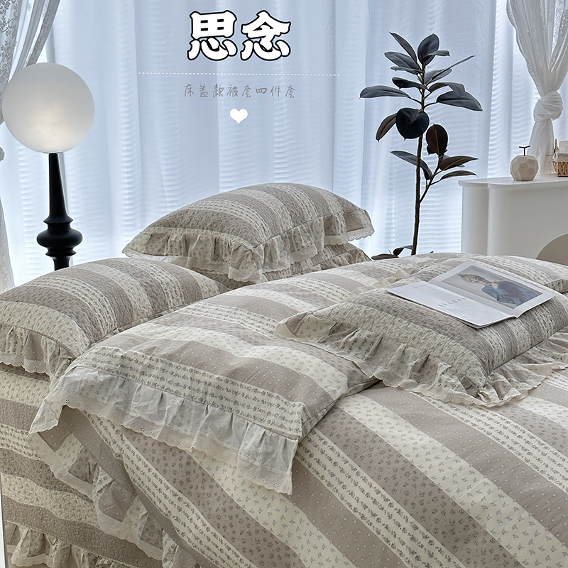 佰织鑫家居 2025新款全棉砂洗床盖款四件套-艾莎系列 木槿