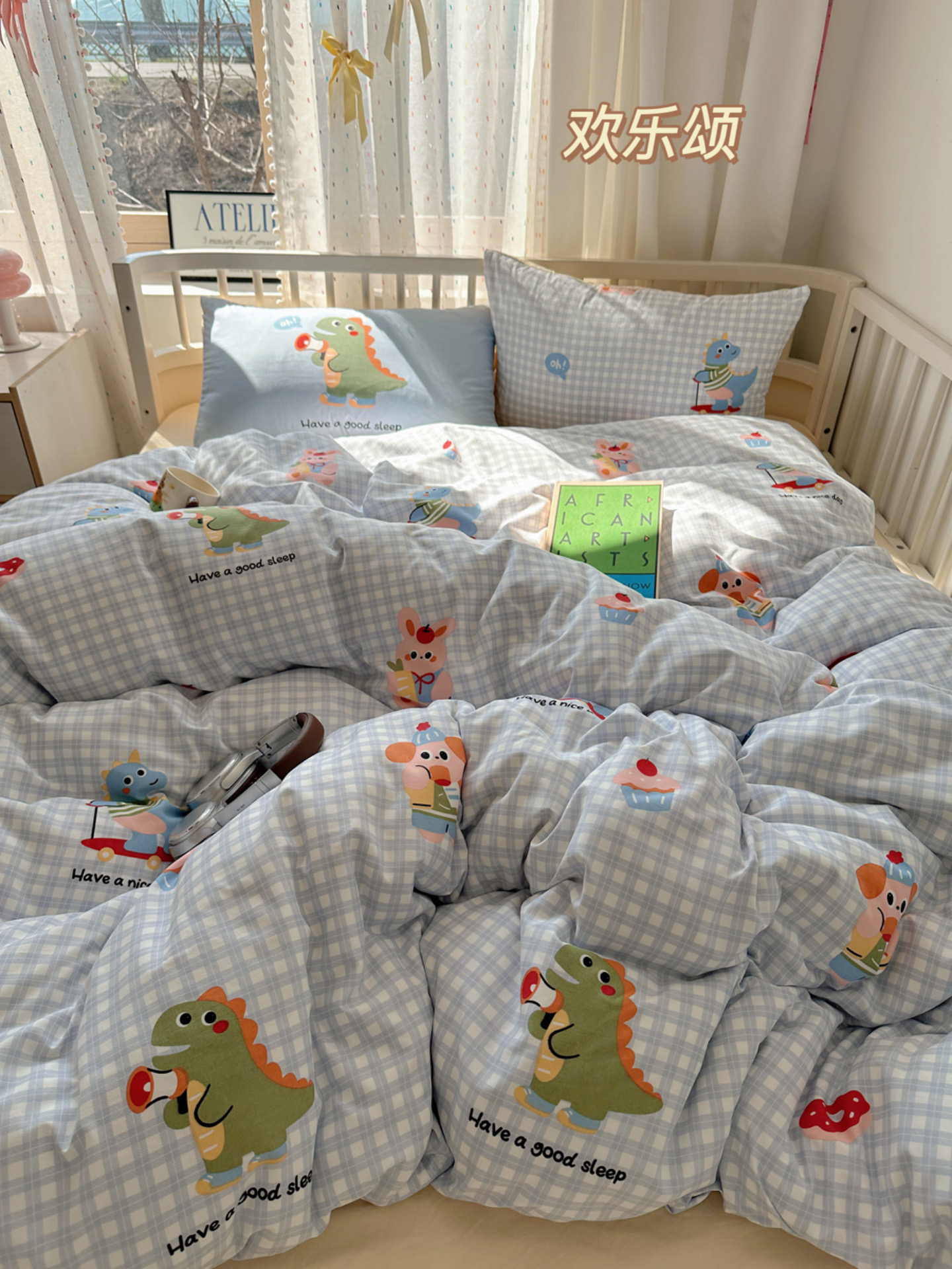 商品名称:顾里家纺 2025春夏新款韩系大版云朵棉四件套 复古K猫绿