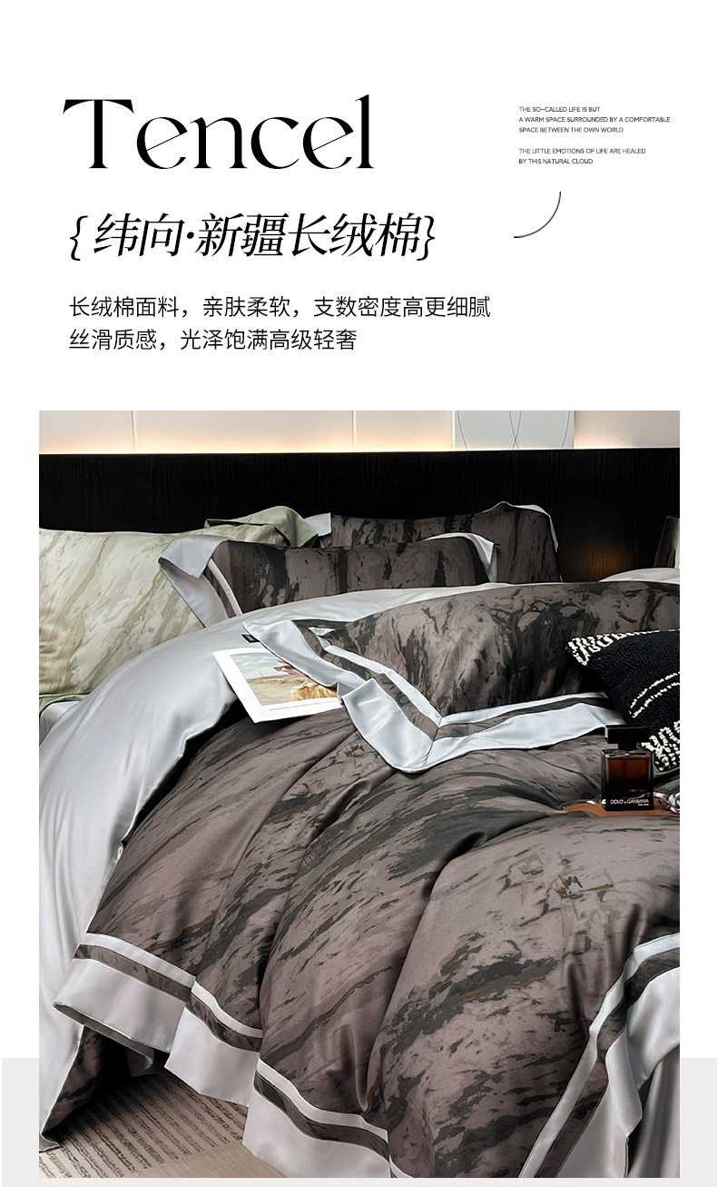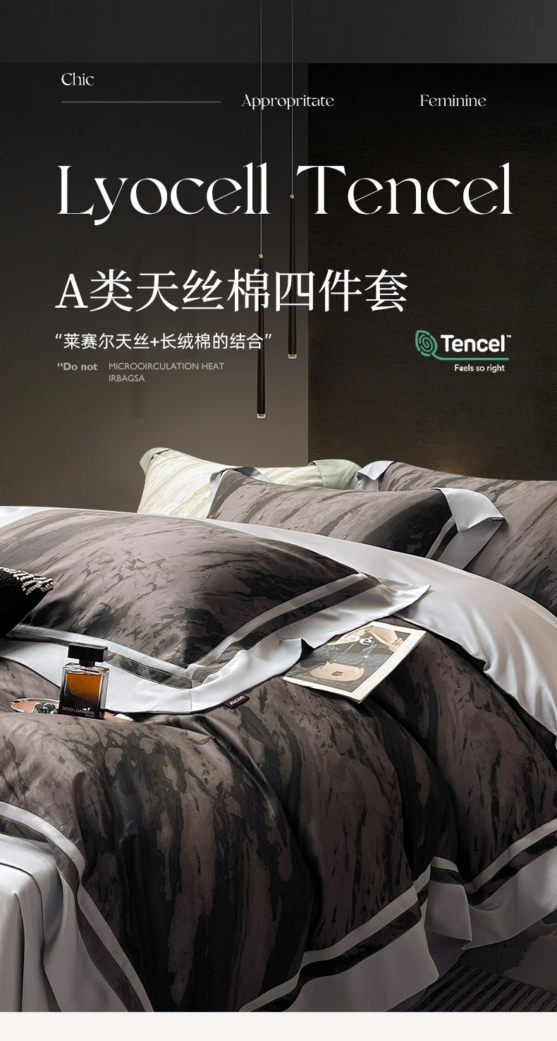 2025新款夏季A类母婴级天丝棉印花四件套纯棉全棉高端数码印花丝滑裸睡长绒棉被套真丝床上用品 布里奇-灰