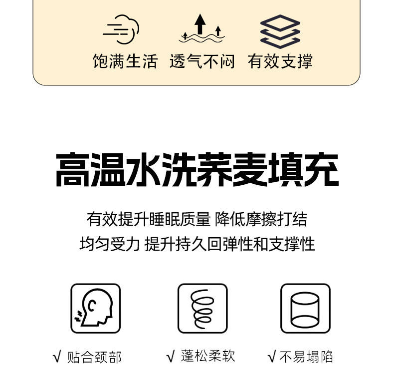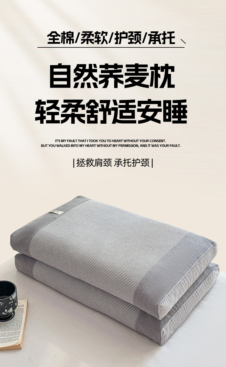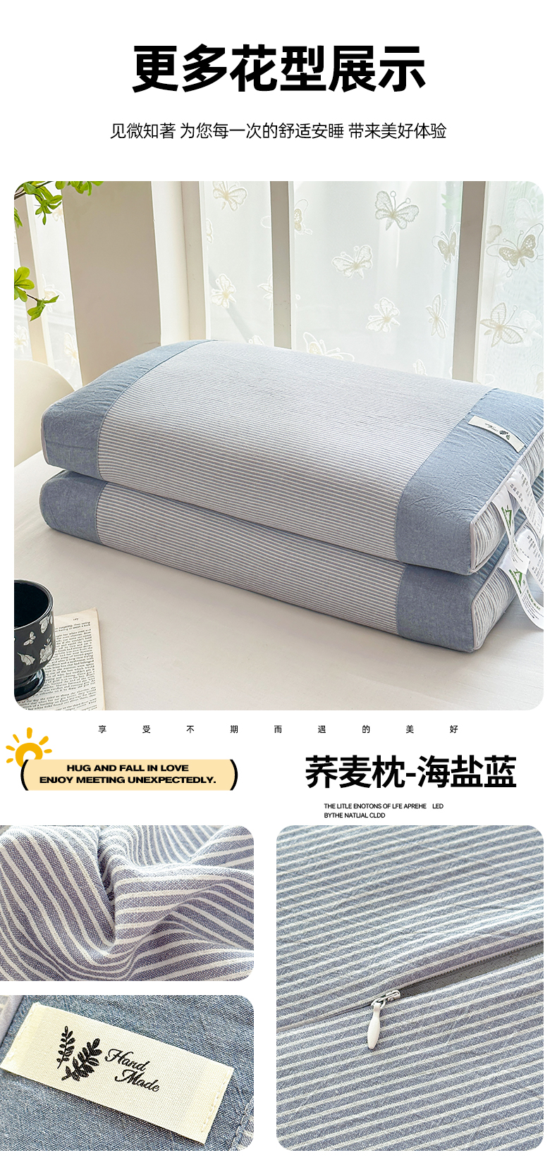 商品名称:(总)花瓣语家纺 2025新款全棉拼色水洗荞麦枕