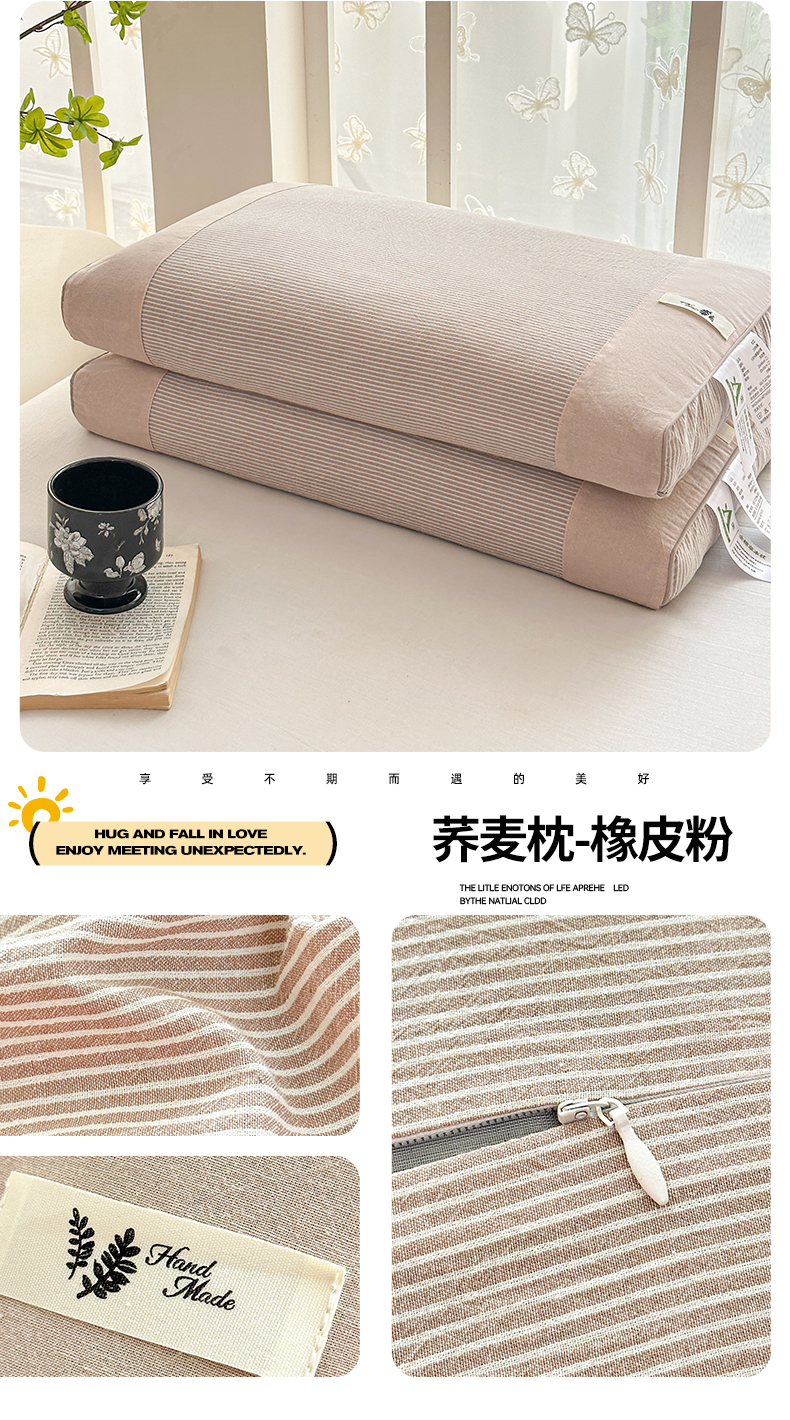 (总)花瓣语家纺 2025新款全棉拼色水洗荞麦枕