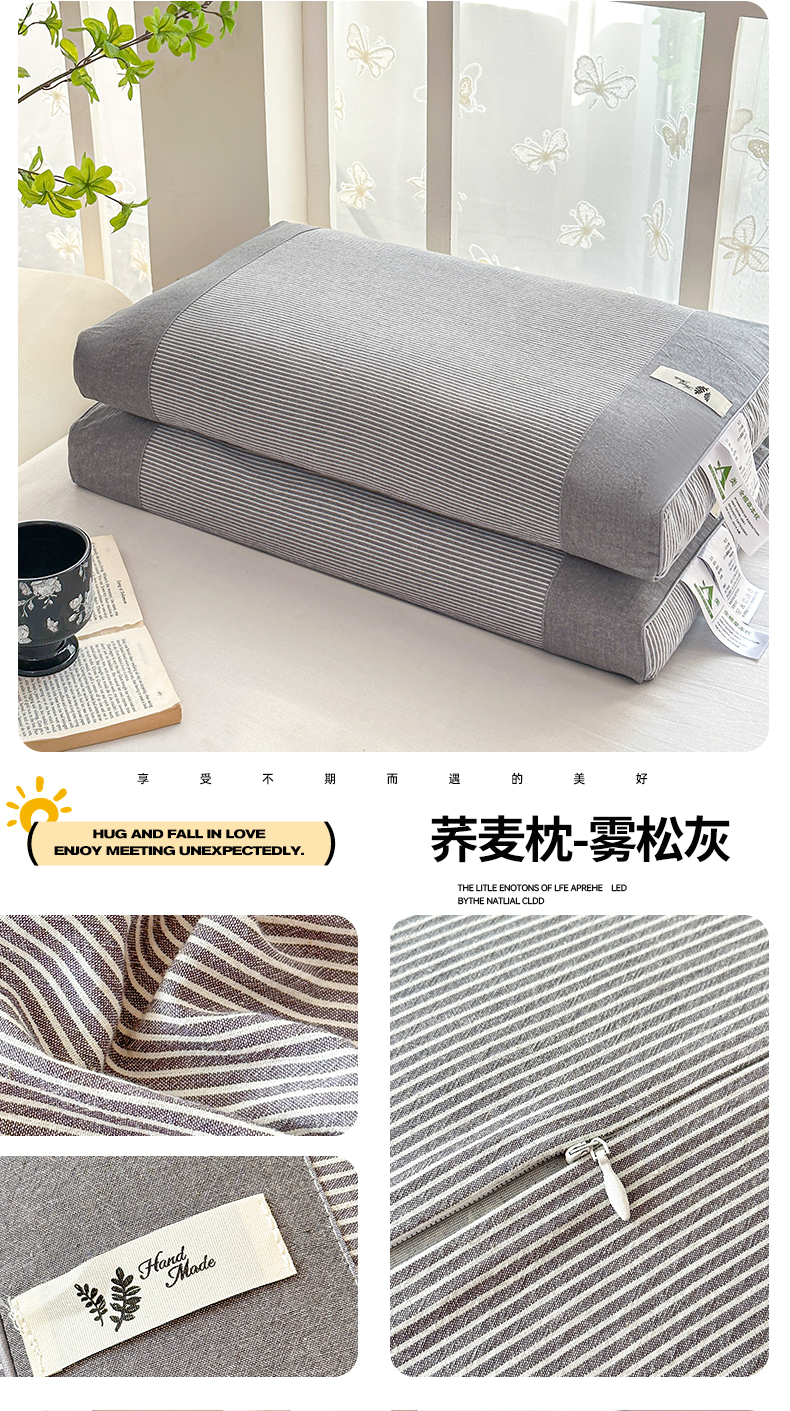 (总)2024新款全棉荞麦枕 全棉砂洗全荞麦枕,灰色,桃粉色,绿色,红咖色