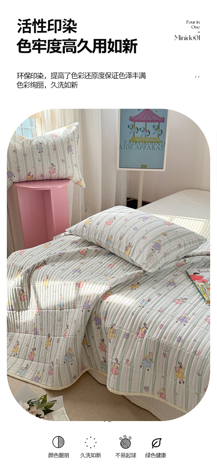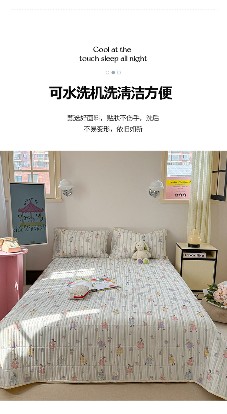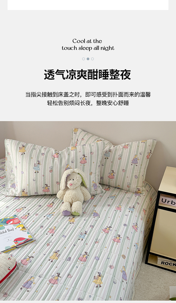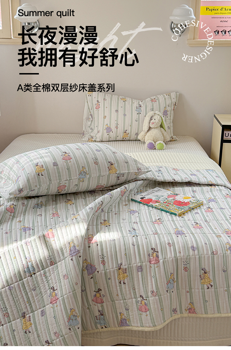 商品名称:TT.one 塔塔家居 2025新款全棉双层纱贝壳边夏被系列 床盖·桃桃少女绿