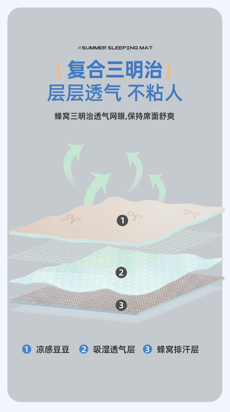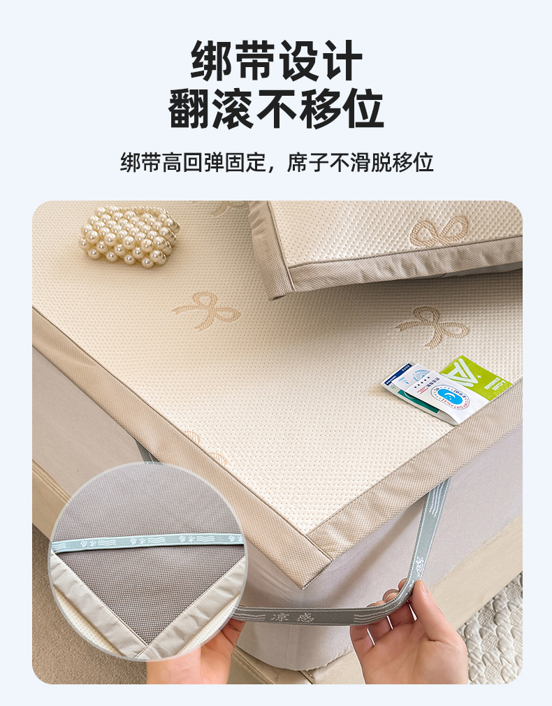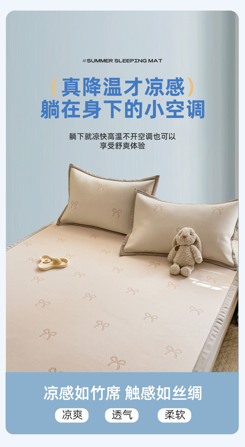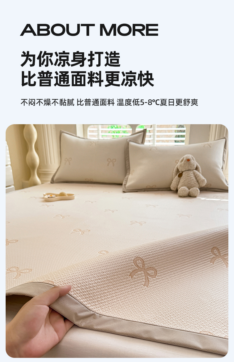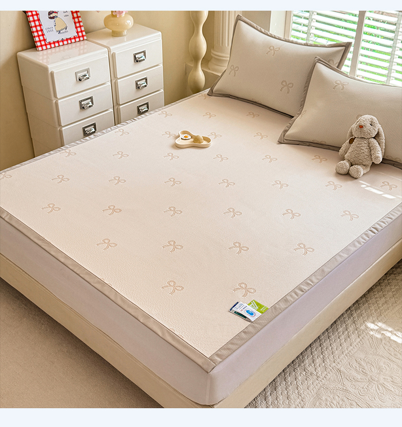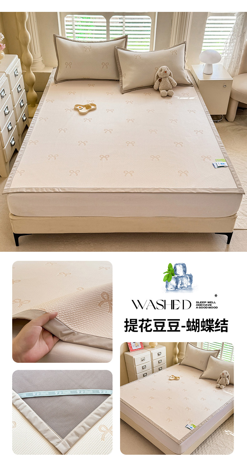 商品名称:绒世界 2025新款A类提花凉感豆豆复合凉席套件 提花豆豆-蝴蝶结