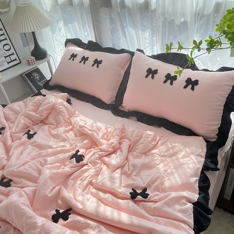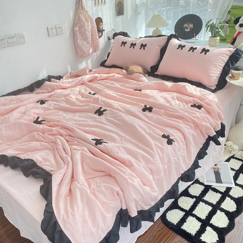 当前位置: 91家纺网 > 商品网购 > 床品套件 > 四件套 > 其它四件套 > 2025新款毛巾绣单夏被夏被四件套 蝴蝶结 -粉