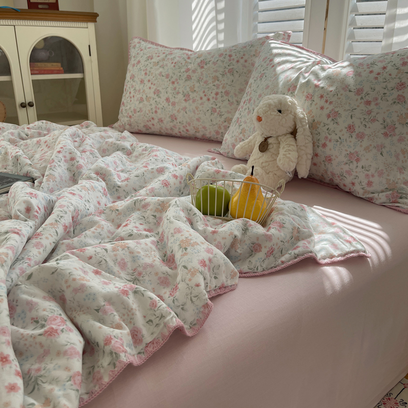 (总)塔塔 2025新款法式田园全棉针织棉花边印花夏被,花奈,假日,洛可可,漫恋,木槿,浅汐,小樱桃,洋兰