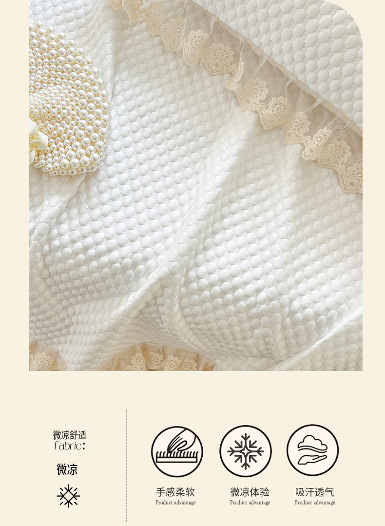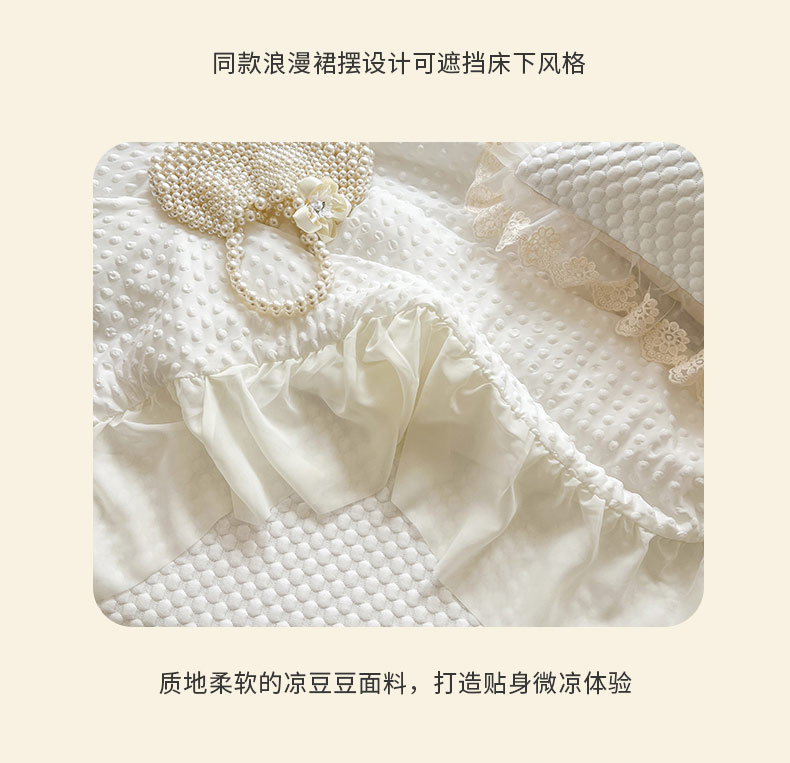商品名称:恋尚 2025新款立体裸睡凉感冰豆豆席豆豆夏被夏凉被空调被四件套-伊米(控价265起) 伊米-米白