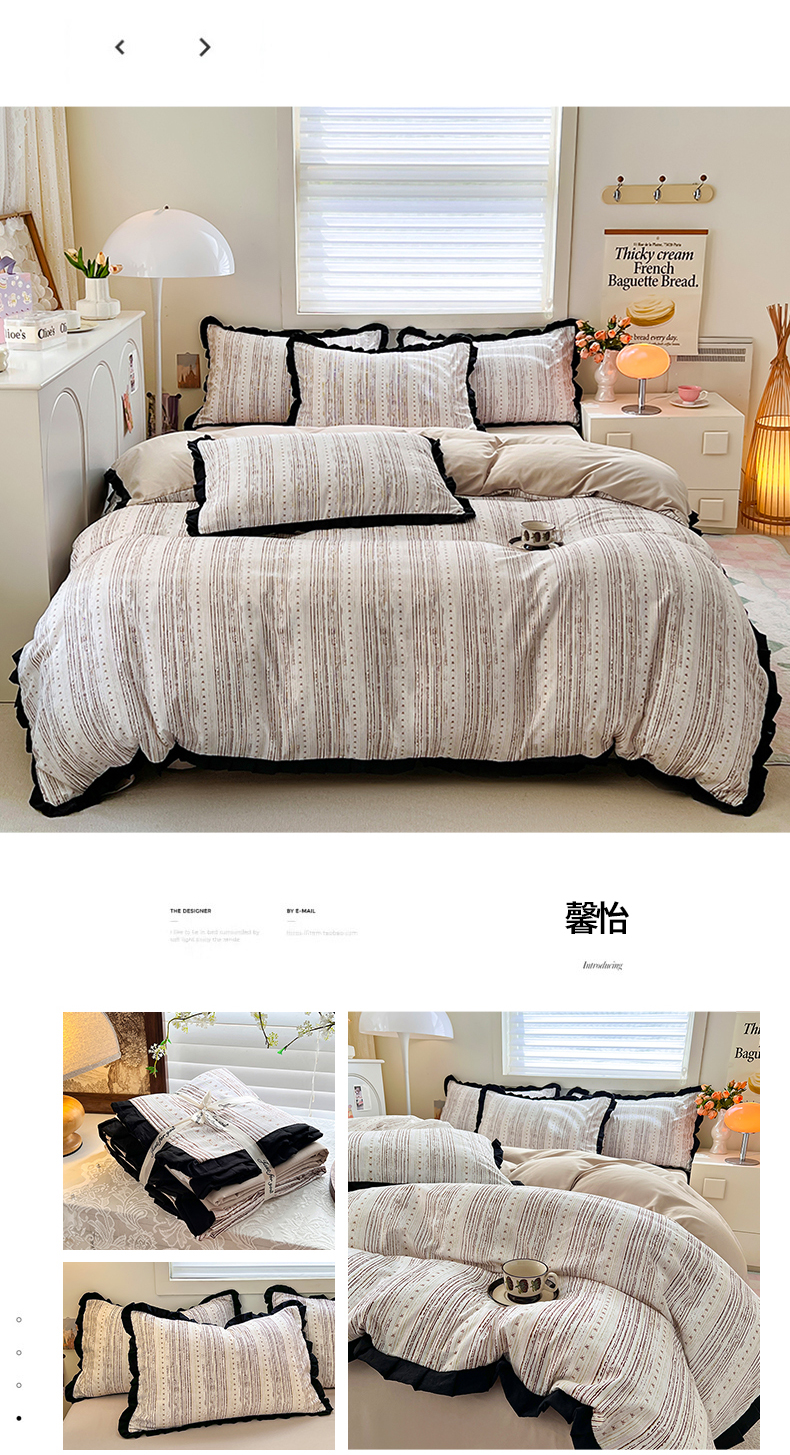 当前位置: 91家纺网 > 商品网购 > 床品套件 > 四件套 > 水洗棉四件套 > 曼璐家纺 2025新款有氧水洗棉赫本风法式黑色花边四件套 馨怡