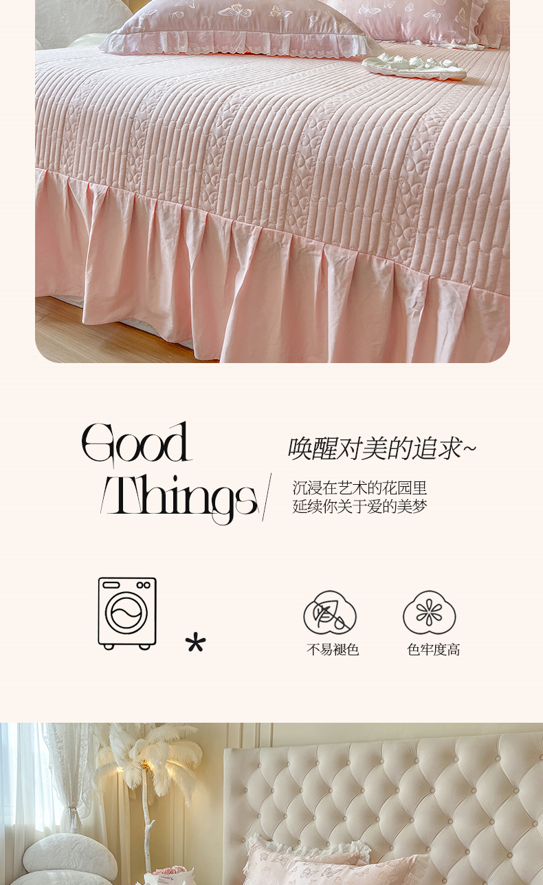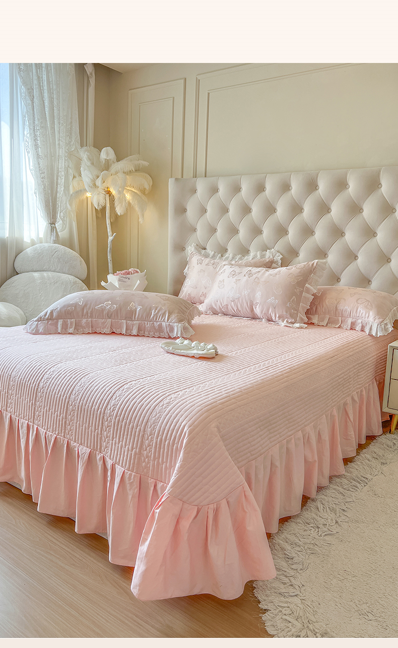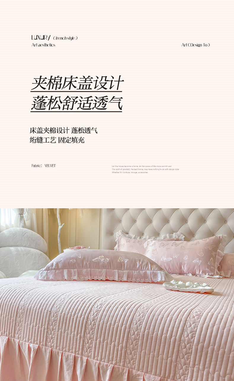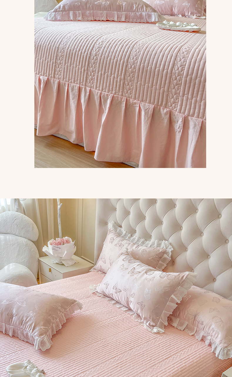 当前位置: 91家纺网 > 商品网购 > 床品套件 > 三件套 > 瑞宝 2025新款法式花边贡缎提花床盖三件套-蝶与梦 蜜粉