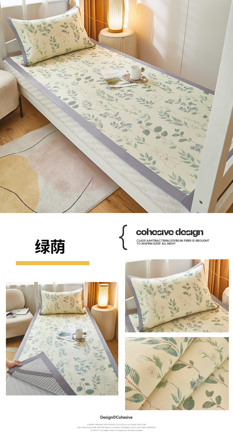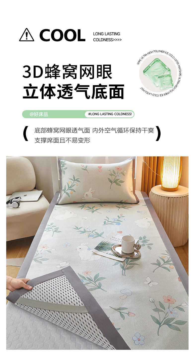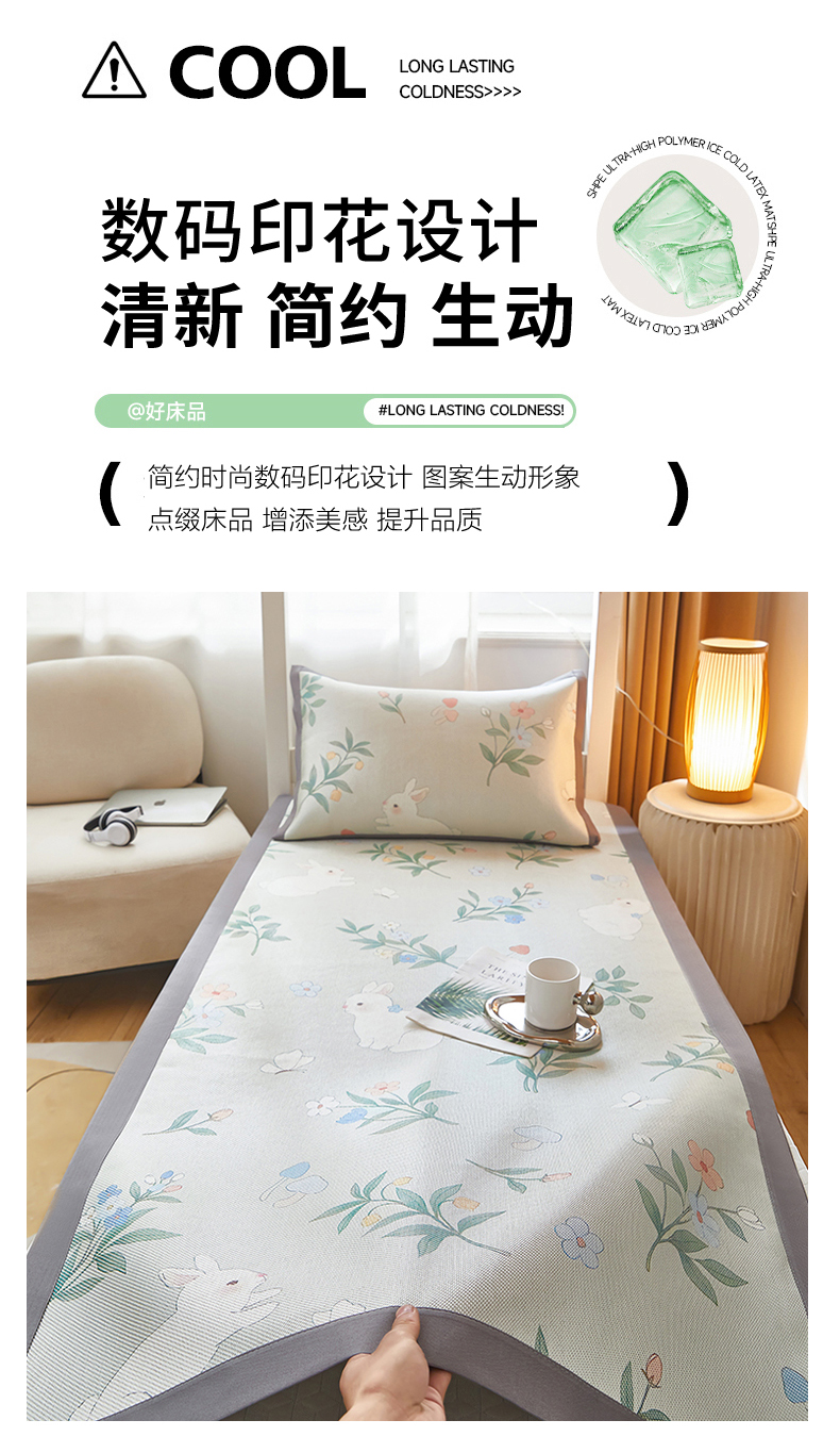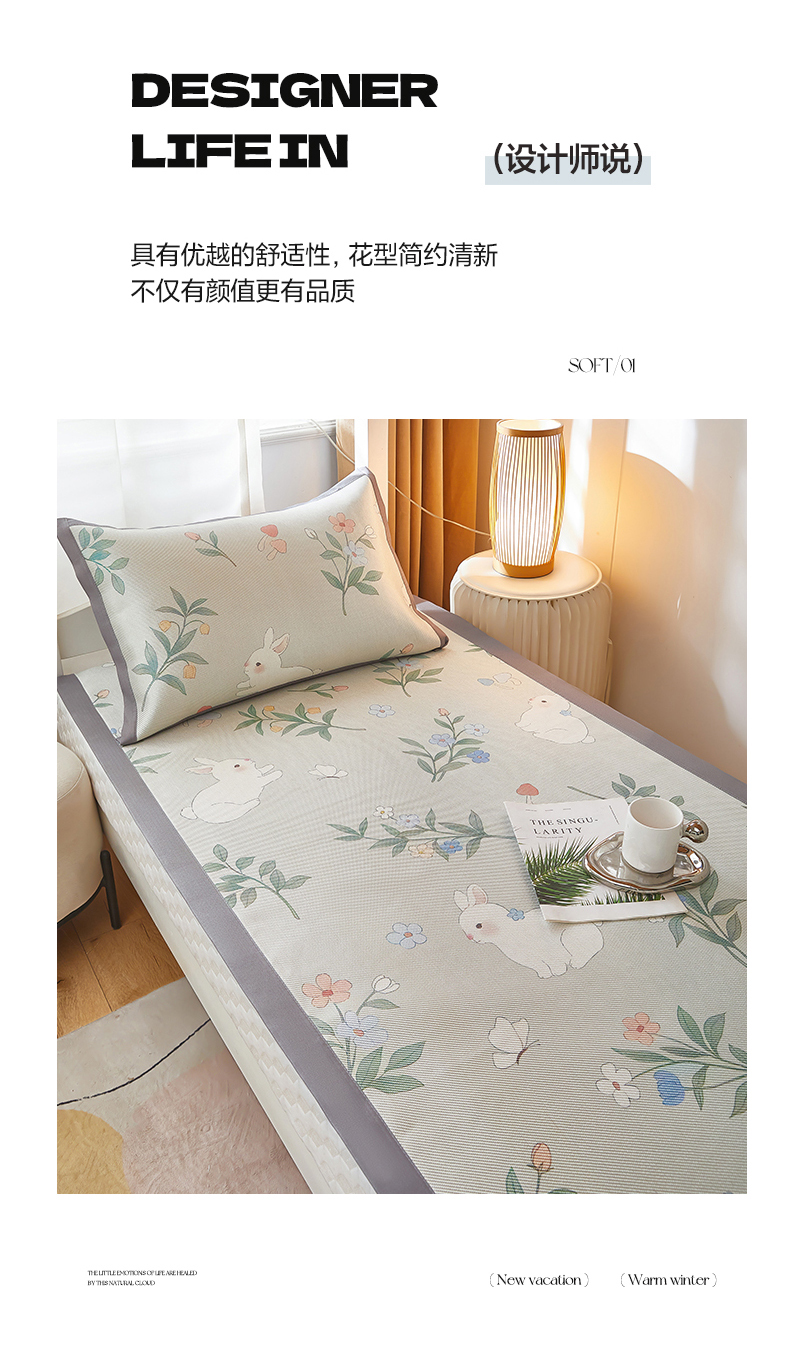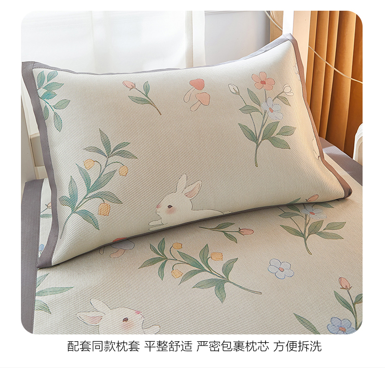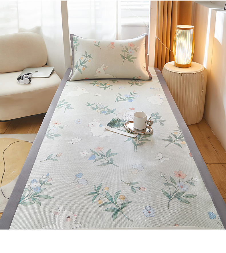 商品名称:沐慕 2025新款学生床小清新印花冰藤席 花丛兔兔