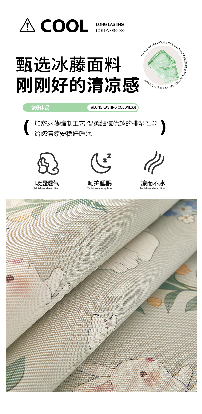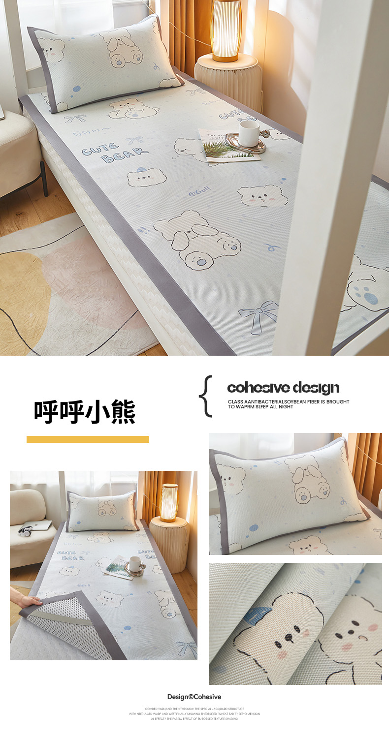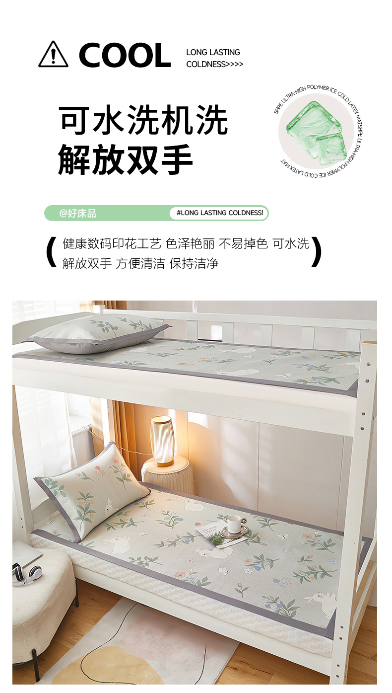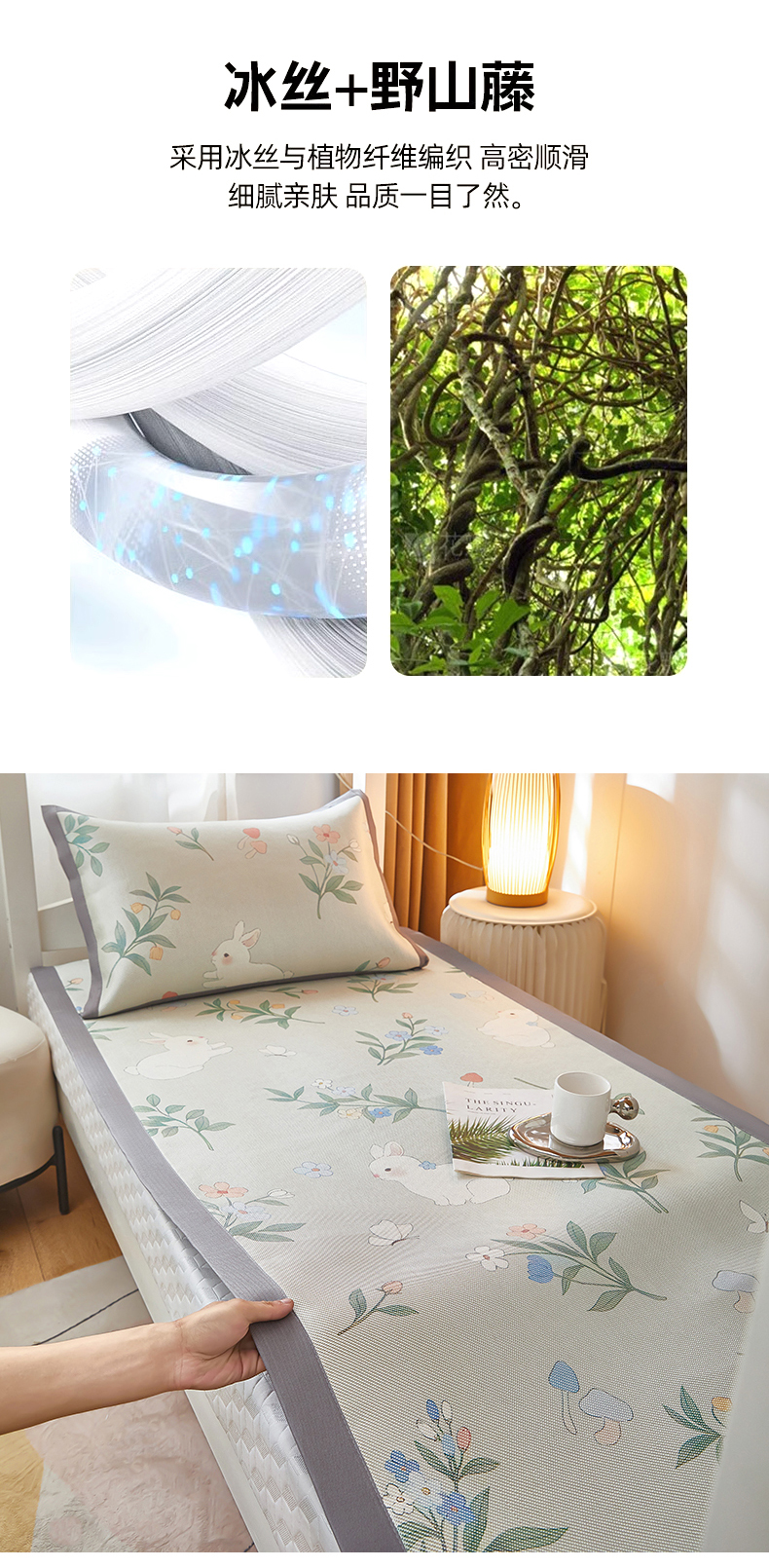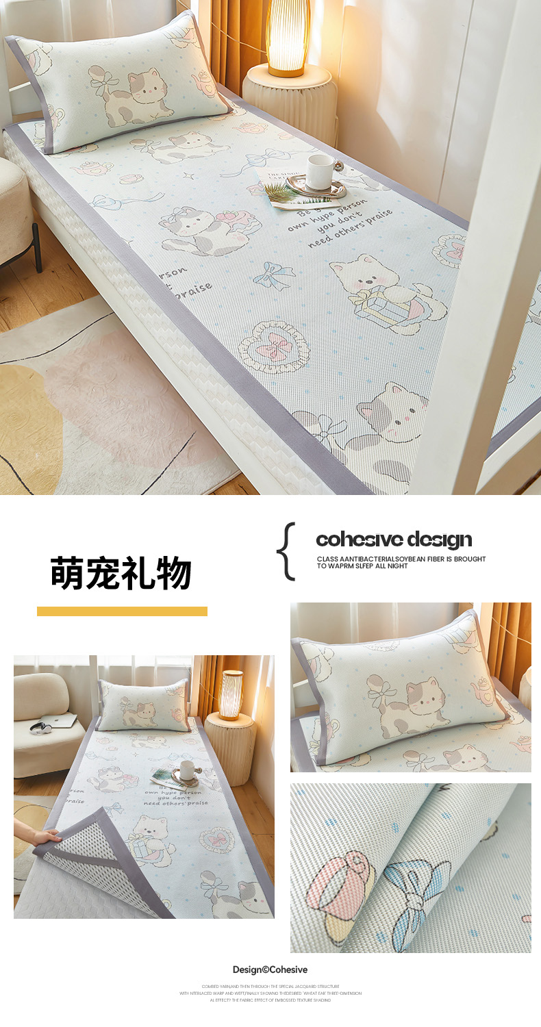 商品名称:沐慕 2025新款学生床小清新印花冰藤席 花丛兔兔