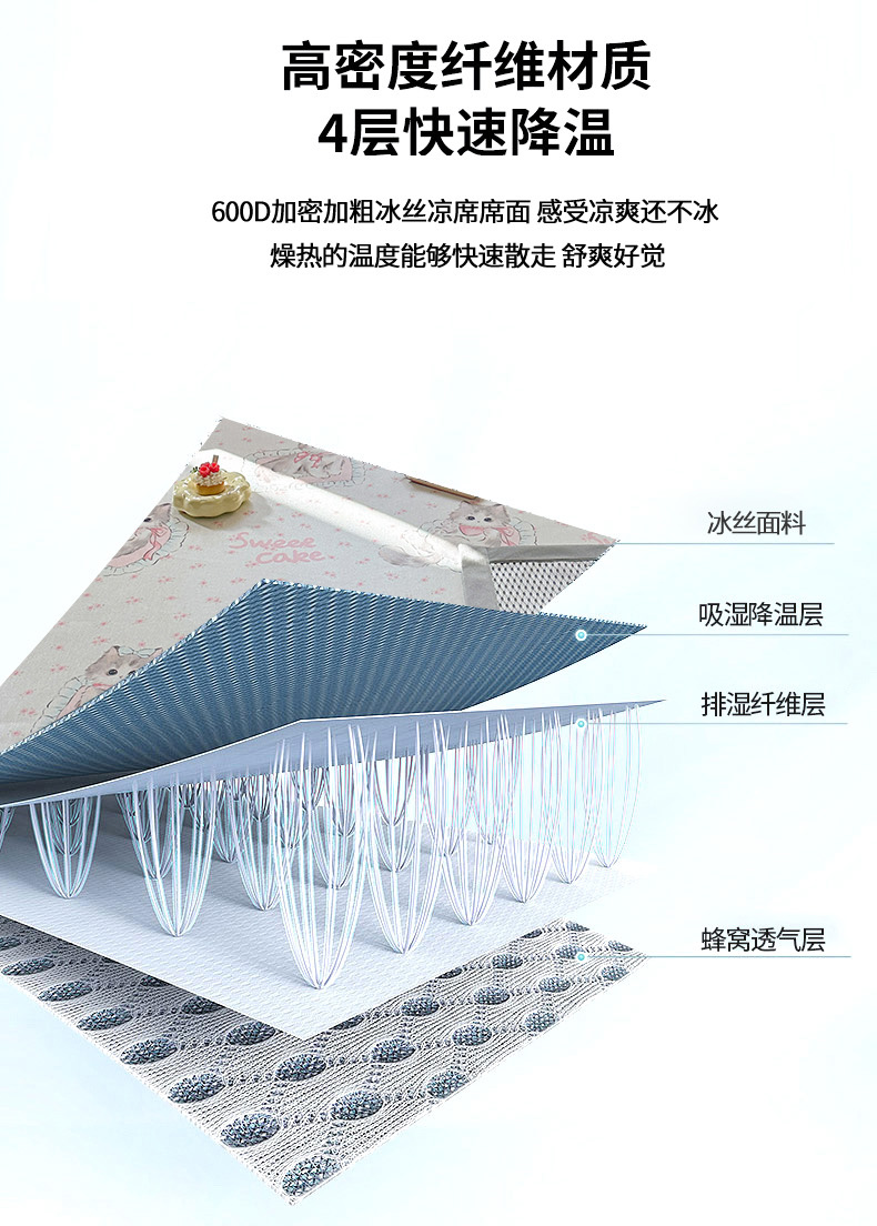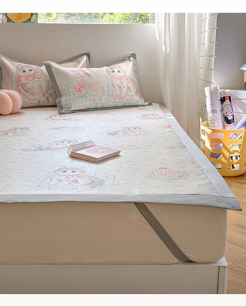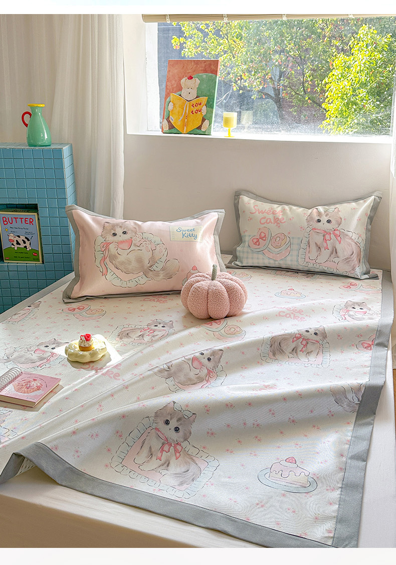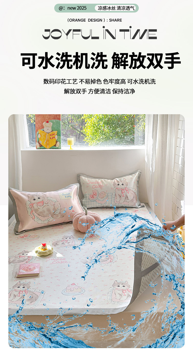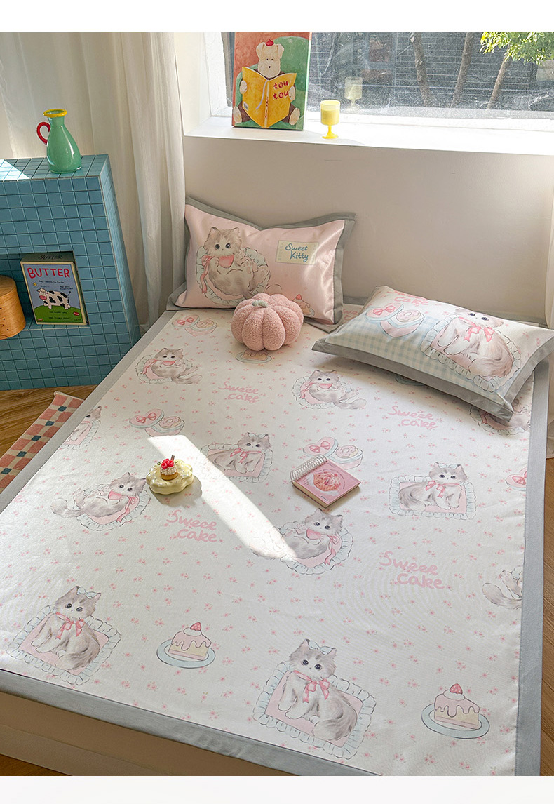沐慕 2025新款时尚数码印花600D冰丝凉席系列 冰丝-玫瑰粉喵
