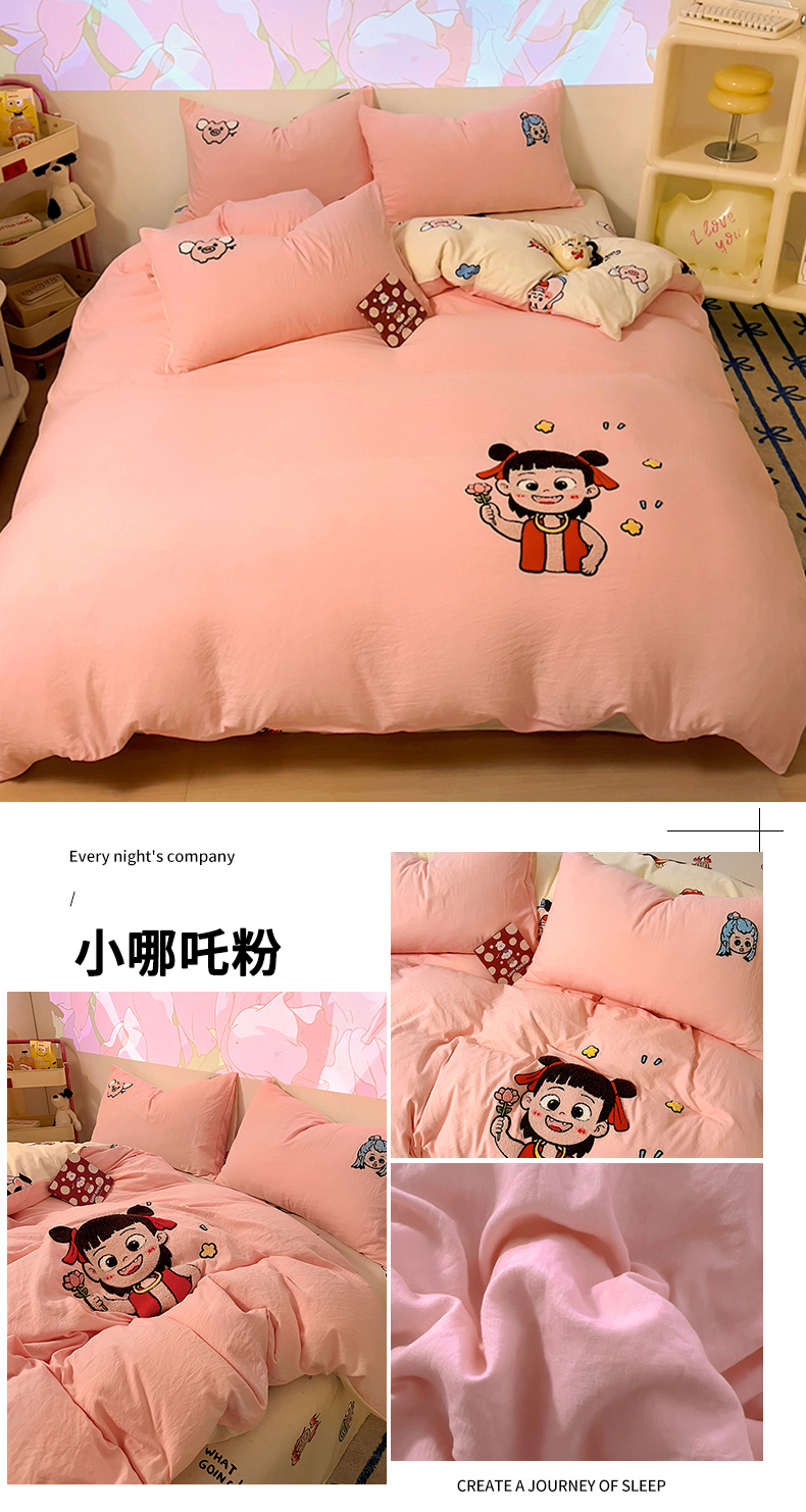 当前位置: 91家纺网 > 商品网购 > 床品套件 > 四件套 > 水洗棉四件套 > 易辰美 2025新款超软水洗棉毛巾绣四件套-系列二 小哪吒粉