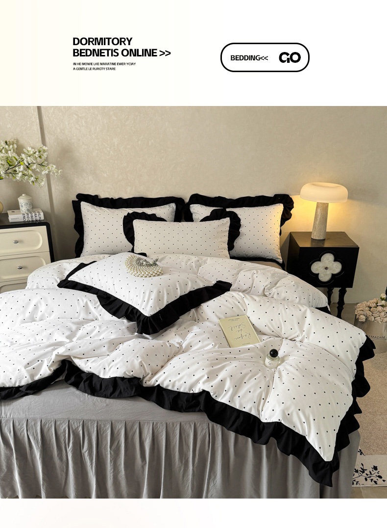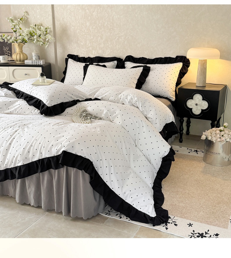 当前位置: 91家纺网 > 商品网购 > 床品套件 > 四件套 > 其它四件套 > 上尚居 2025新款法式花边赫本风印花云朵棉四件套 点点爱