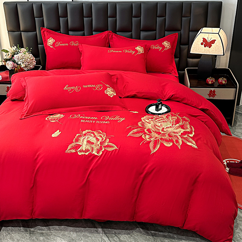 大麦乐田 2025新款磨毛刺绣吊边四件套系列--盛世牡丹 盛世牡丹 红粉