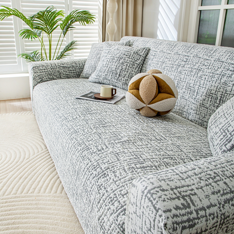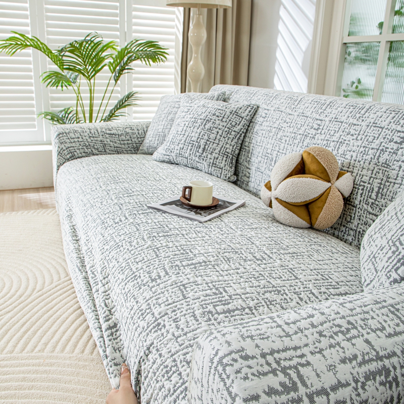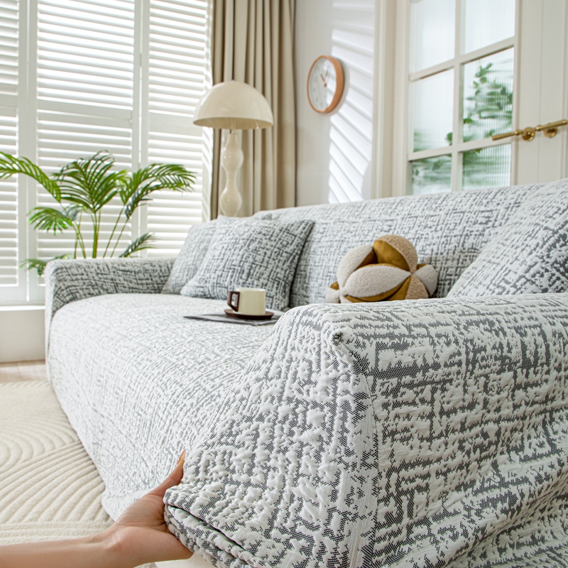 (总)沐沐家纺 2026新款双人位臻品提花沙发套,孔雀蓝,米白,浅灰,浅紫,青色