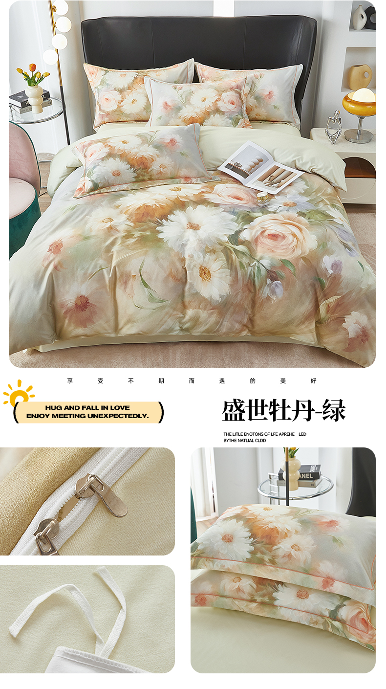 (总)雲归梦 2025春夏新款全棉纯棉5D数码印花四件套,荷韵飘香-粉,蝴蝶仙子-紫,花开雏菊-绿,花舞序曲,花语悠然-粉,萌宠乐园-绿,倾心之恋,日照金山,如若梦境-桔,如若梦境-绿,如若梦境-紫,山樱漫语,盛世牡丹-粉,盛世牡丹-绿,甜花香-桔,羽毛飘飘-粉