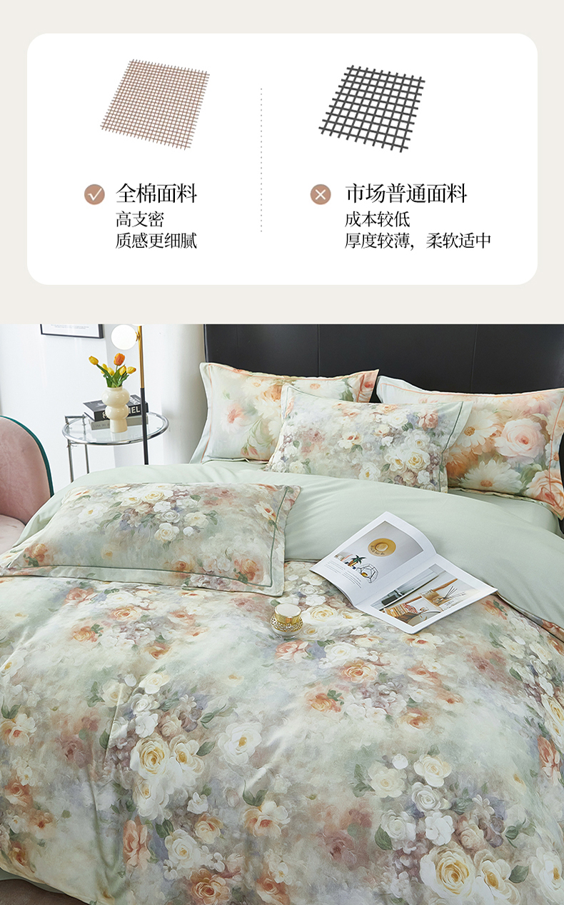 商品名称:雲归梦 2025春夏新款全棉纯棉5D数码印花四件套 如若梦境-绿