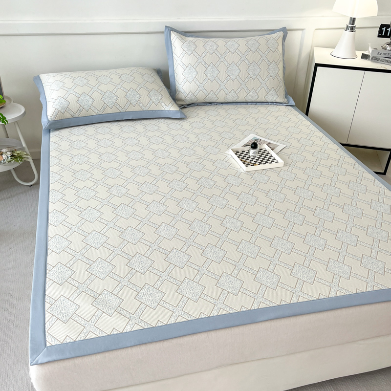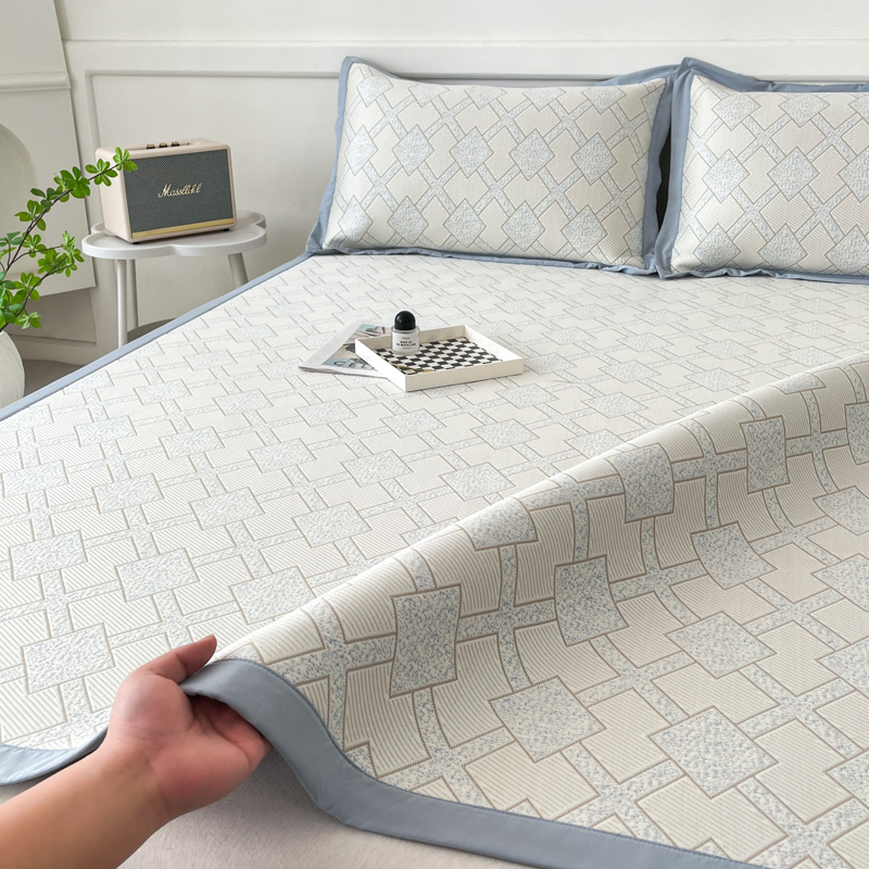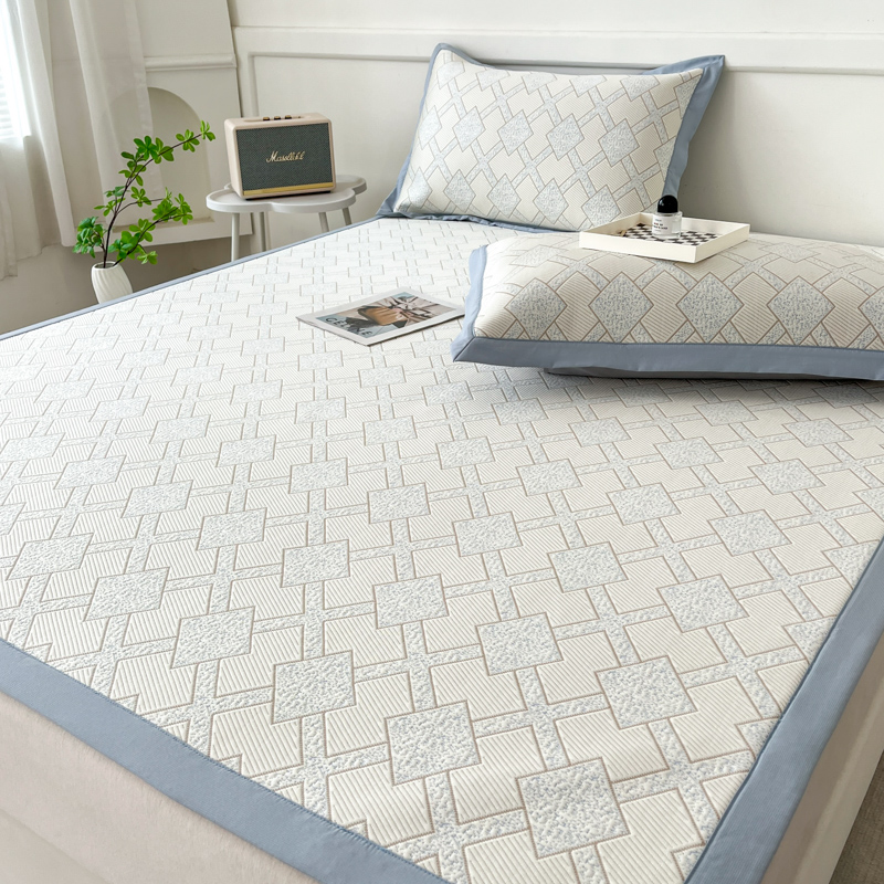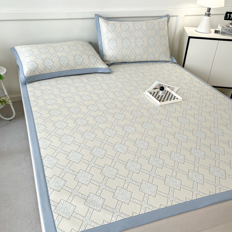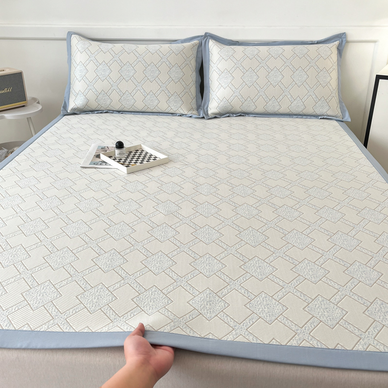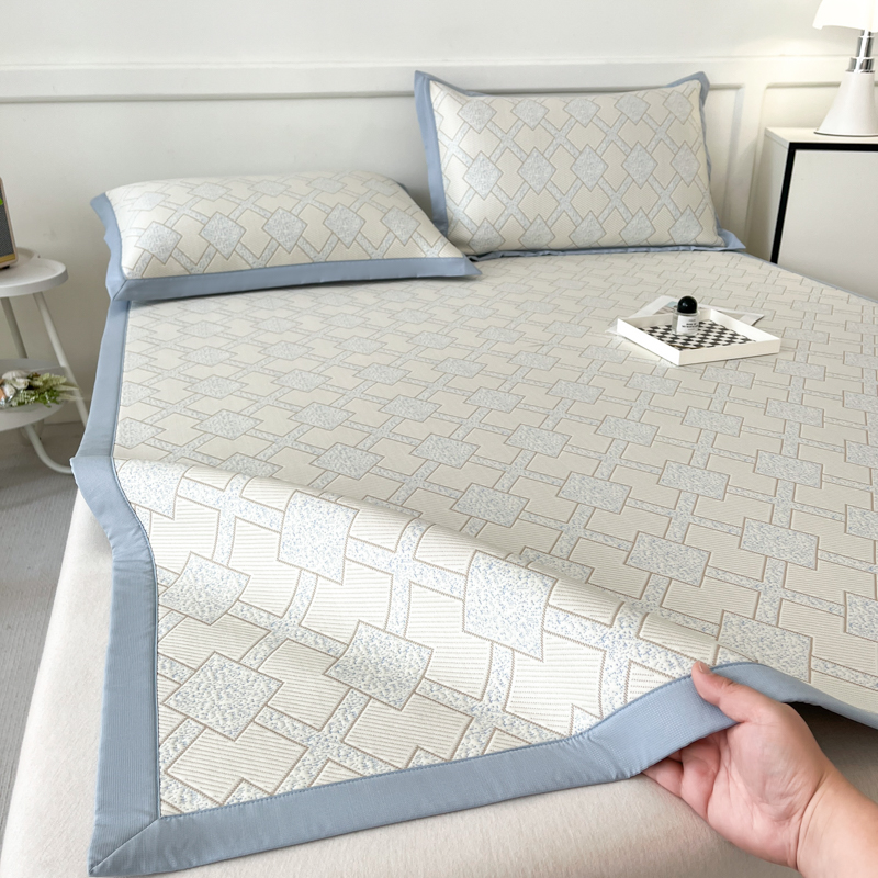 (总)美洲琳 2025新款650克凉豆豆凉席床裙三件套,湖蓝,浅灰,水绿,香槟,心粉