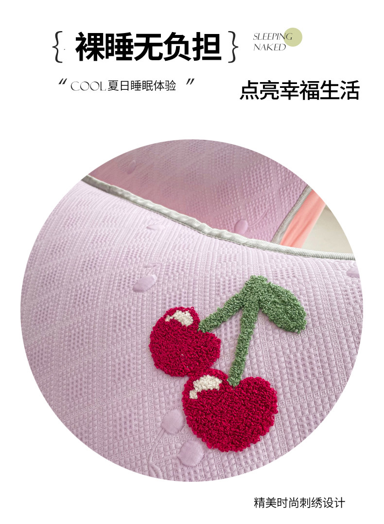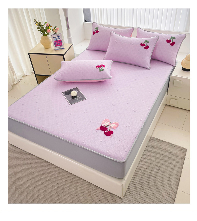 商品名称:恋佳居2025新款A类乙伦PE凉豆豆毛巾绣床笠冰丝席(床笠款) 樱桃—紫