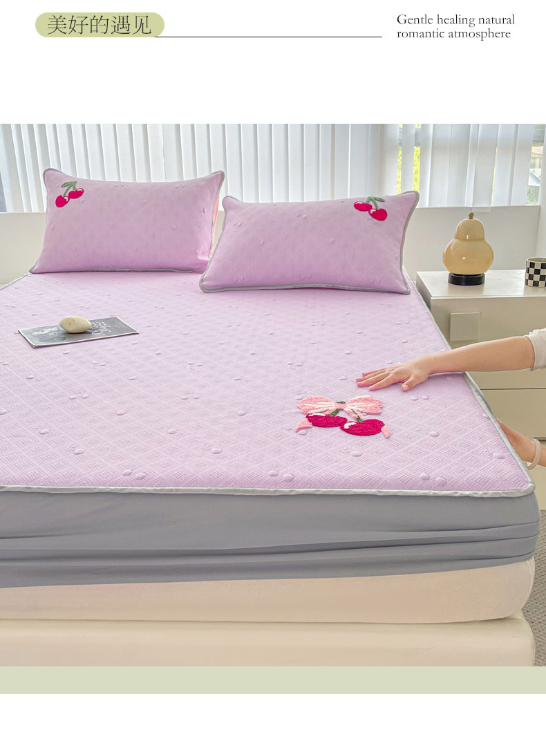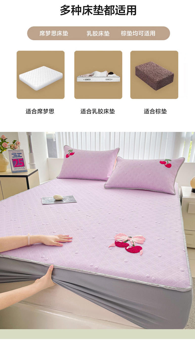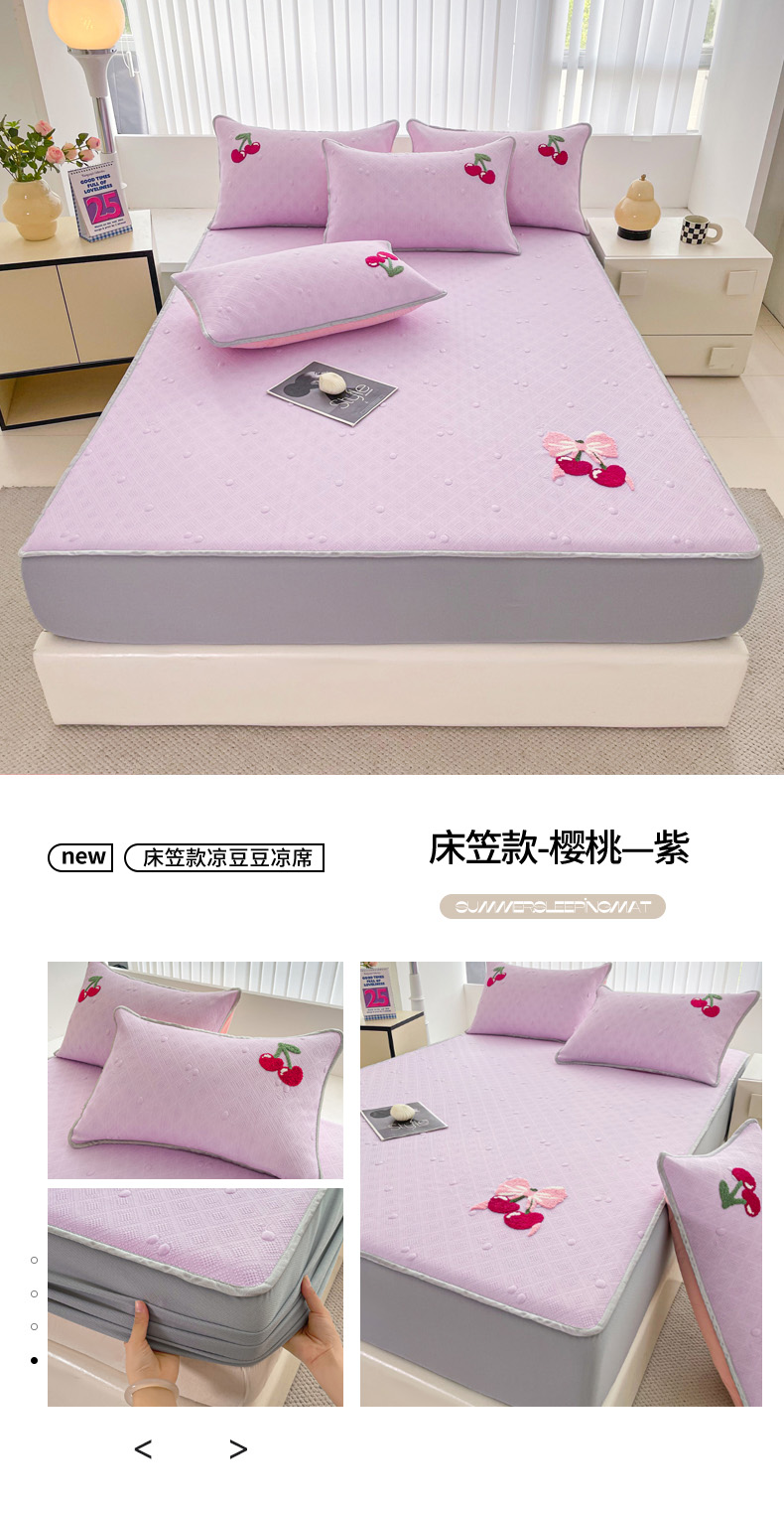 恋佳居2025新款A类乙伦PE凉豆豆毛巾绣床笠冰丝席(床笠款) 樱桃—紫